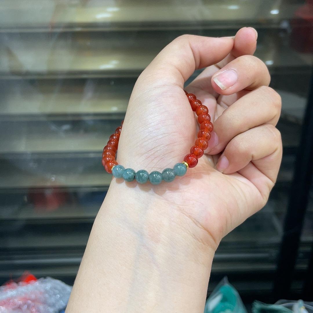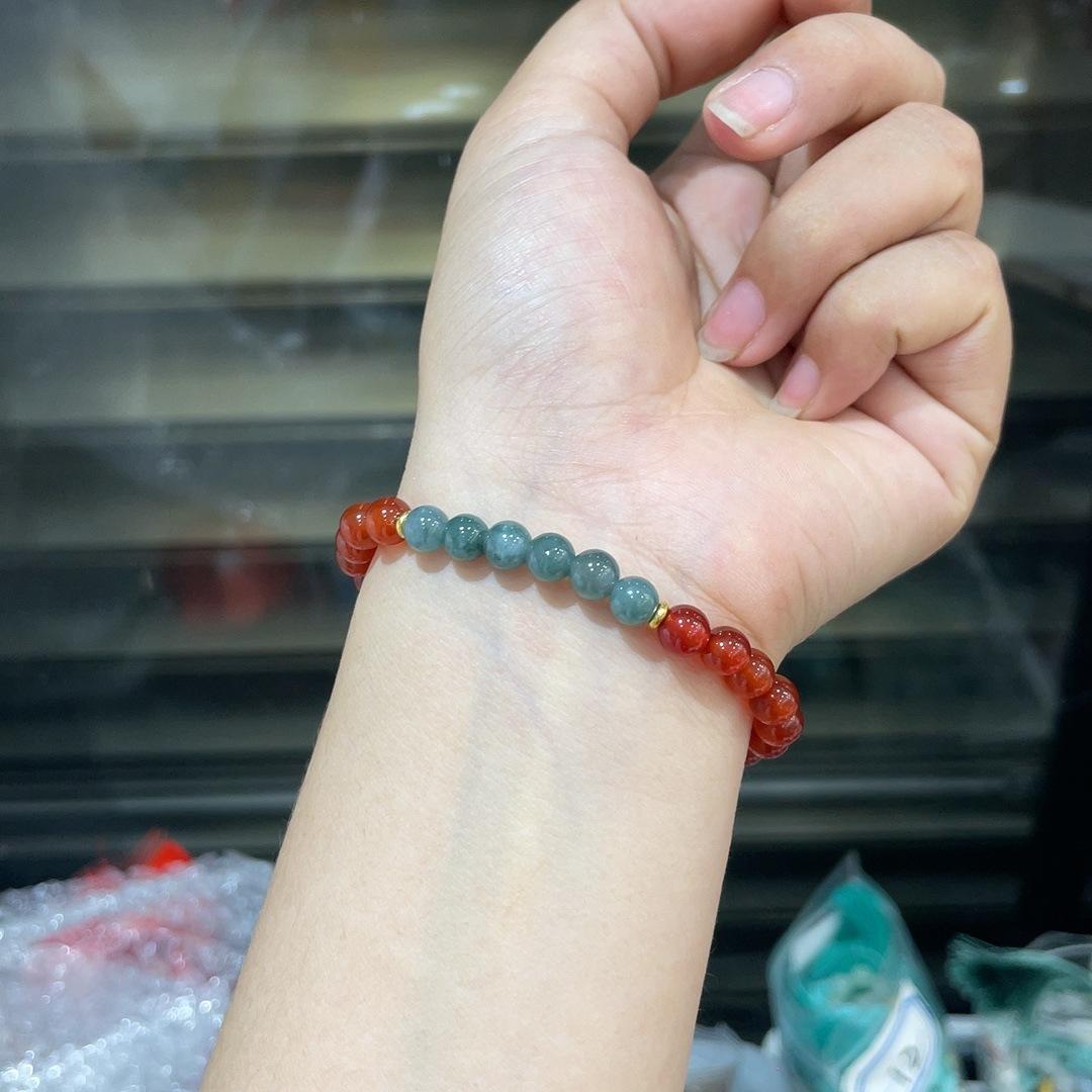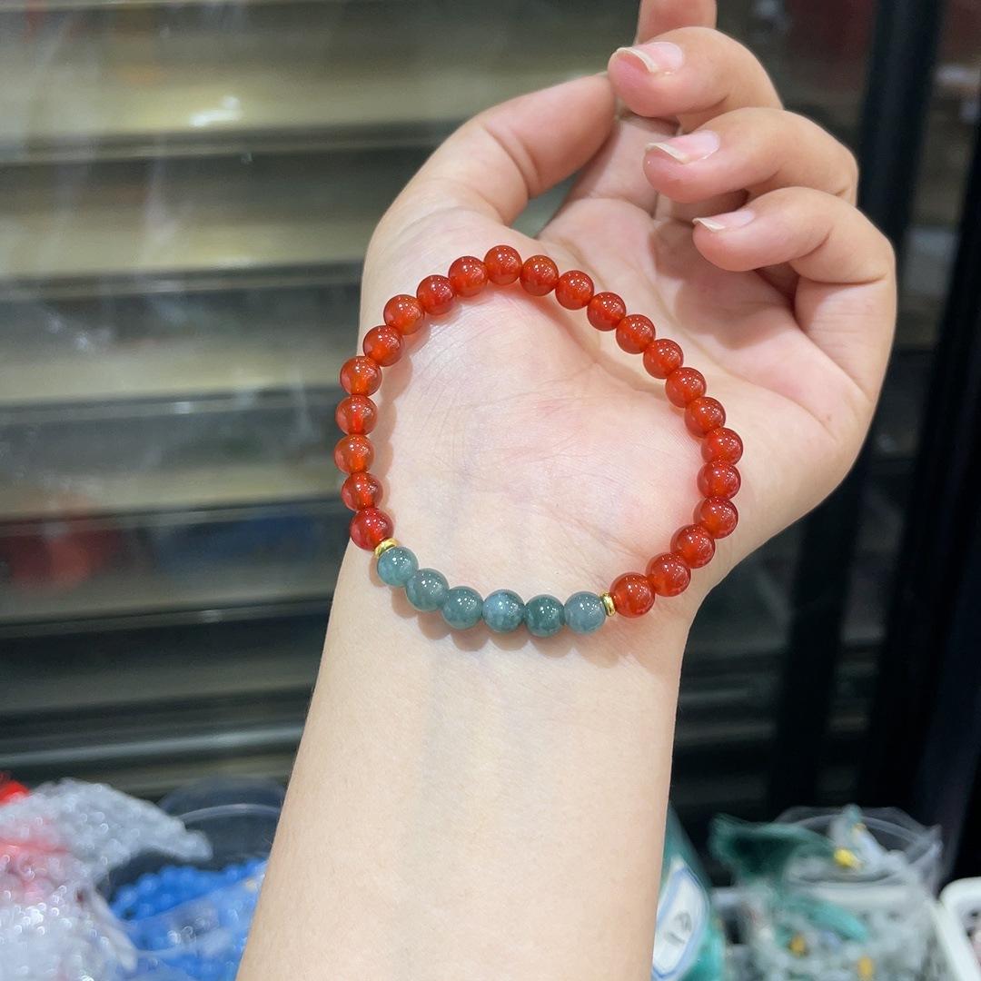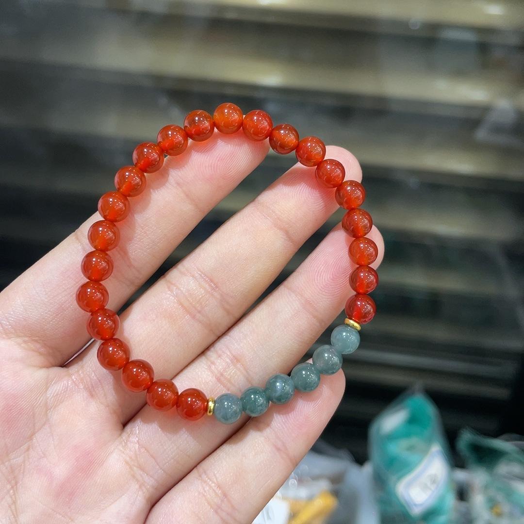 Pulsera de Ágata Roja y Jade Azul Agua Nicho Simple Versátil Moda Exquisita Pulsera Joyería Fina para Mujer
