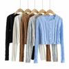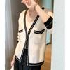 Cárdigan de Punto de Comercio Exterior Europeo y Americano Suéter de un Solo Botón Otoño e Invierno Casual Color Sólido Cuello en V Manga Larga Abrigo Cárdigan Mujer