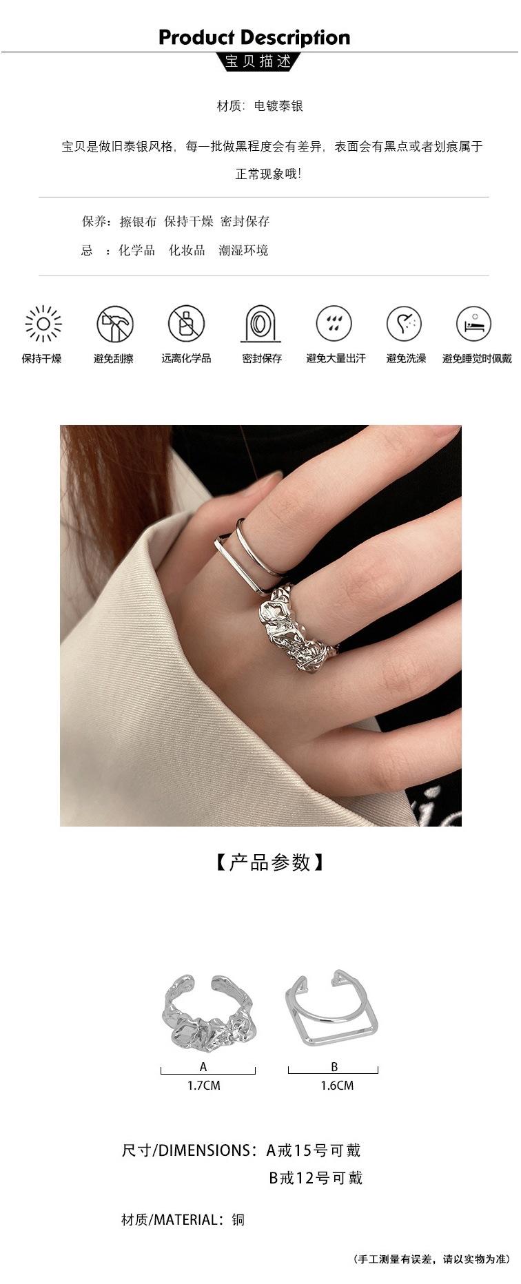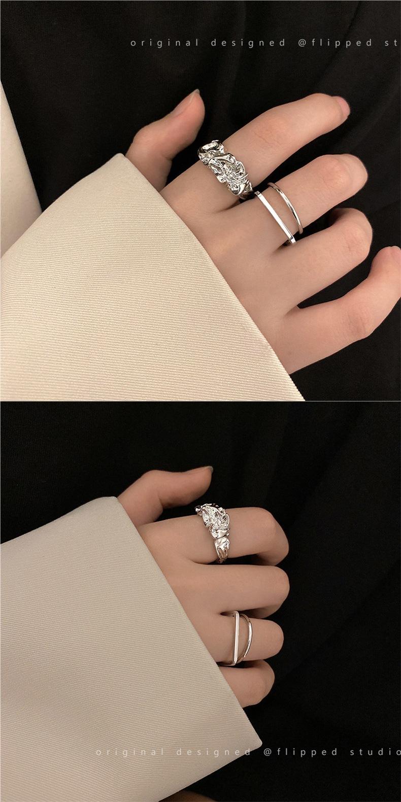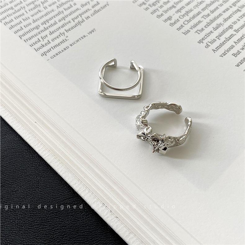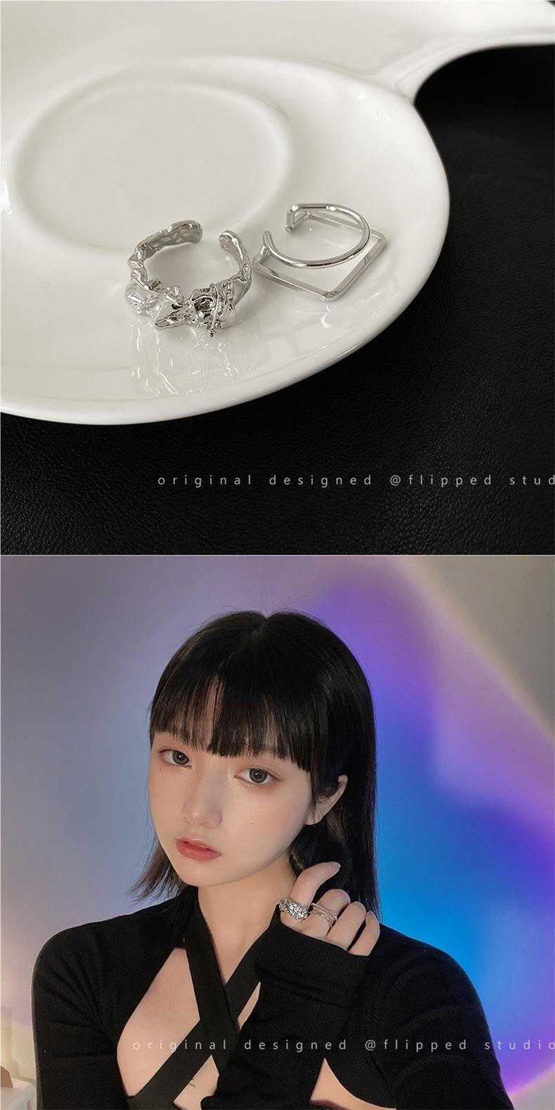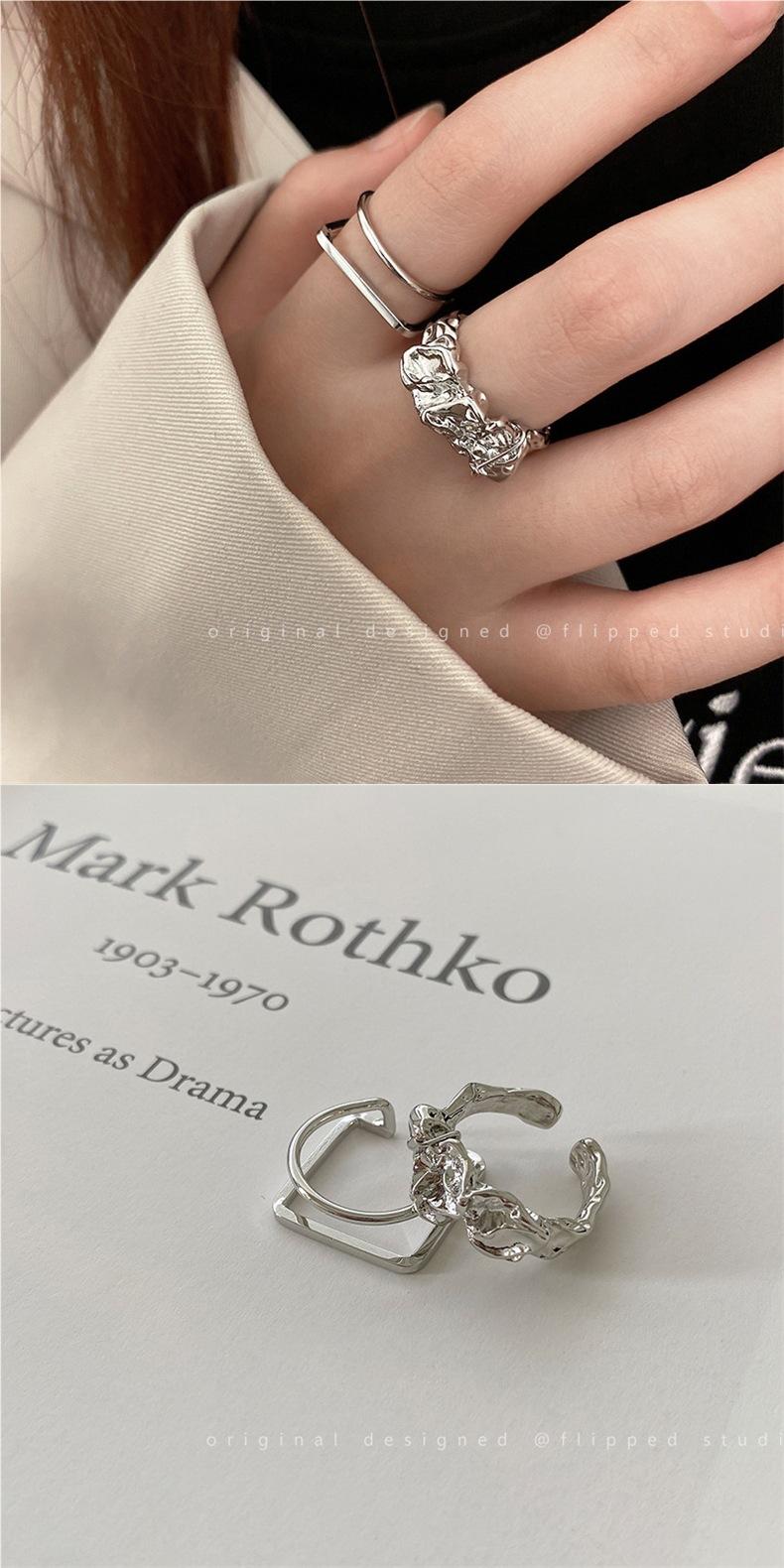 Anillo coreano de plata S925 de doble capa para mujer, anillo abierto irregular de lava de moda vintage, anillo hip-hop para el dedo índice