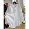 Camisa de Color Sólido de Moda para Mujer 2025 Verano y Otoño Nueva Algodón y Lino Top Combinable Camisa Holgada Manga Larga Talla Grande Top para Mujer