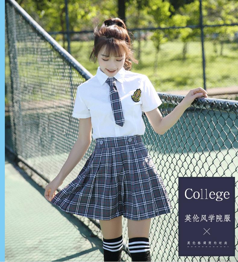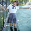 Women's white short sleeve + gray plaid skirt + gray plaid bow, Women's white short sleeve + gray plaid skirt ...