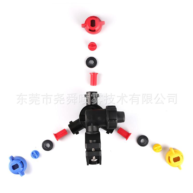 Boquilla de ventilador giratoria de tres cabezales para agricultura, atomización de alta presión, antigoteo, protección de plantas, máquina pulverizadora de pesticidas, boquilla rociadora de agua