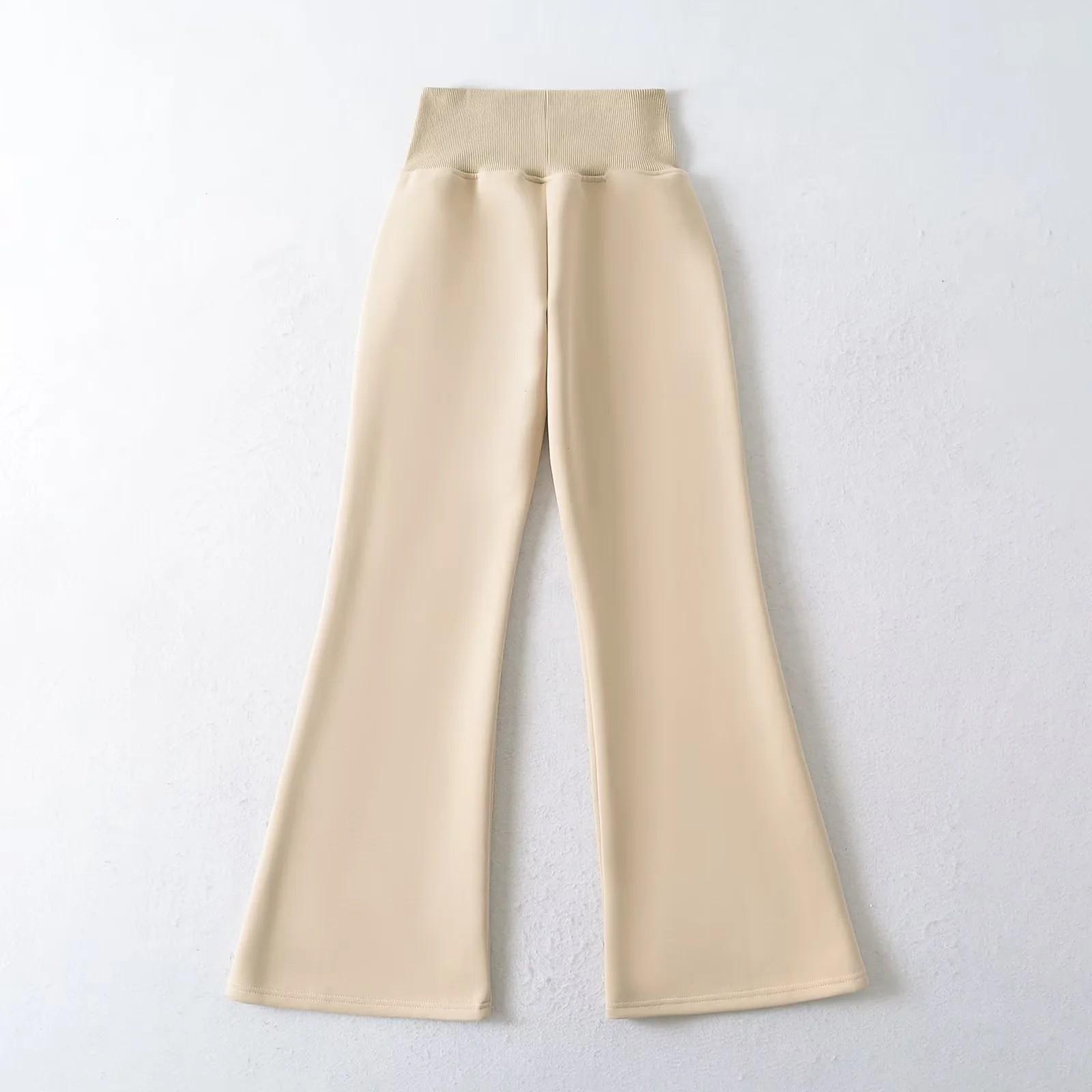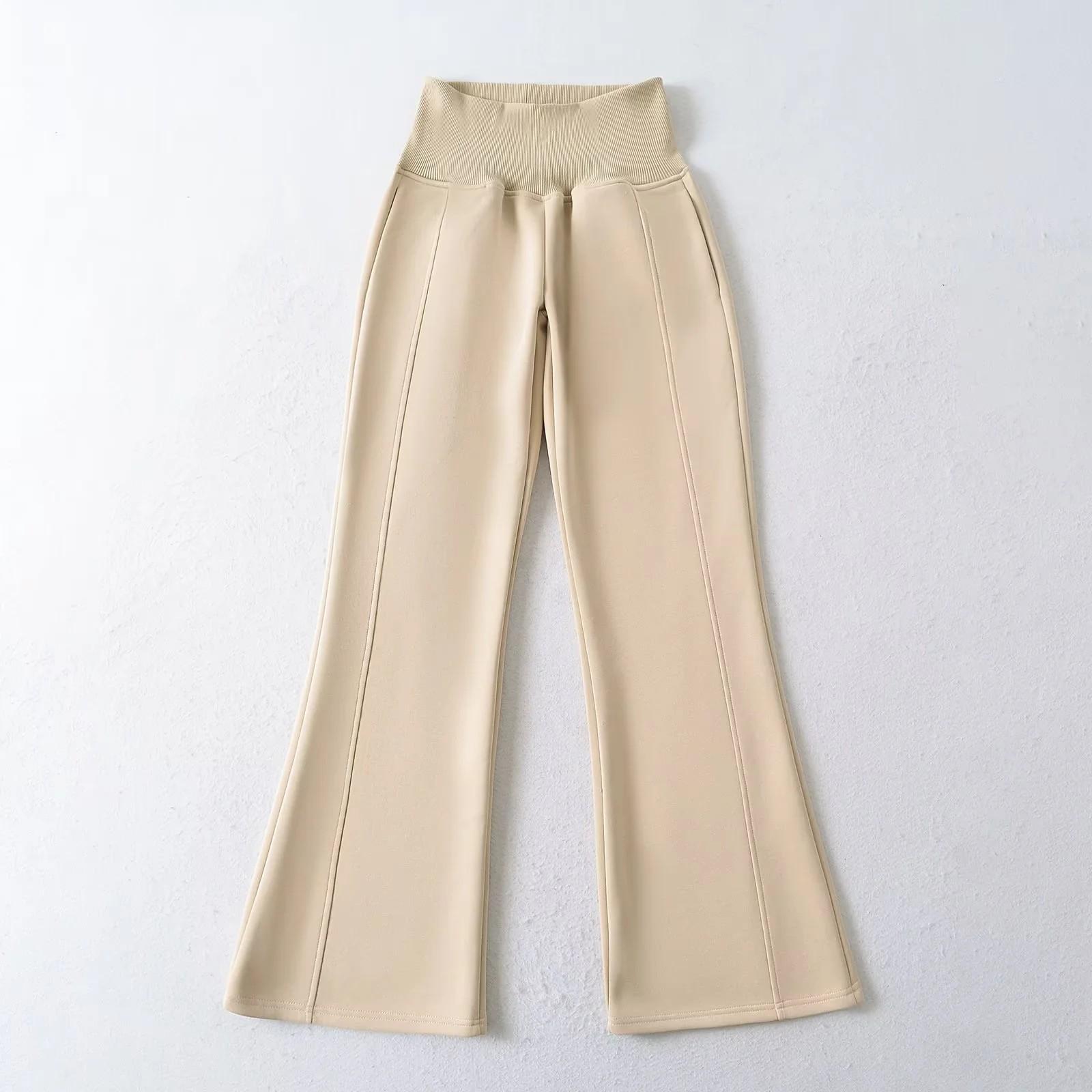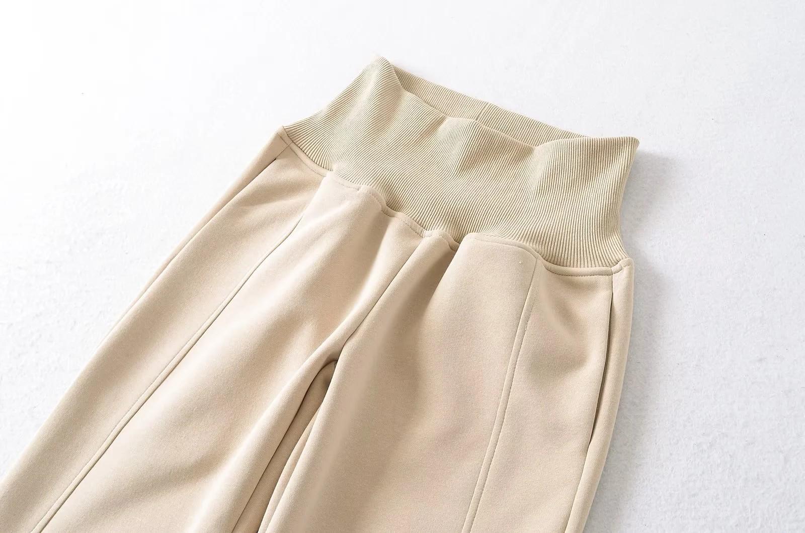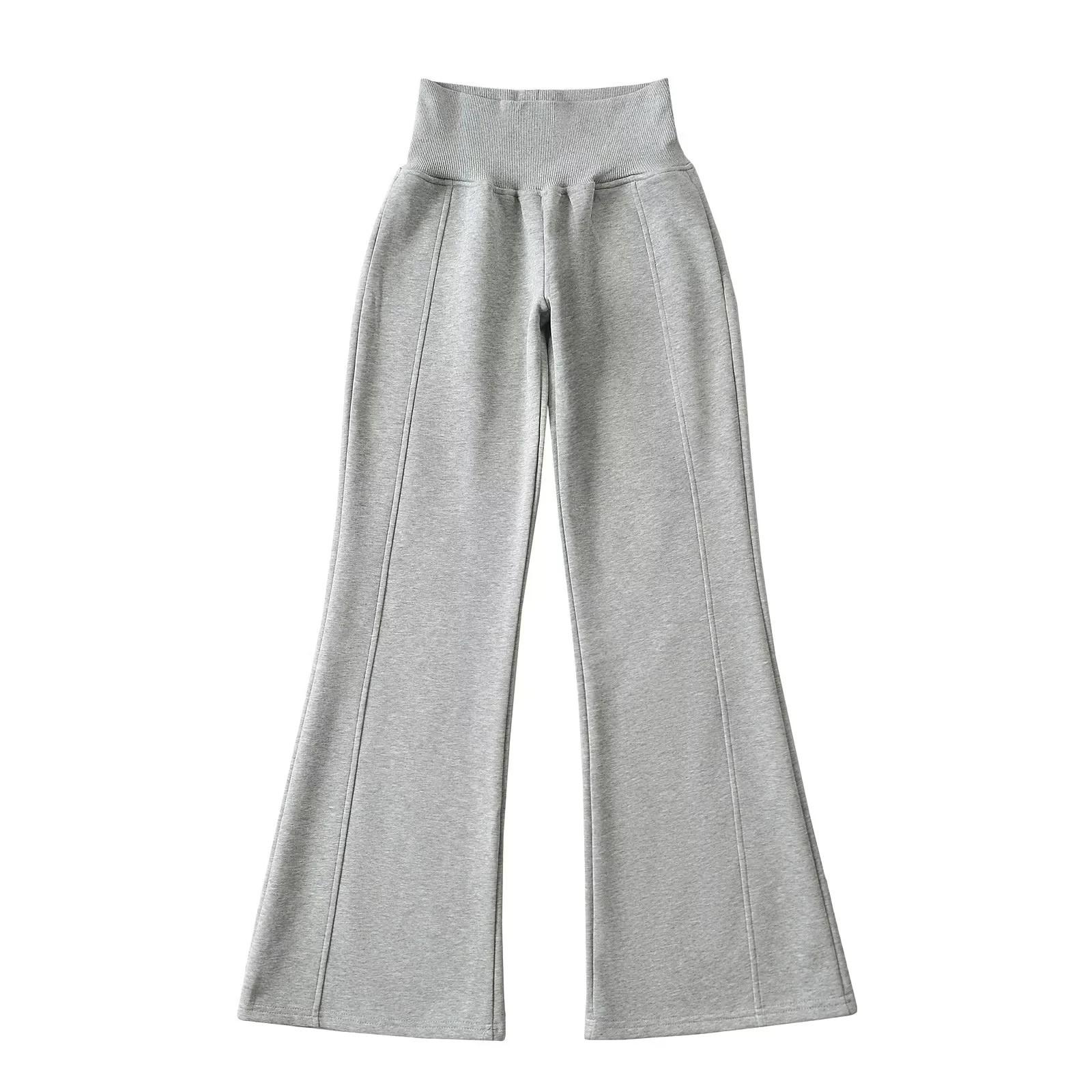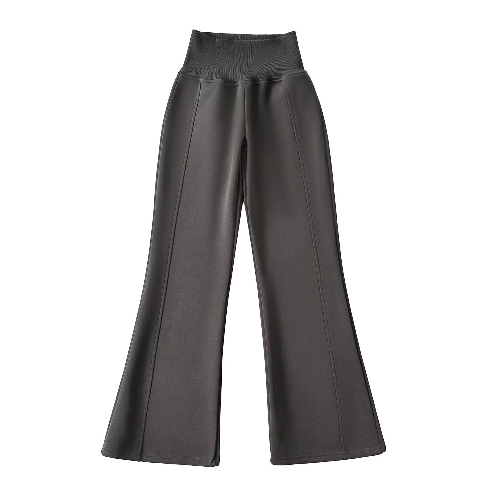 Pantalones grises de pierna ancha 2024 Primavera Otoño e Invierno Nuevo pantalón forrado de vellón Pantalones casuales de bocina micro para mujer Pantalones deportivos Dexting