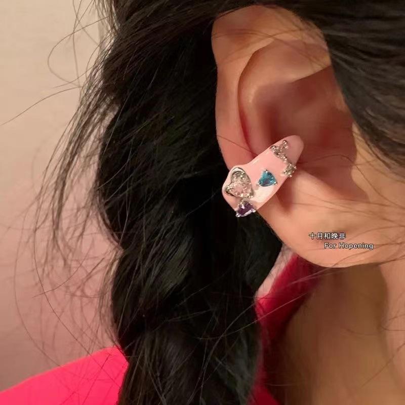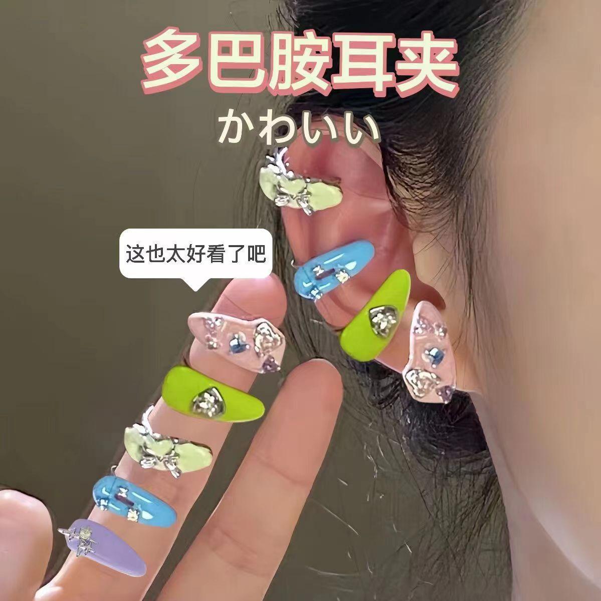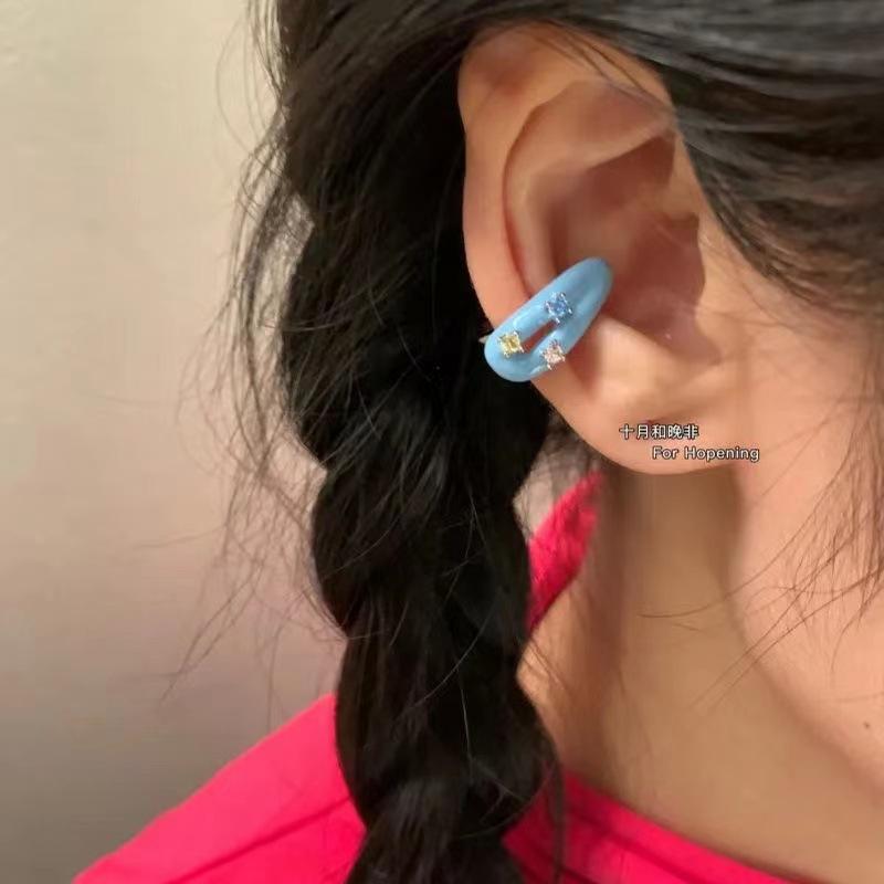Nuevo Estilo Lindo Juventud Disco Púrpura Colorido Divertido Goteo de Aceite Clip para la Oreja Clip para el Hueso de la Oreja para Mujer Aretes para Mujer Sin Agujeros en la Oreja