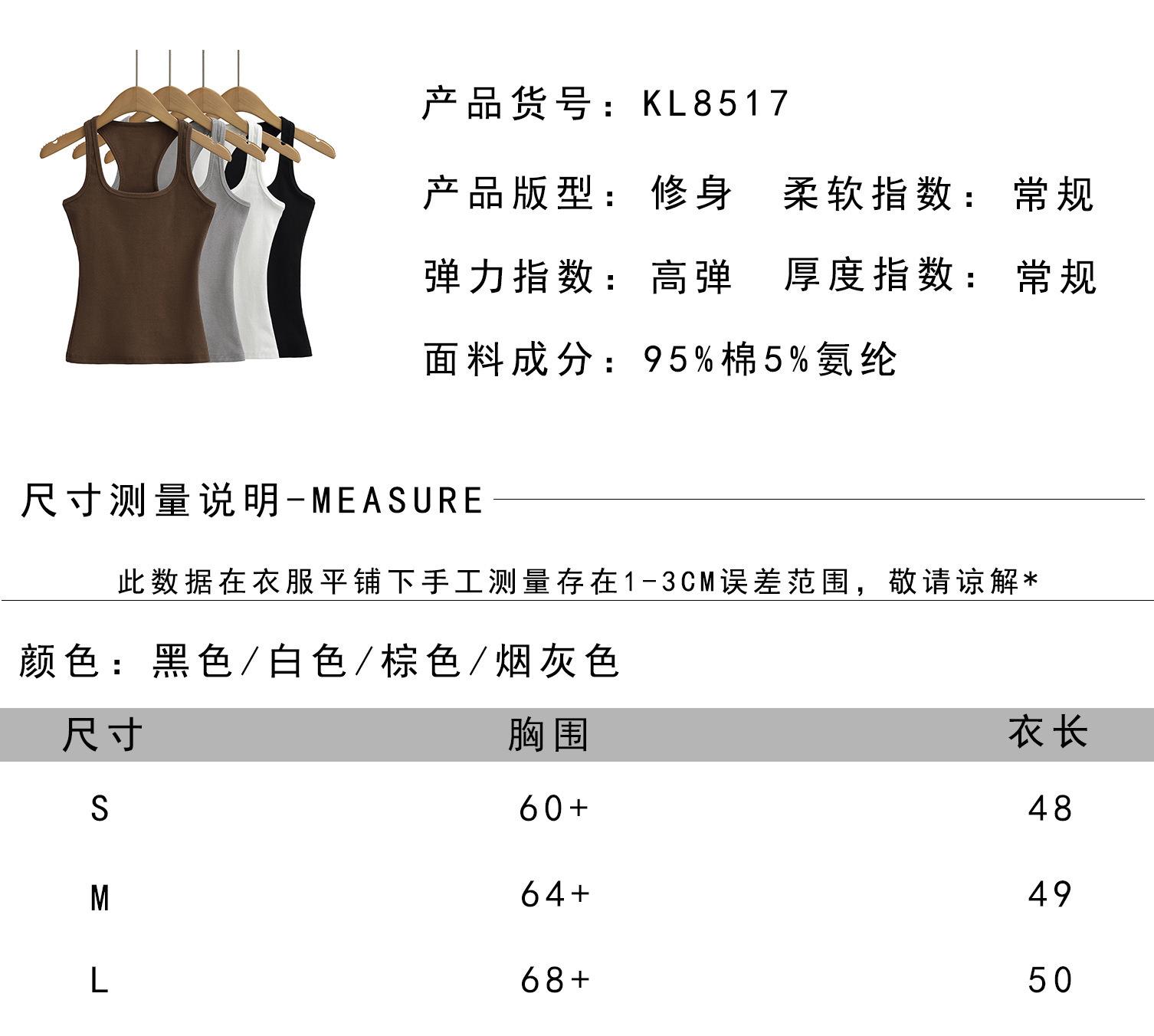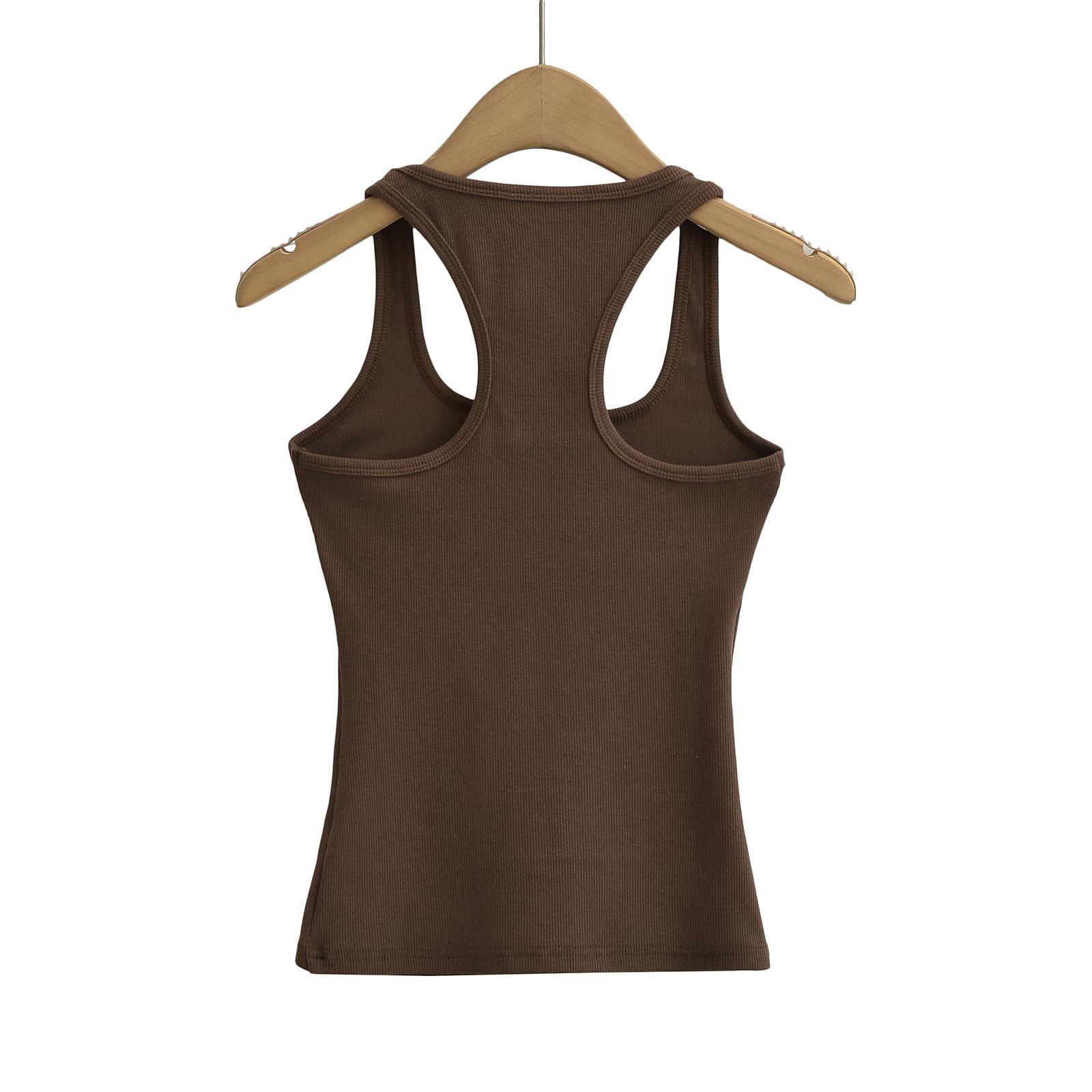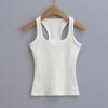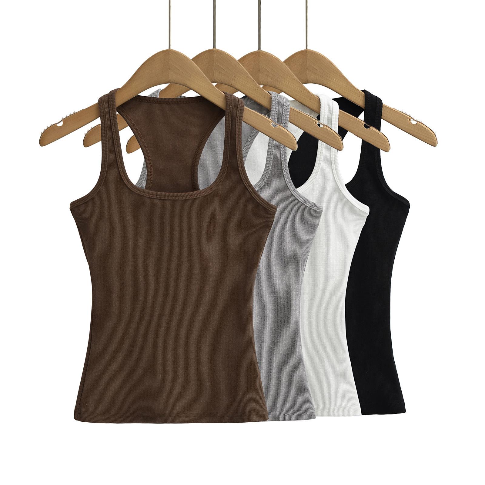 Top Básico Ajustado Elástico Estilo Americano para Mujer Verano 2024 Nuevo Estilo Cuello Cuadrado Acanalado Sin Mangas Chaleco en I