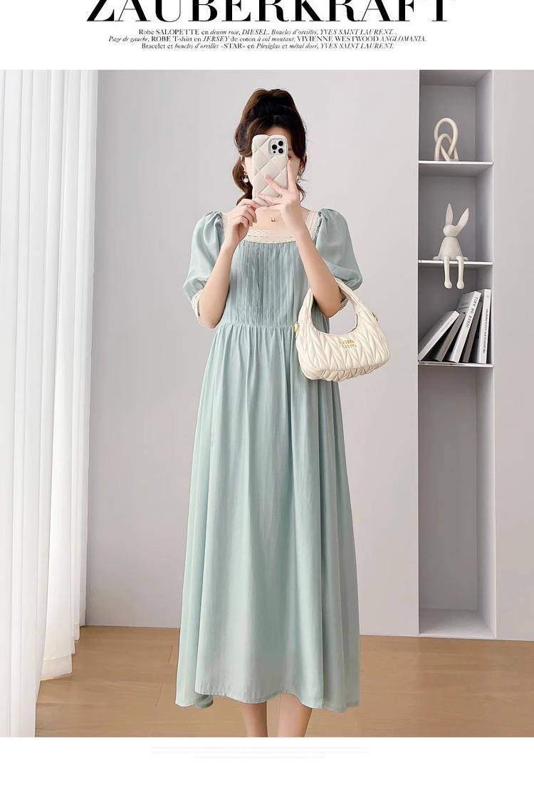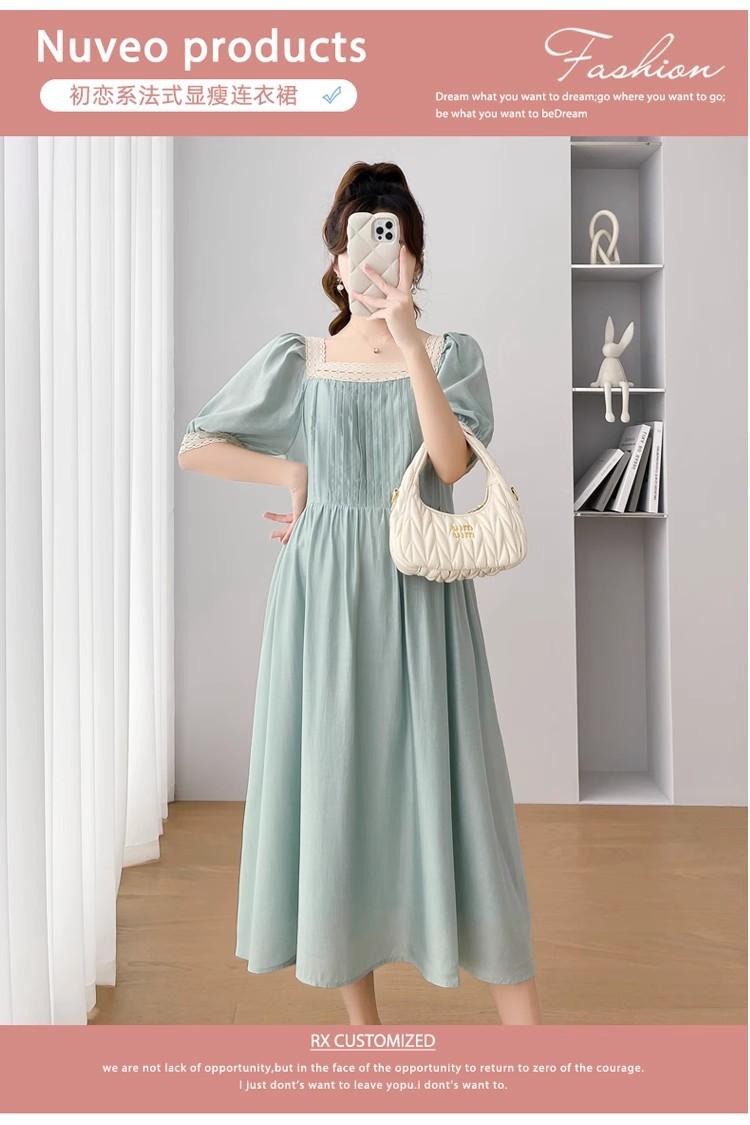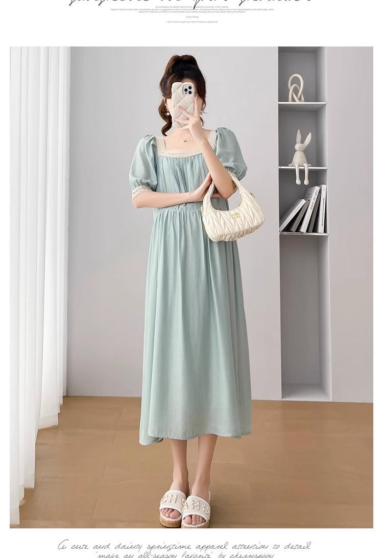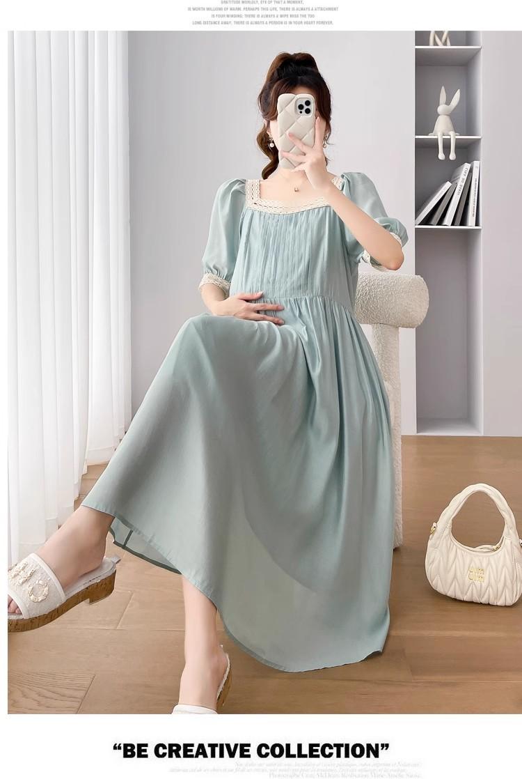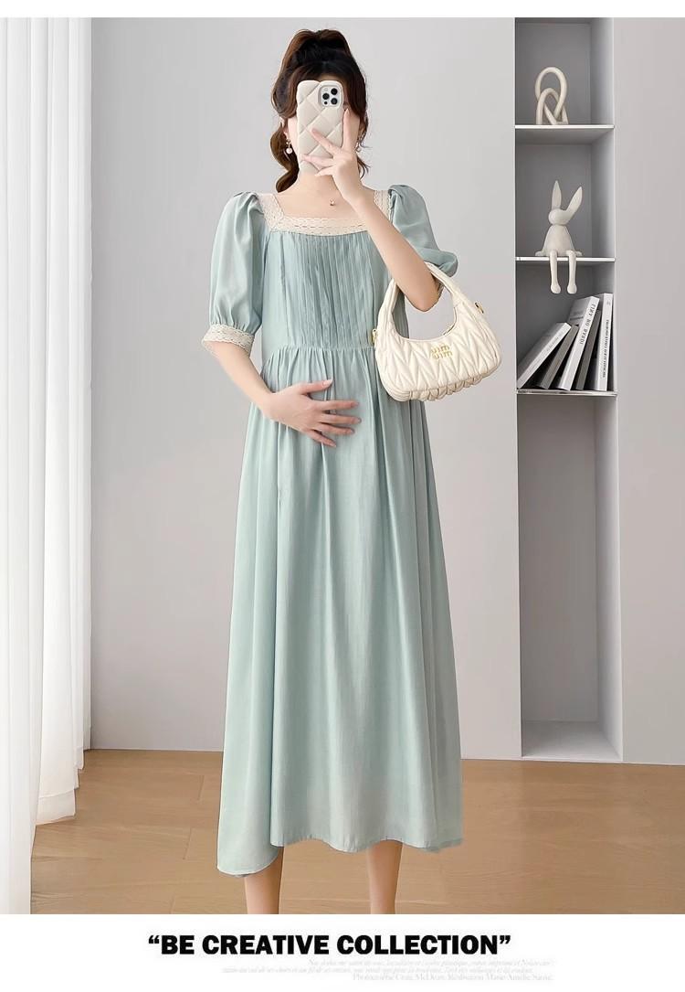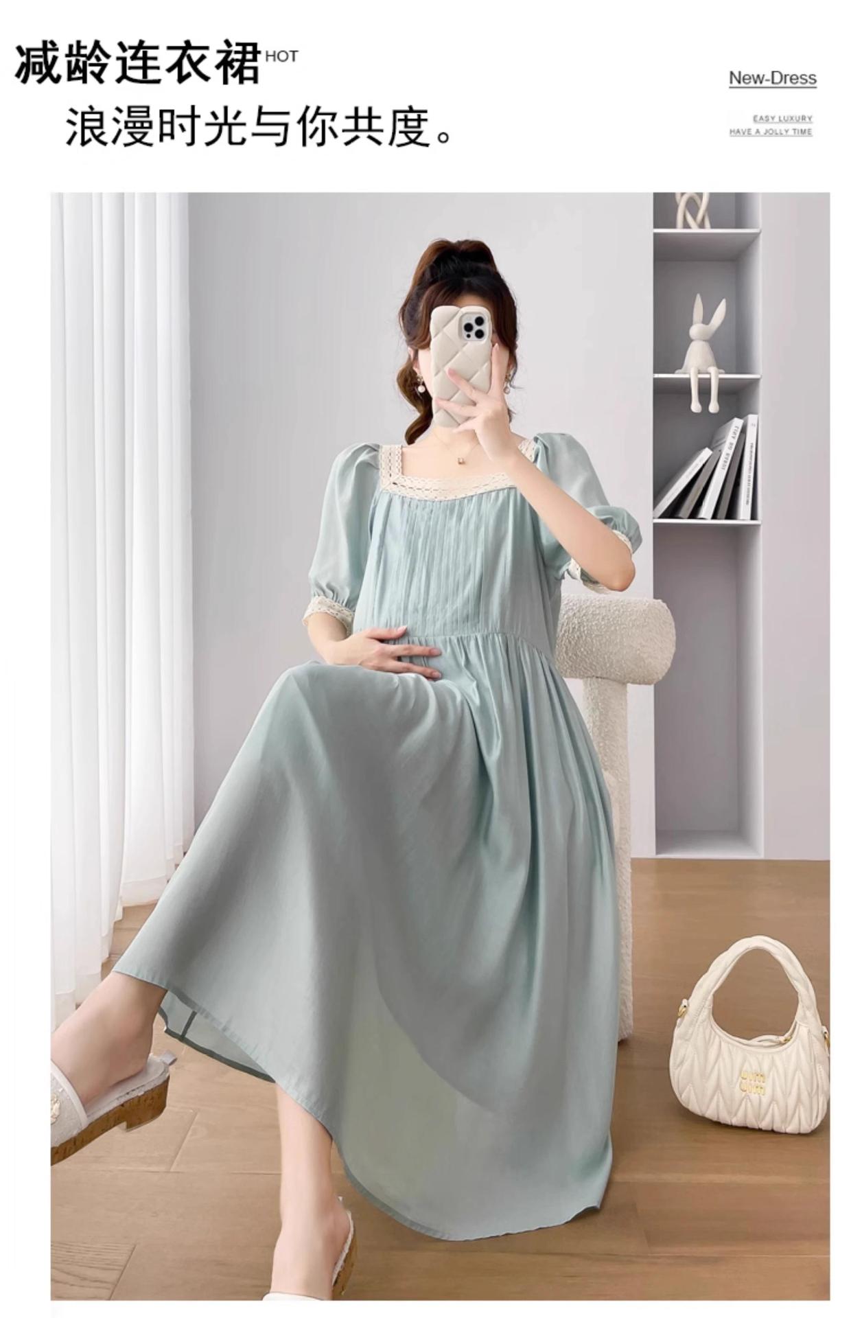 Verano Maternidad Nuevo Dulce Moda Cuello Cuadrado Manga Abullonada Pequeño Fresco Adelgazante Holgado Talla Grande Vestido para Mujeres Embarazadas