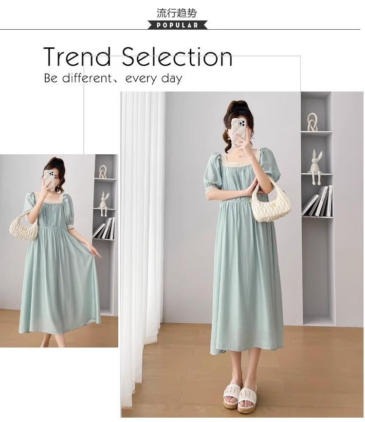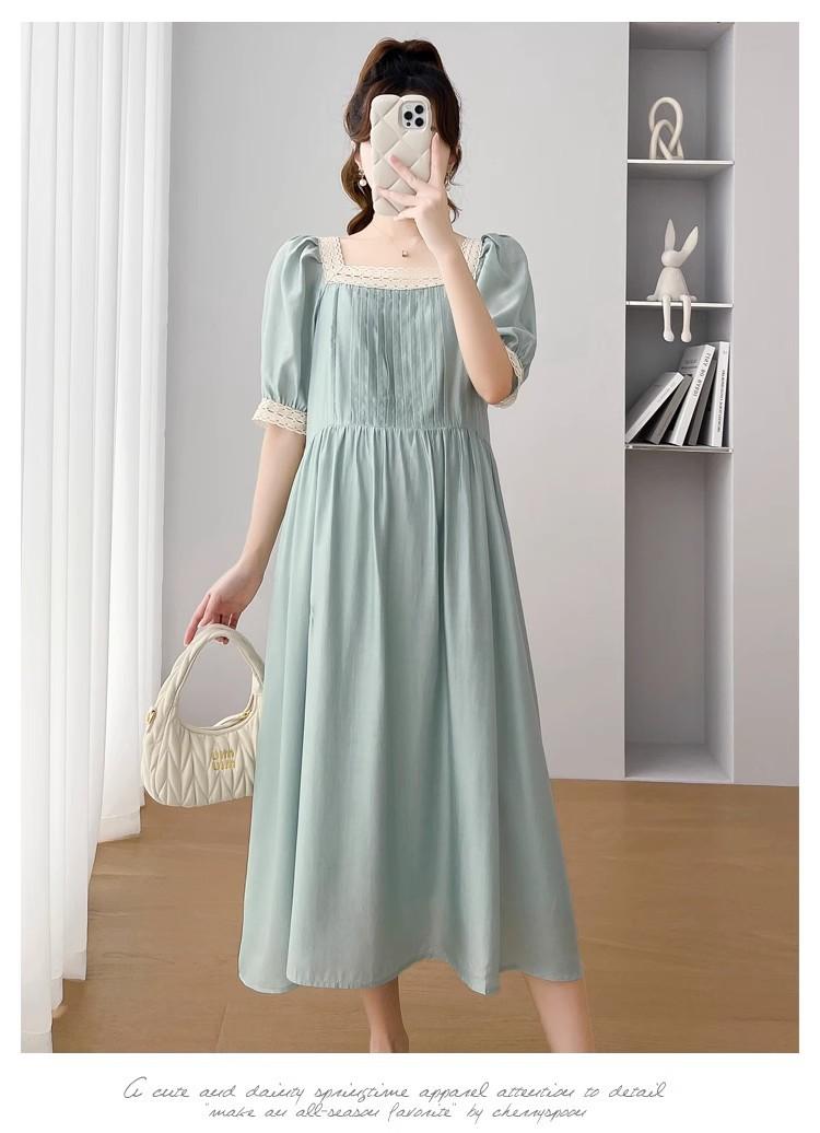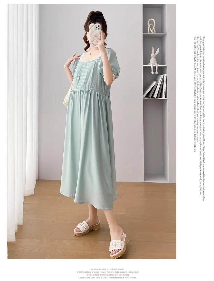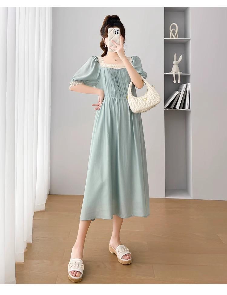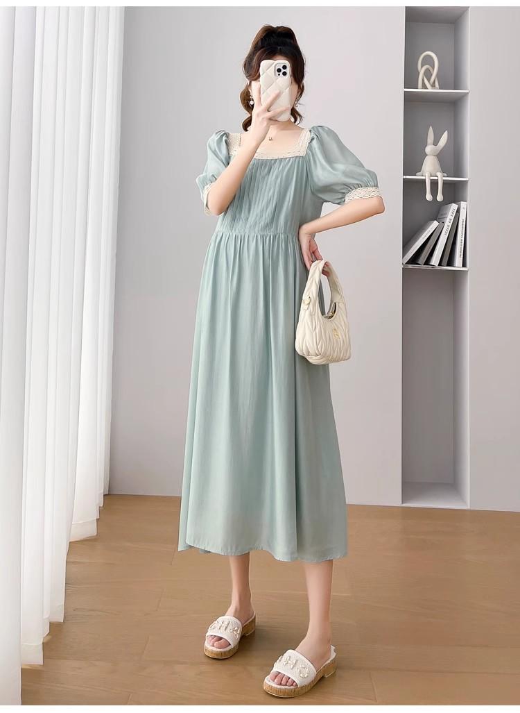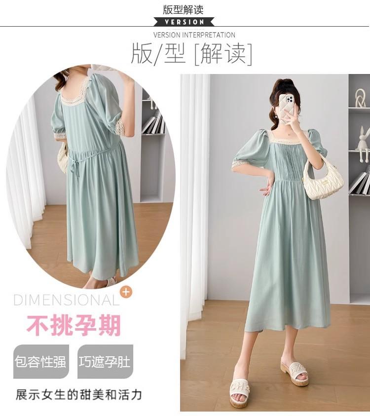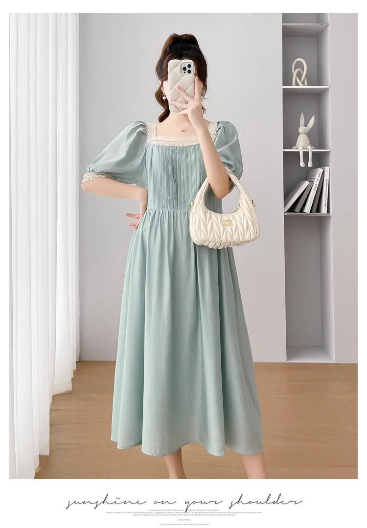 Verano Maternidad Nuevo Dulce Moda Cuello Cuadrado Manga Abullonada Pequeño Fresco Adelgazante Holgado Talla Grande Vestido para Mujeres Embarazadas