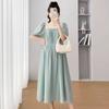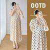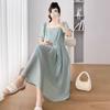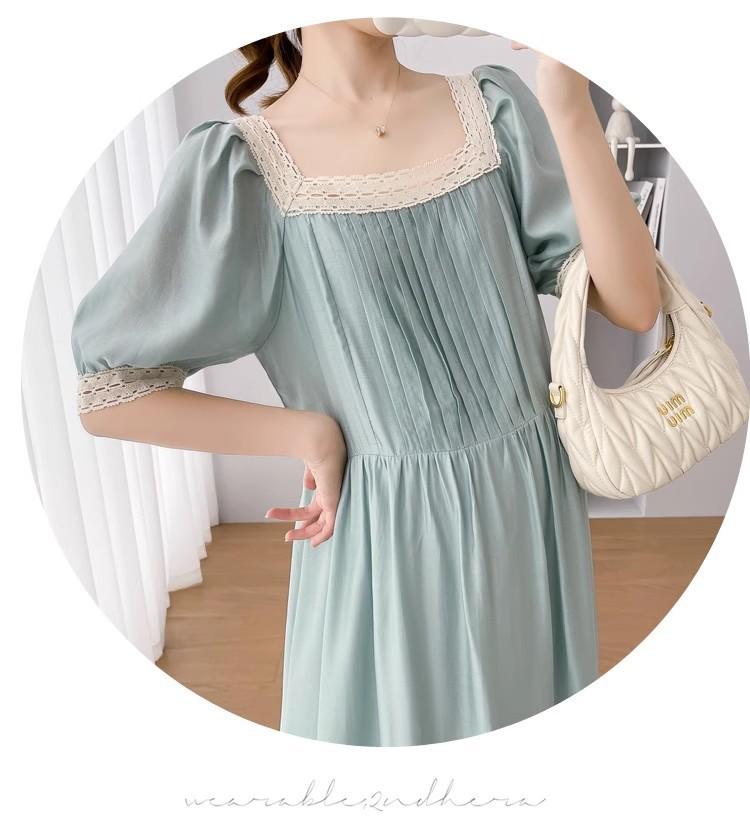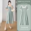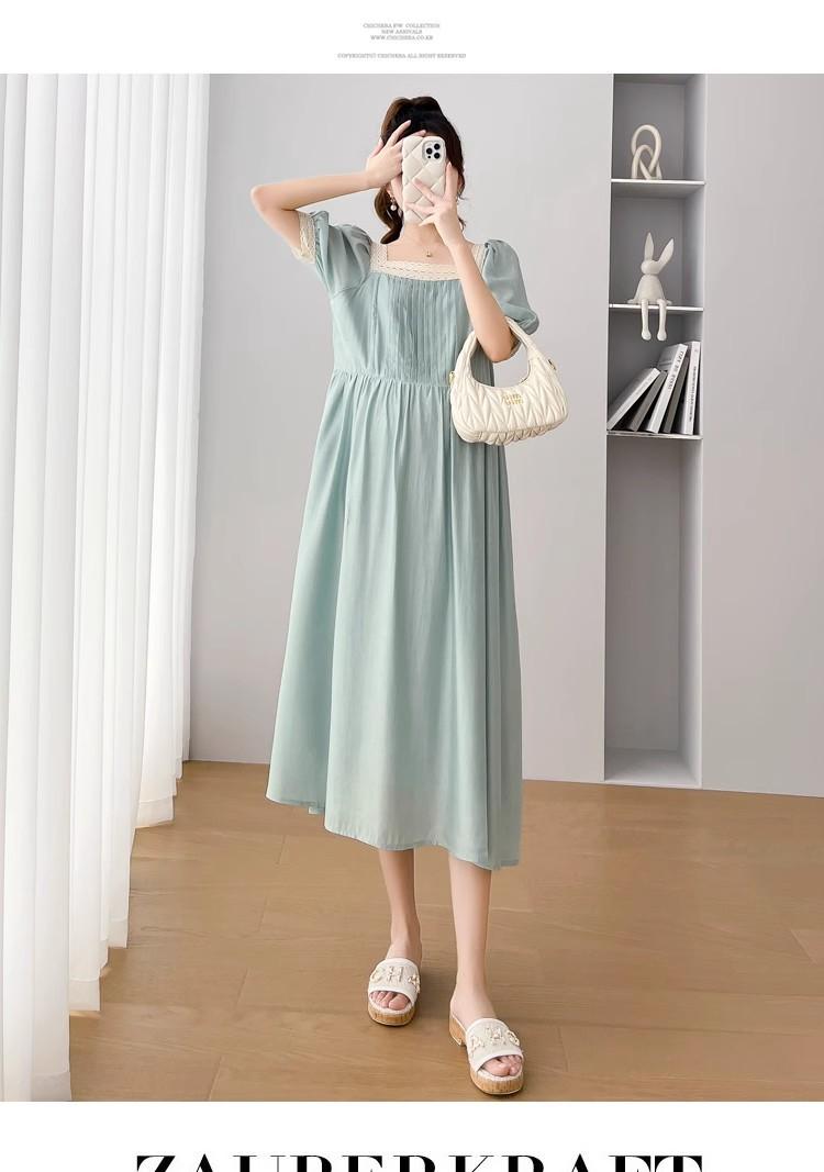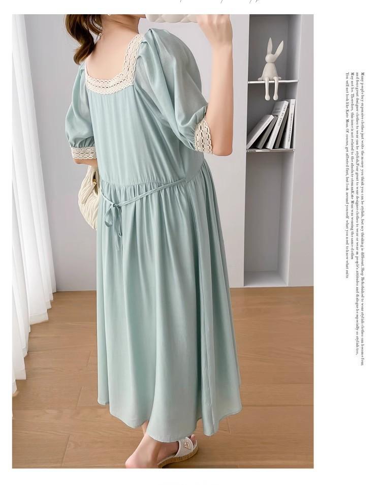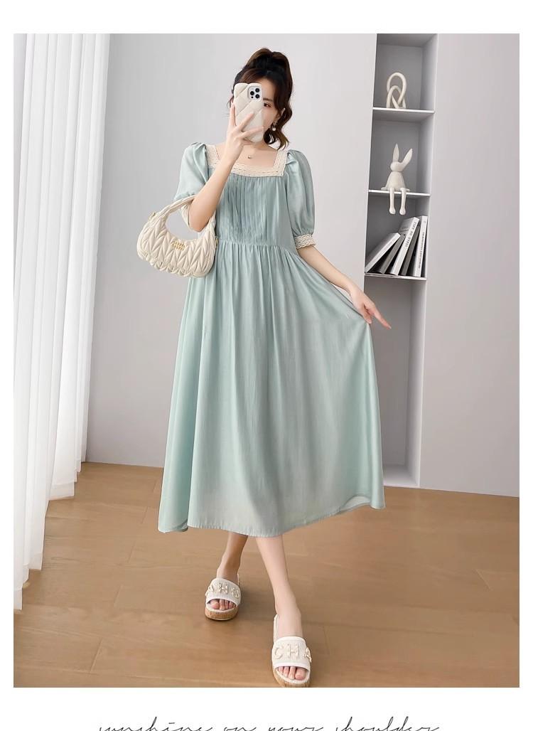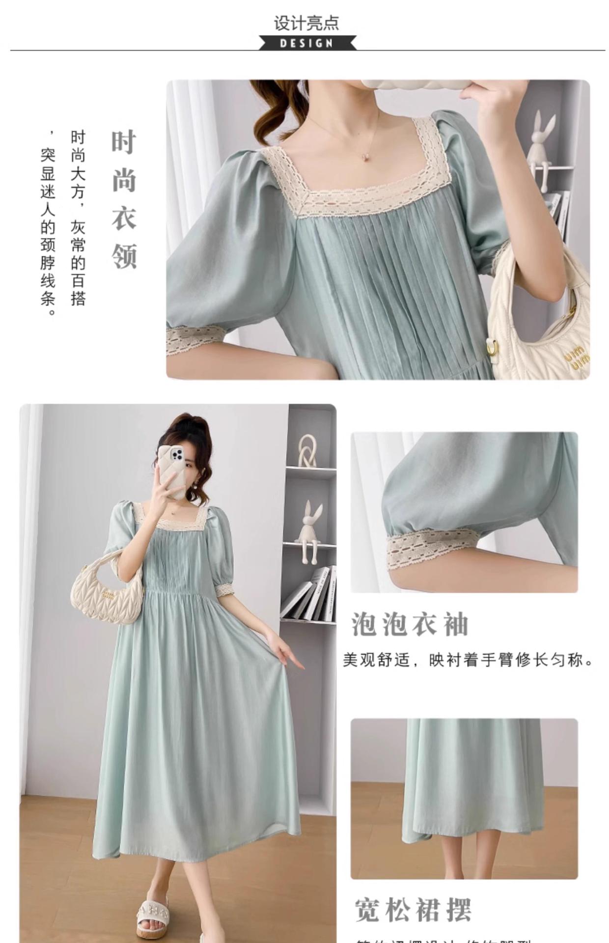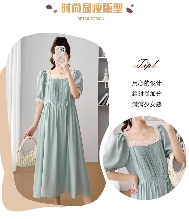 Verano Maternidad Nuevo Dulce Moda Cuello Cuadrado Manga Abullonada Pequeño Fresco Adelgazante Holgado Talla Grande Vestido para Mujeres Embarazadas