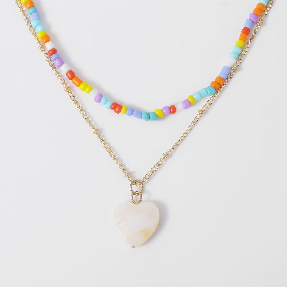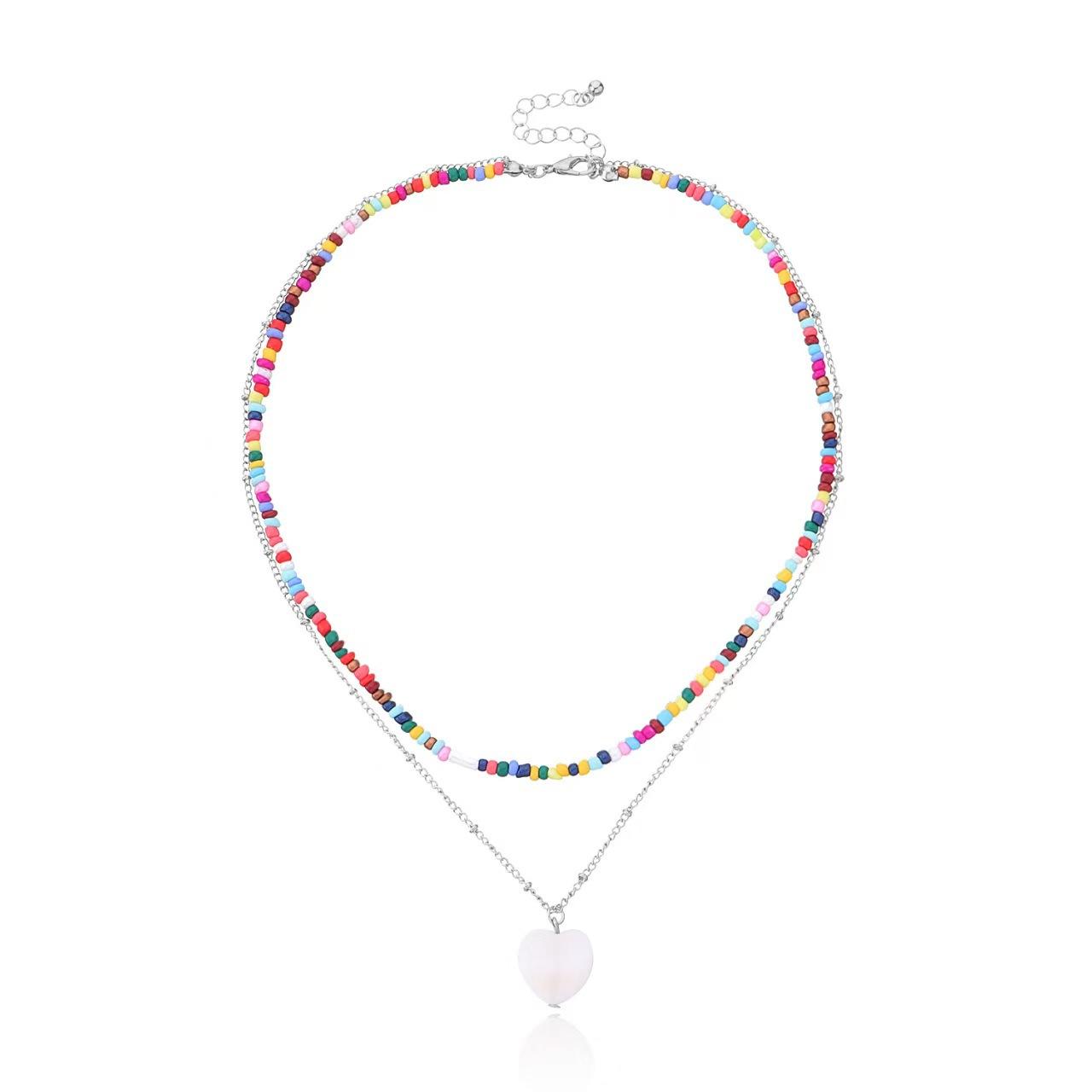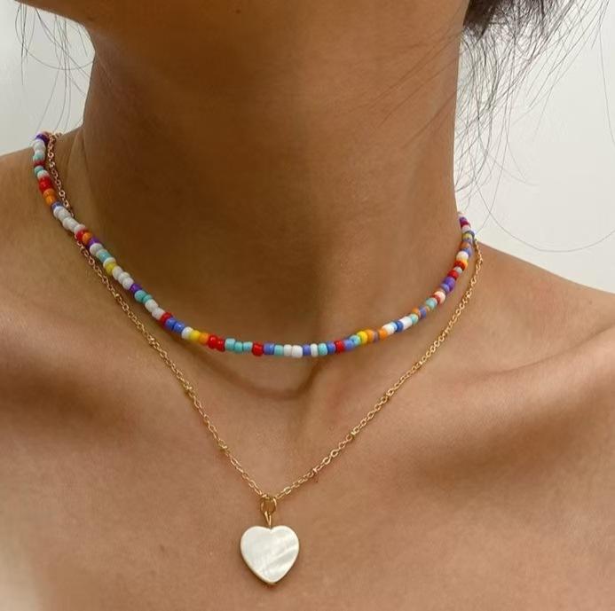 Joyería Transfronteriza Moda Simple Concha Corazón Abalorios Cadena Clavícula Collar Personalizado Geométrico Colorido Collar de Cuentas de Arroz