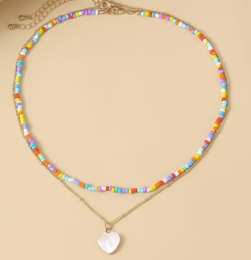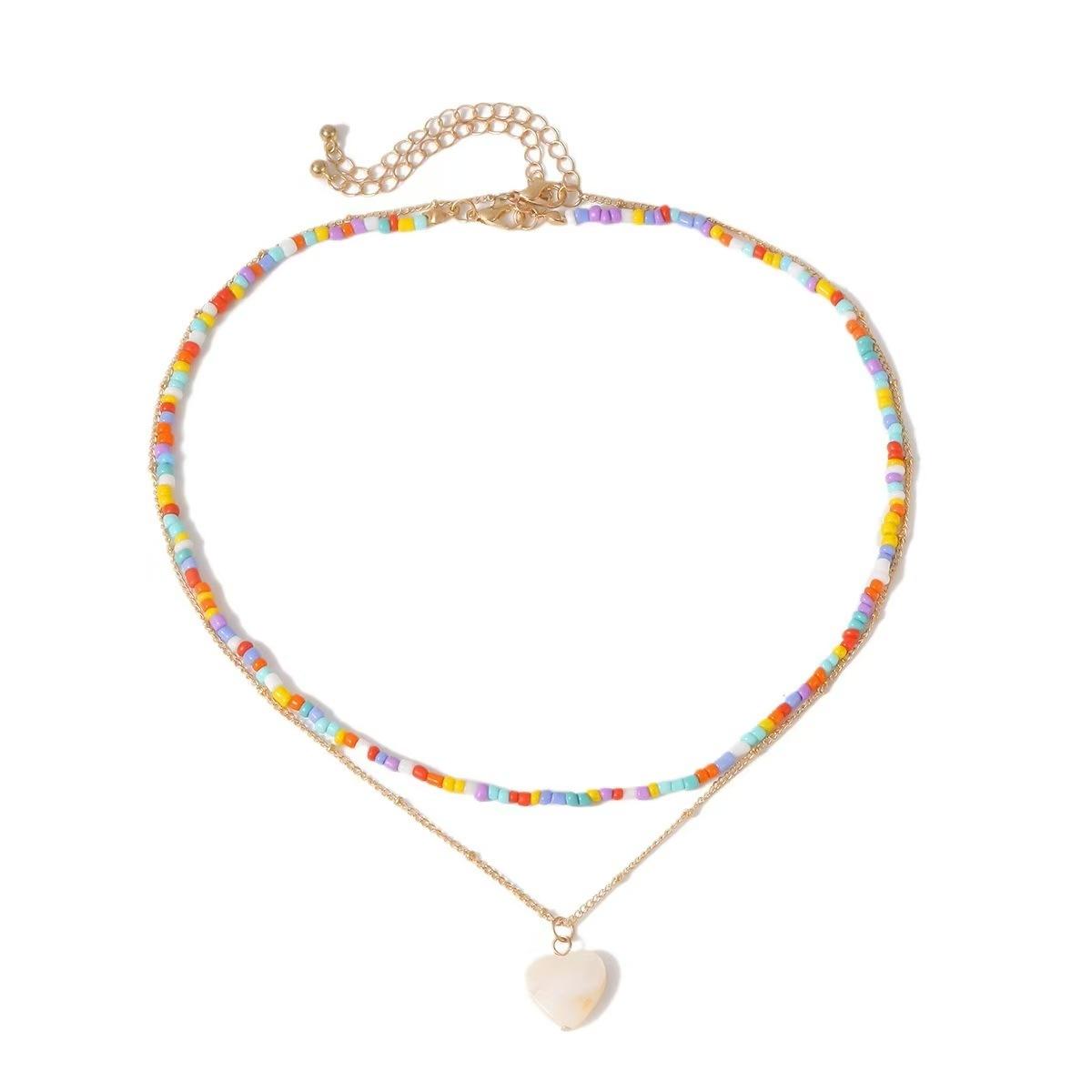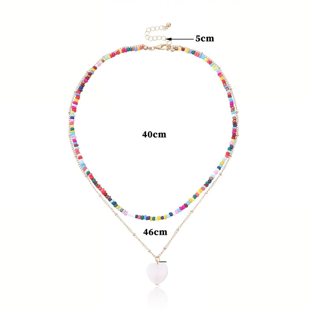 Joyería Transfronteriza Moda Simple Concha Corazón Abalorios Cadena Clavícula Collar Personalizado Geométrico Colorido Collar de Cuentas de Arroz