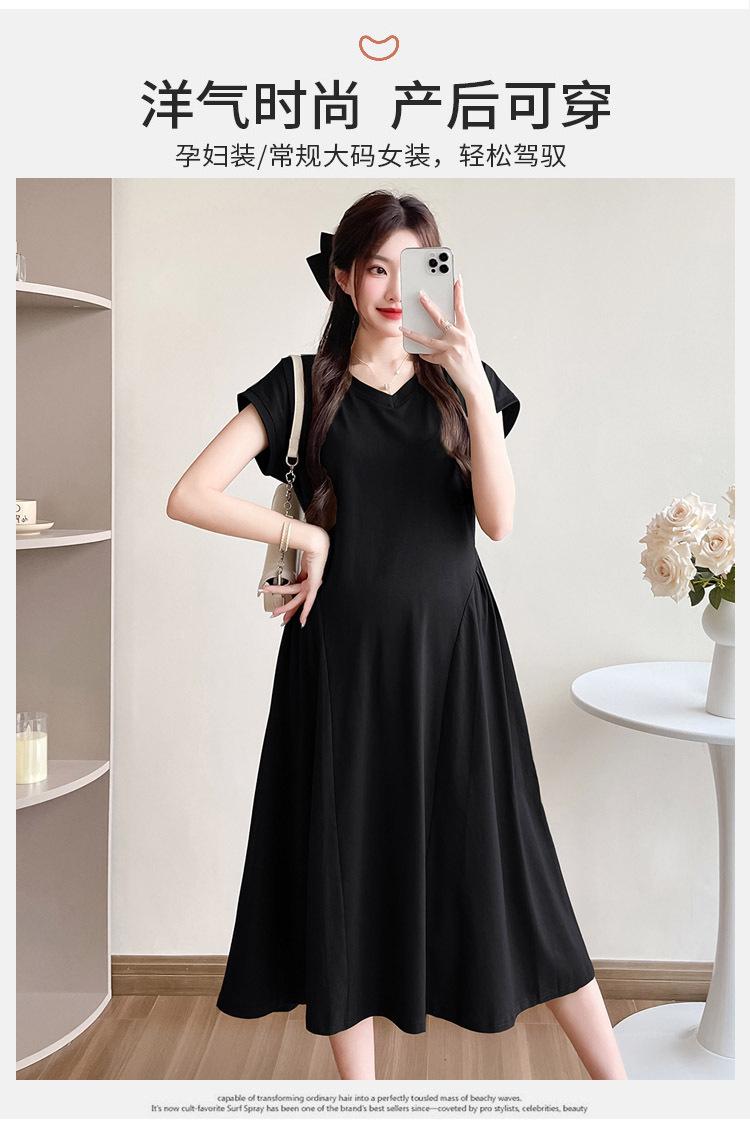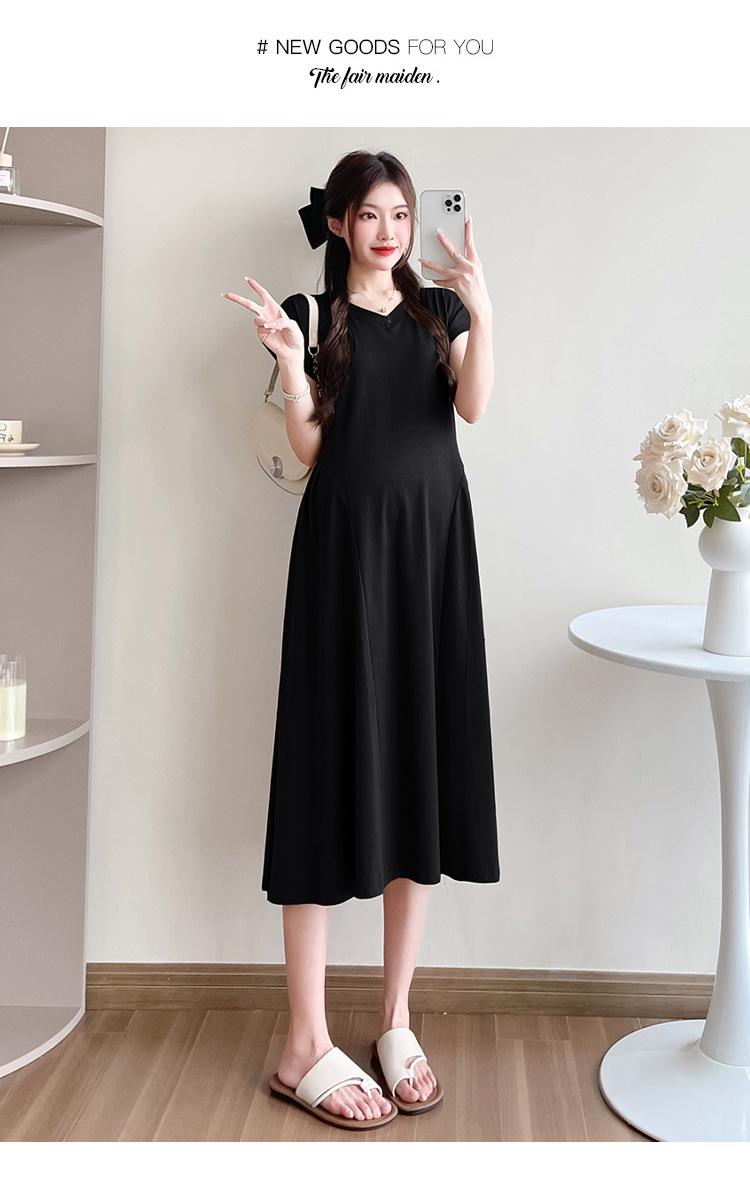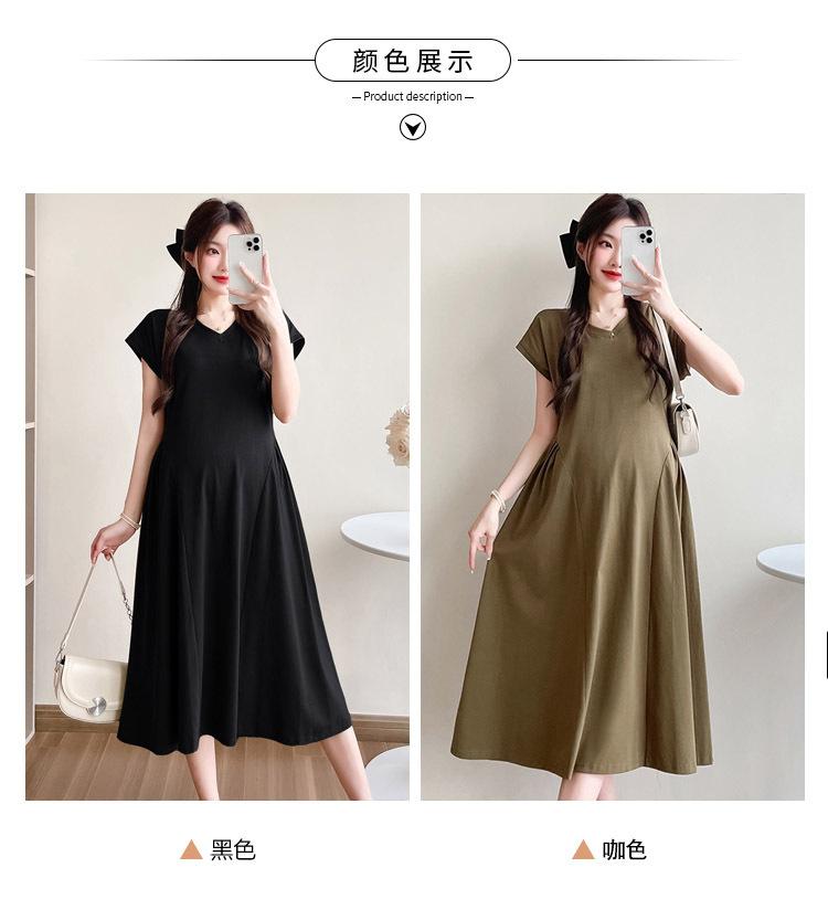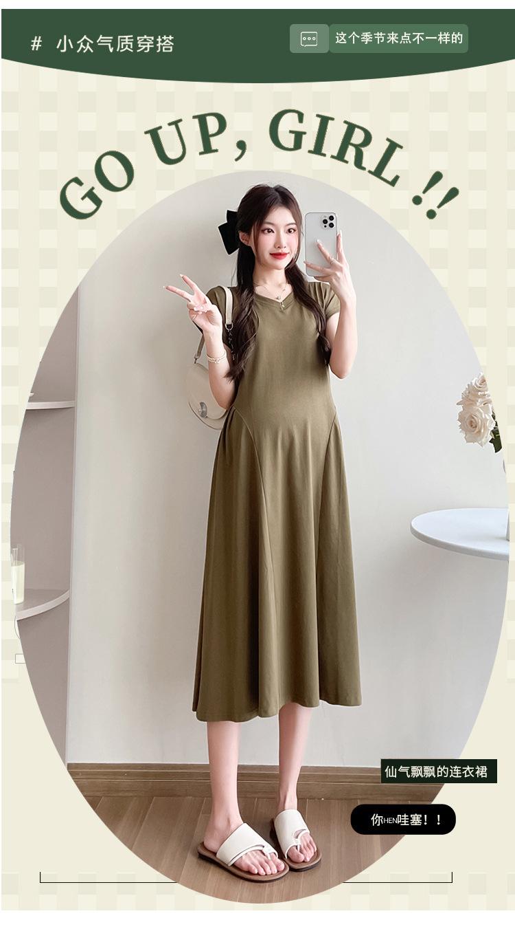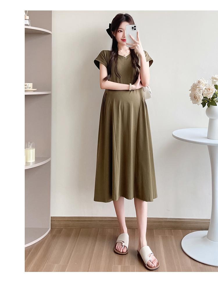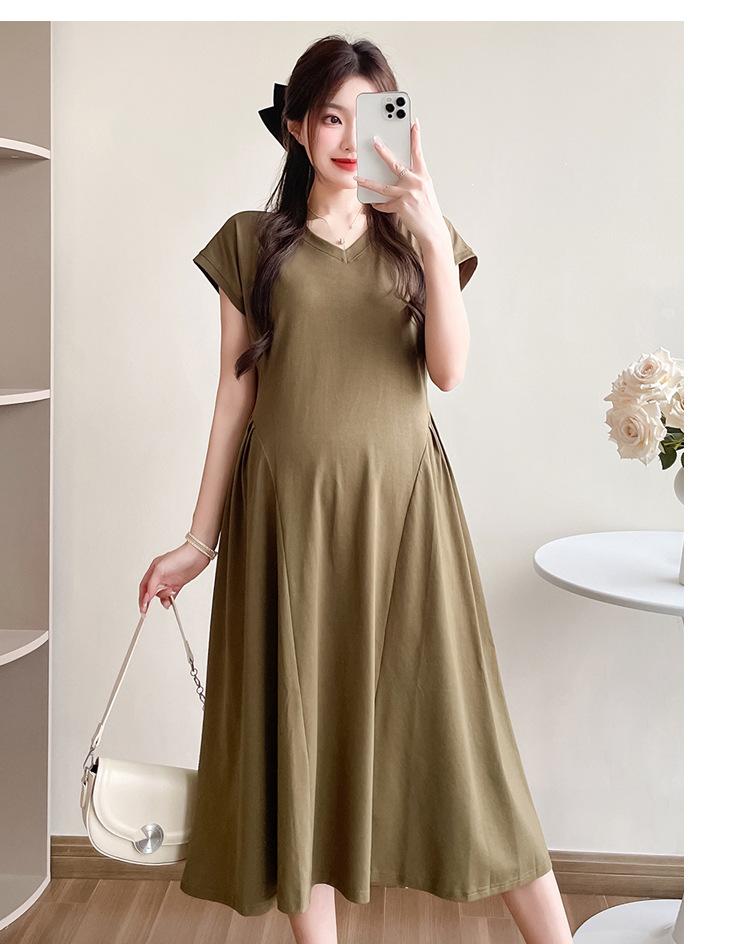 Vestido de maternidad de verano 2024, nuevo, estilo coreano, elegante, color sólido, adelgazante, con escote en V, largo medio, suelto, para embarazadas