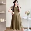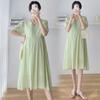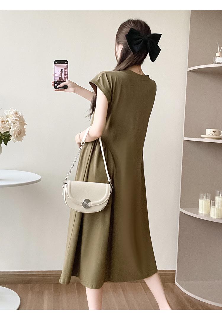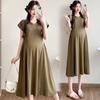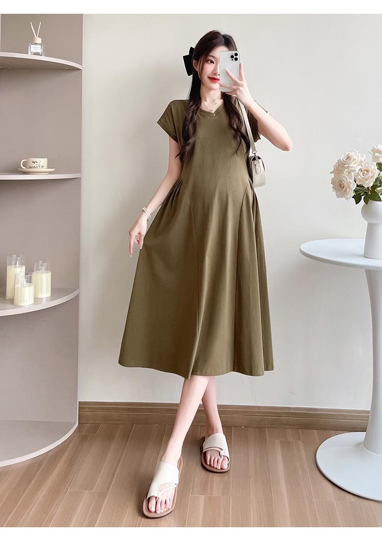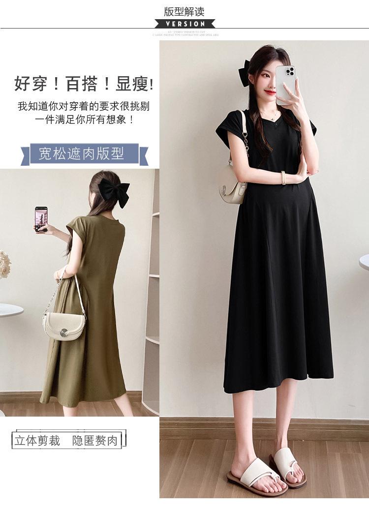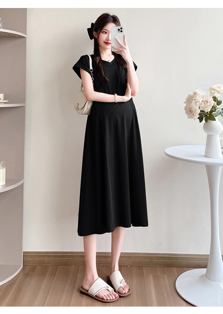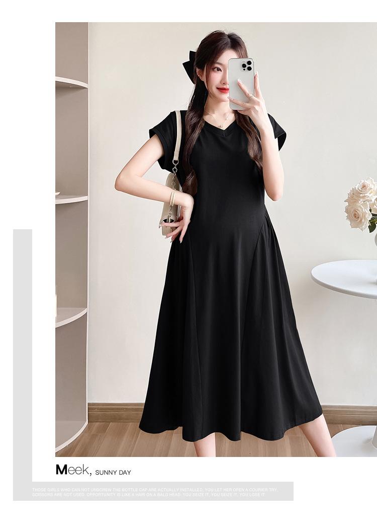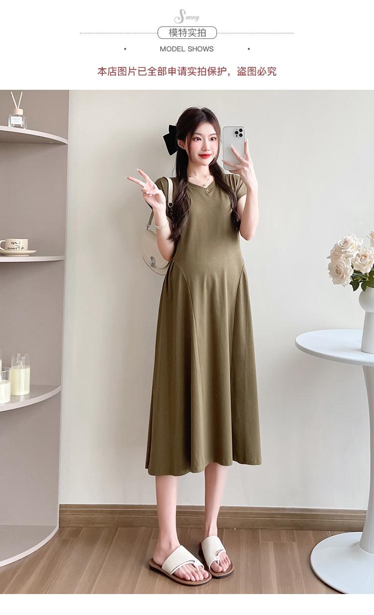Vestido de maternidad de verano 2024, nuevo, estilo coreano, elegante, color sólido, adelgazante, con escote en V, largo medio, suelto, para embarazadas