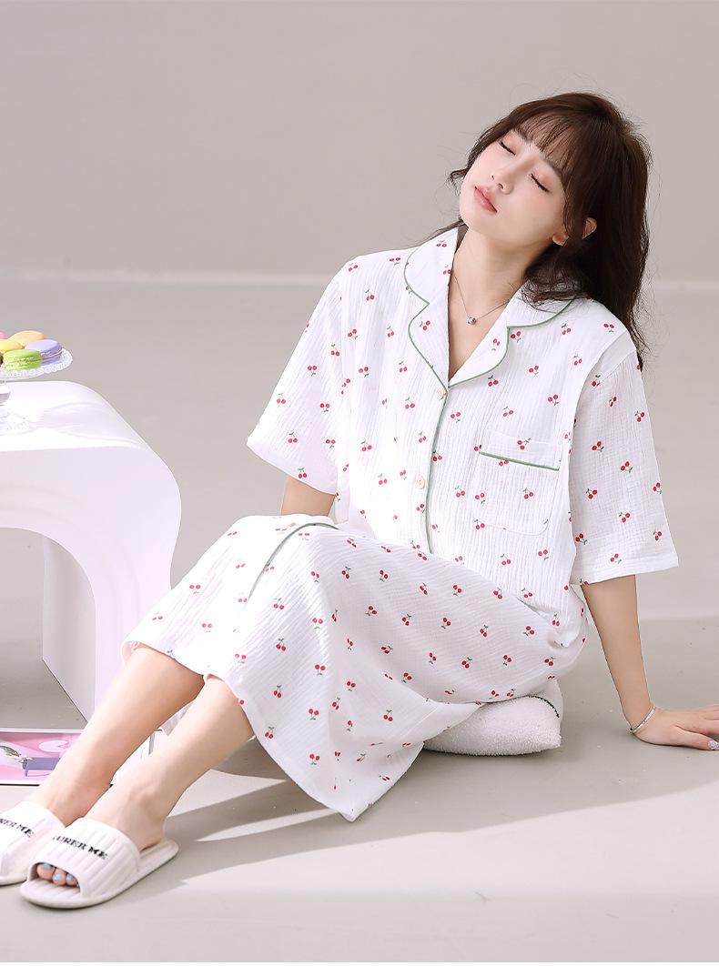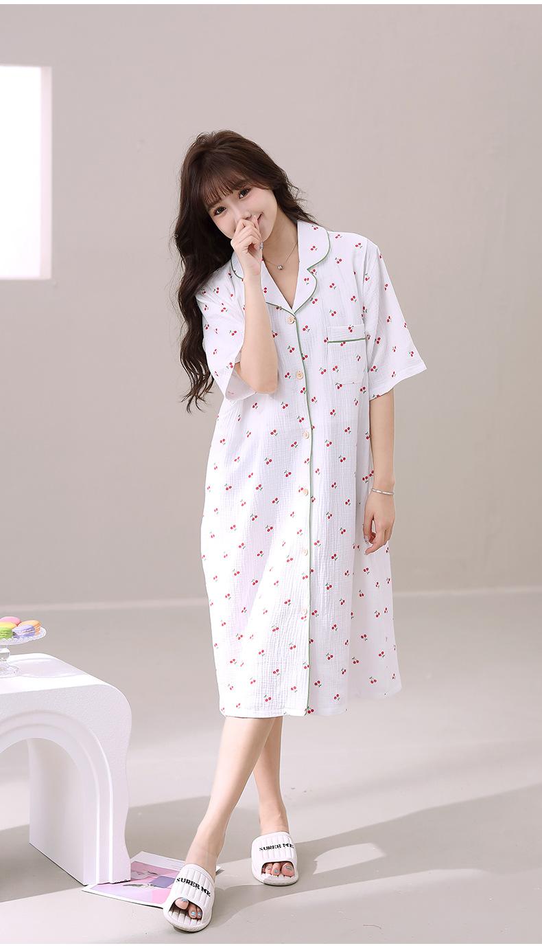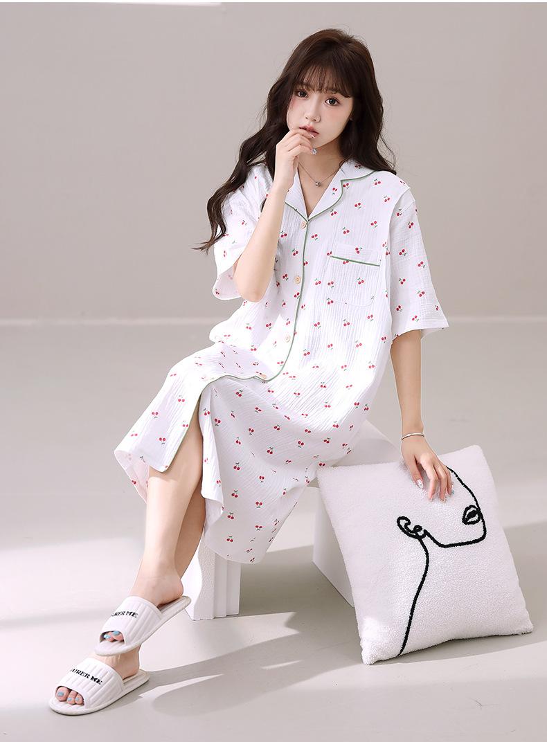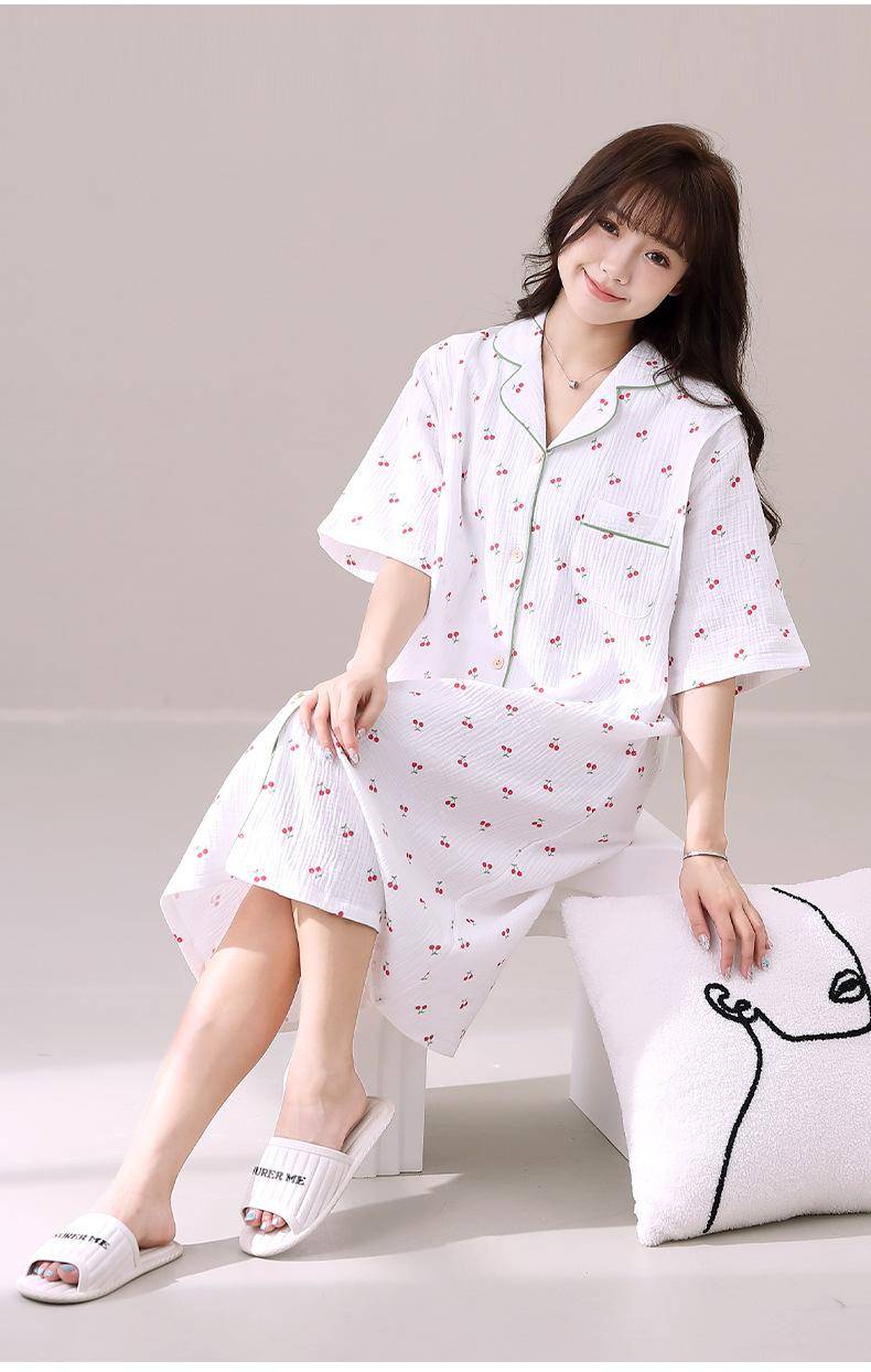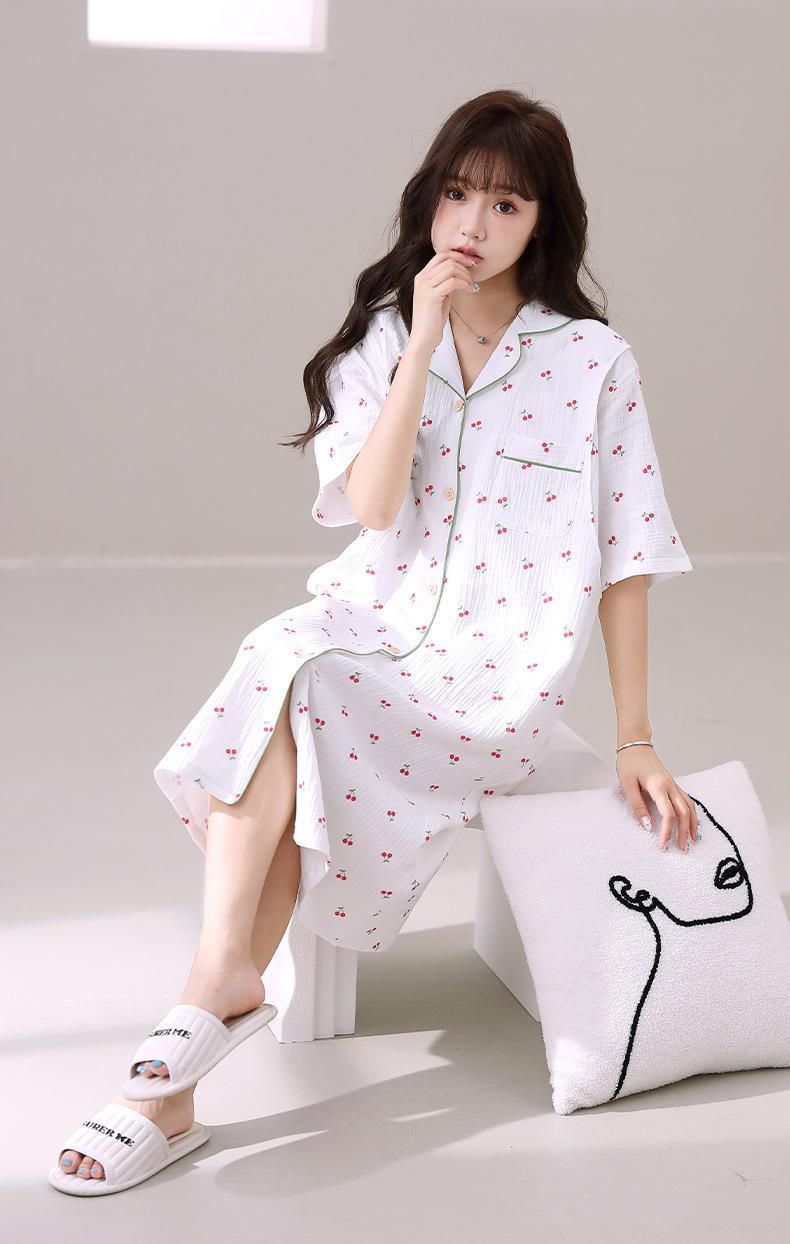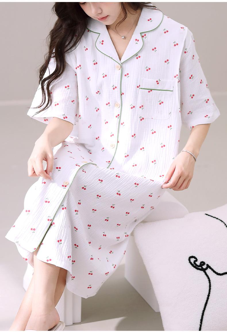 Camisón de Algodón Gasa para Lactancia Verano Manga Corta Pijama de Maternidad para Casa Delgado Postparto Salida Ropa para Lactancia