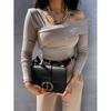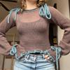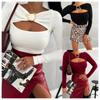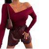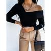 2025 Europa y Estados Unidos transfronterizo Amazon AliExpress nueva moda color sólido sexy ajustado hombro delgado manga larga camiseta