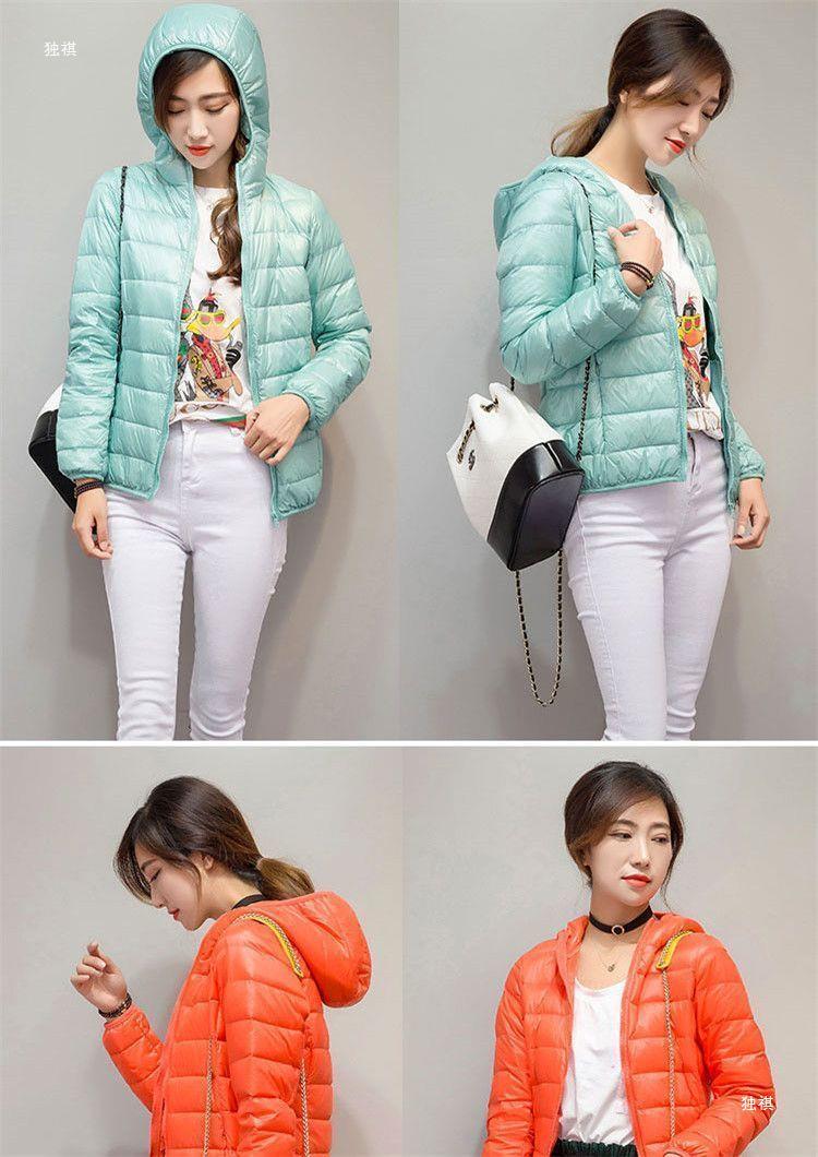 Liquidación de Fuera de Temporada Ropa Acolchada de Algodón Ligero de Plumón para Mujer Corta Cuello Vertical con Capucha Moderna Estilo Coreano Ajustada Moda Femenina