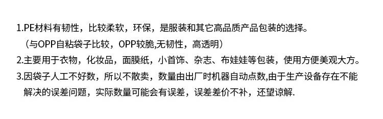 Ámbito de aplicación:Ropa interior, ropa, juguetes, revistas, cosméticos, ropa de cama, cortinas, mochilas escolares, colchas finas, almohadas, chaquetas de cuero, bolsos de cuero y otros productos de embalaje de almacenamiento a prueba de polvo. Retire la película de la superficie del autoadhesivo para sellar, conveniente de usar.