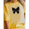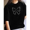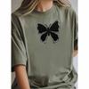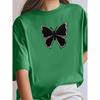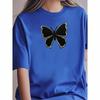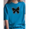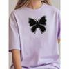 Aliexpress Transfronterizo Nueva Camiseta Casual Negra con Estampado de Mariposa de Manga Corta