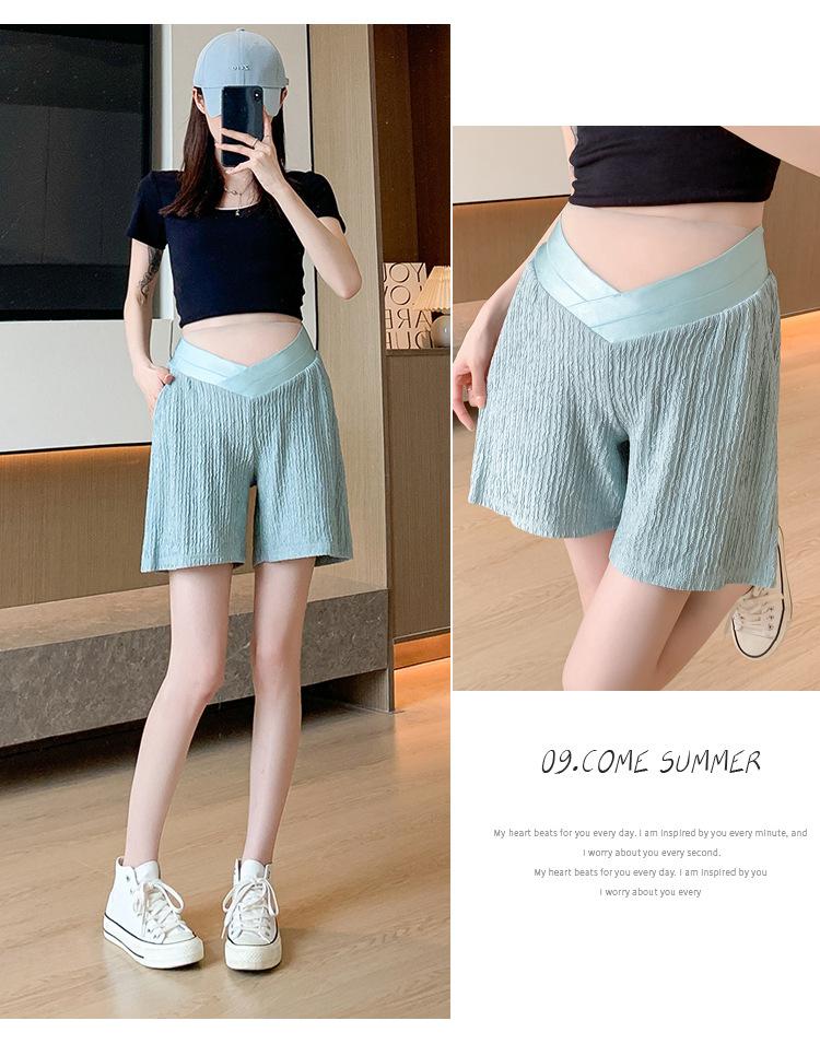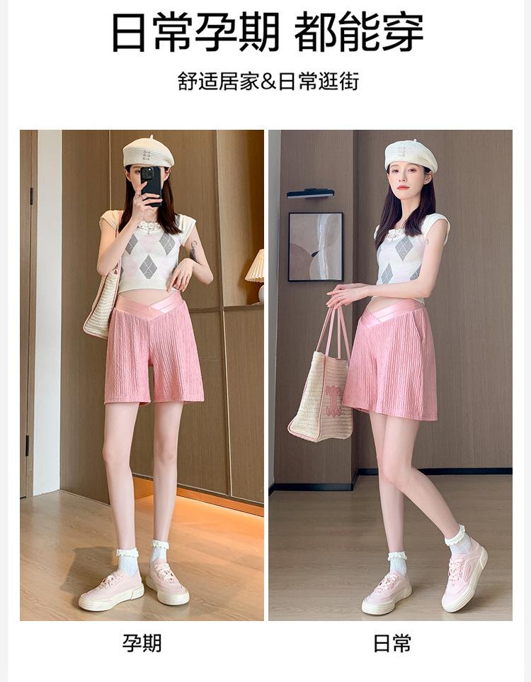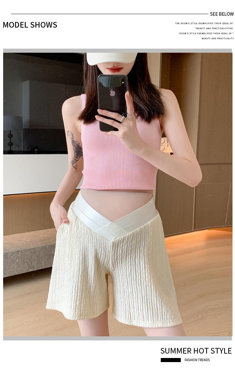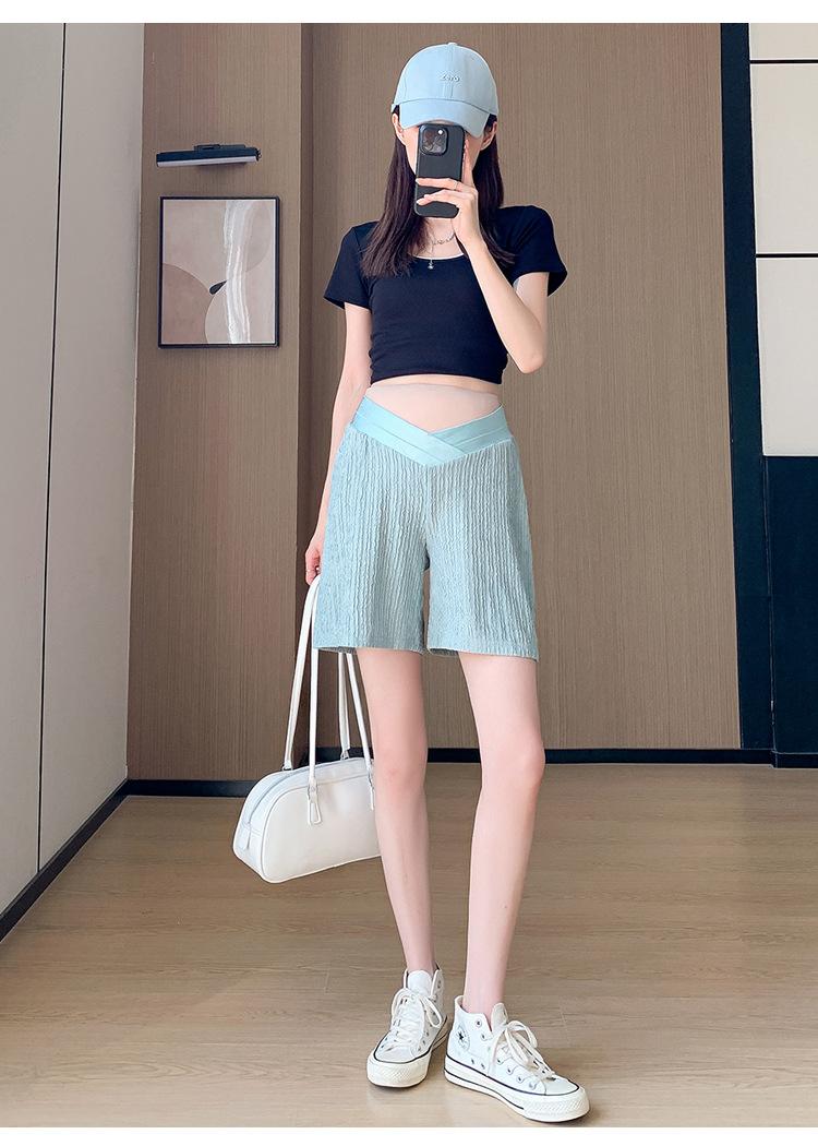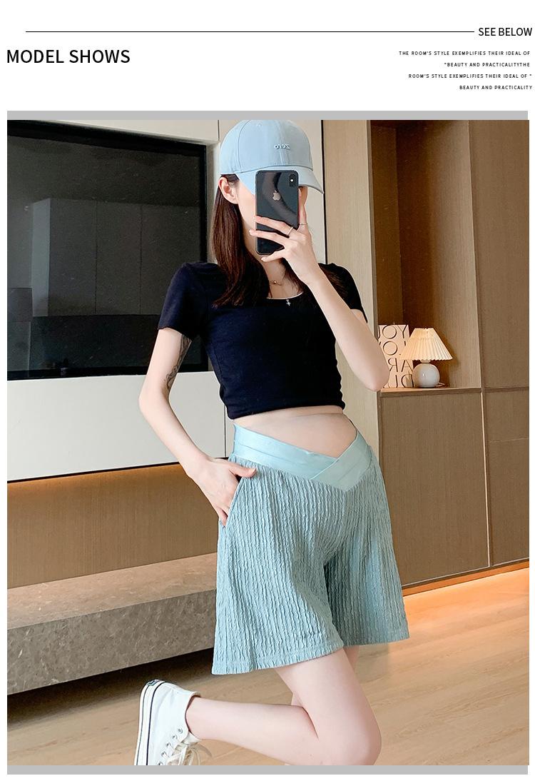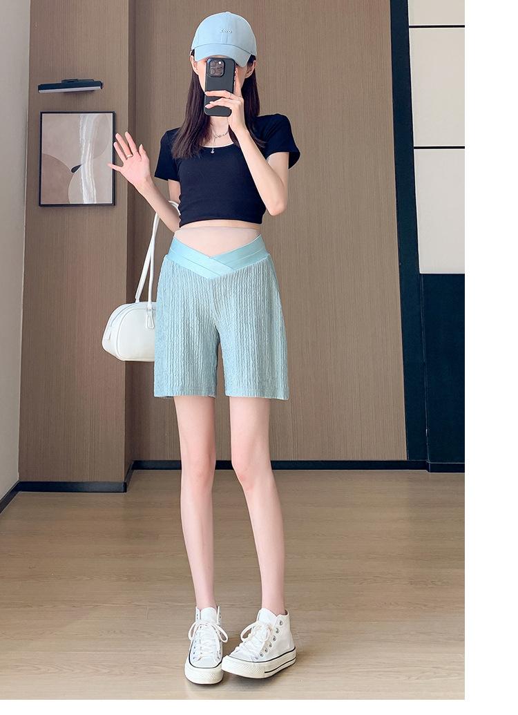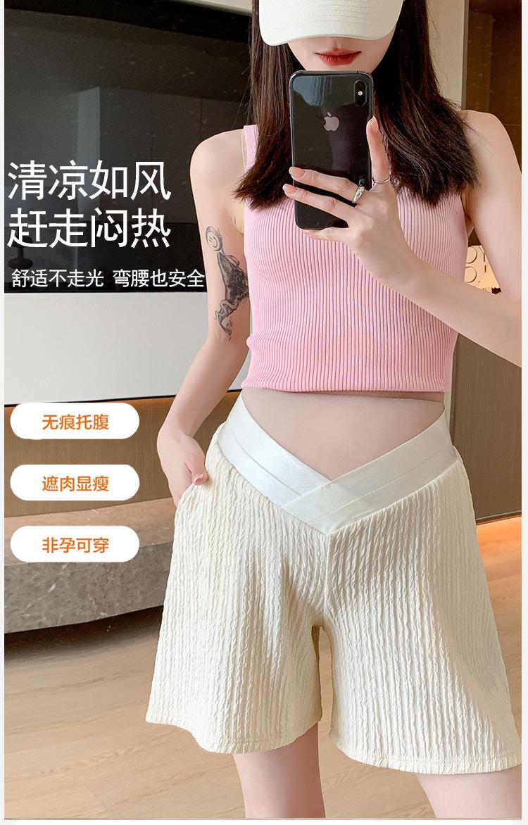 Pantalones de Mujer Embarazada Verano Nuevo Leggings Finos de Seda de Hielo Ropa Exterior Pantalones de Seguridad Shorts de Tres Puntos de Cintura Baja con Soporte Abdominal para Mujer Embarazada