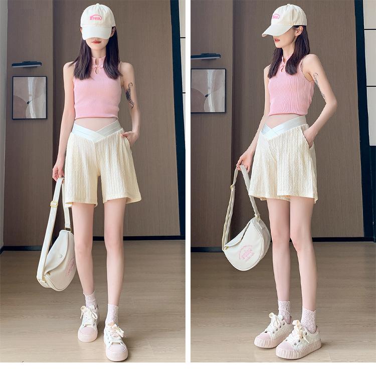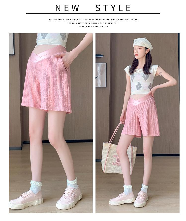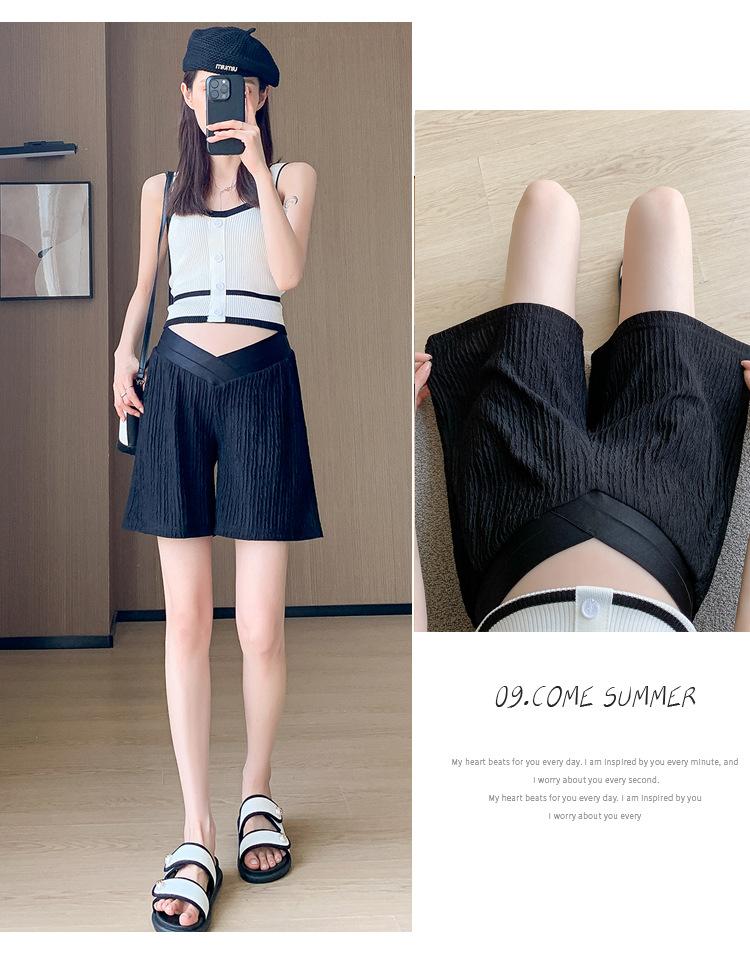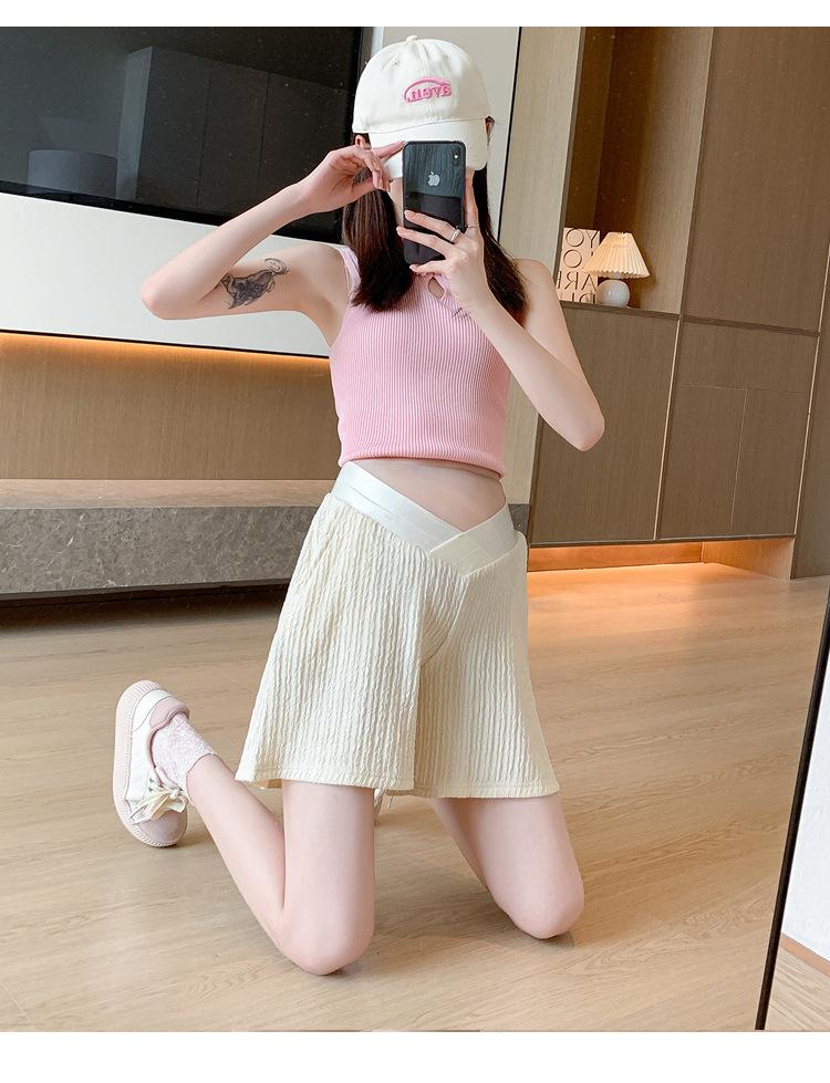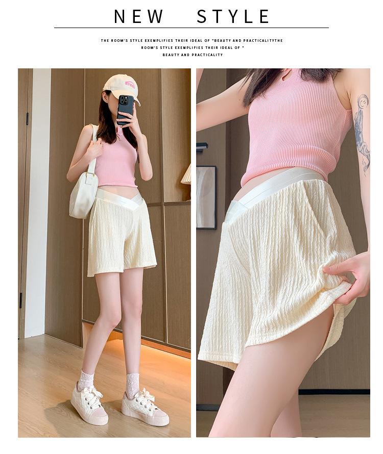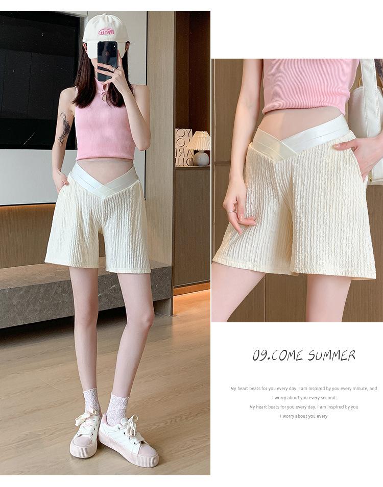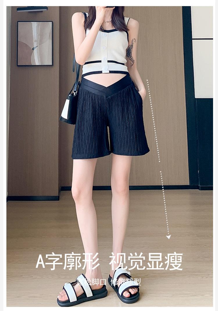 Pantalones de Mujer Embarazada Verano Nuevo Leggings Finos de Seda de Hielo Ropa Exterior Pantalones de Seguridad Shorts de Tres Puntos de Cintura Baja con Soporte Abdominal para Mujer Embarazada