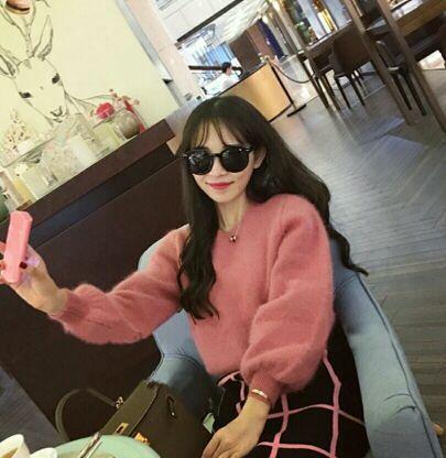 Suéter Pulóver de Manga Larga con Cuello Redondo y Manga Linterna para Mujer, Otoño e Invierno 2015, Temperamento, Combinación Total, Color Sólido, Suéter Tejido, Top de Estudiante