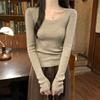 Otoño e Invierno 2025 Temperamento Más Fácil de Combinar Cuello Redondo Manga Linterna Manga Larga Suéter Pulóver para Mujer Suéter de Color Sólido Top para Estudiante