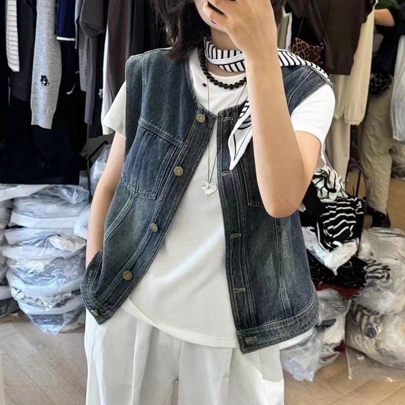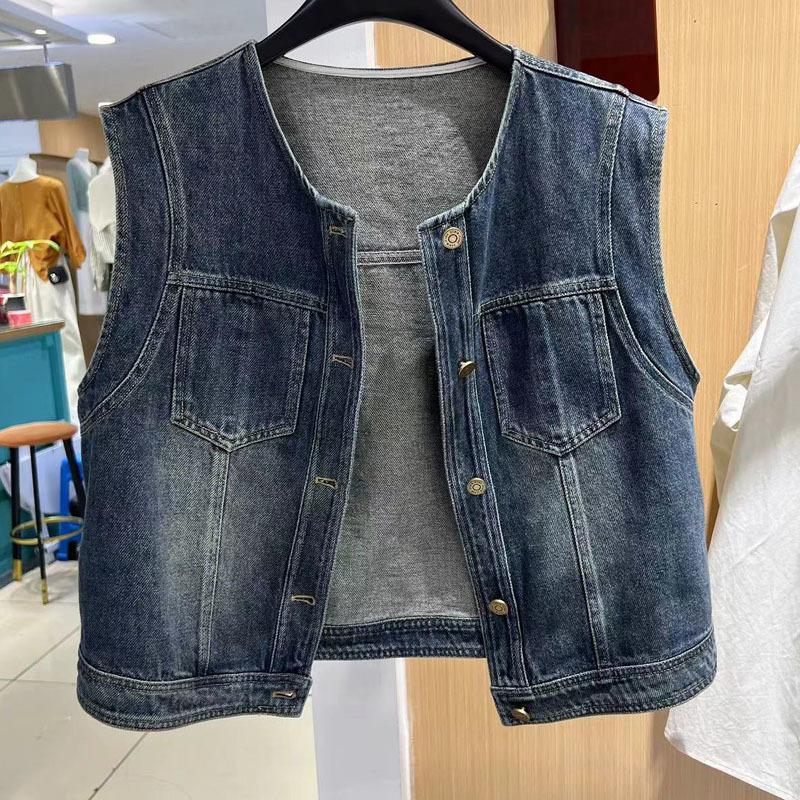 Chaleco de mezclilla de diseño europeo retro para mujer Primavera y otoño Nuevo Suelto Moderno Casual Corto Trendy