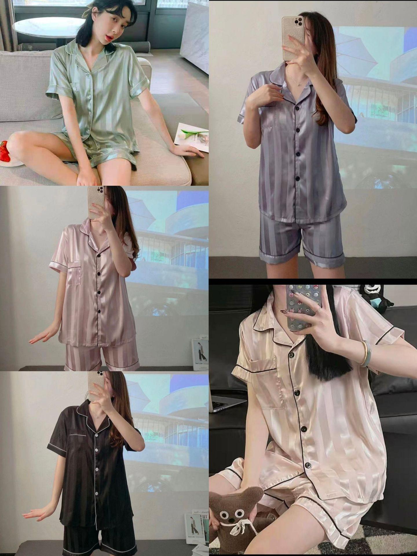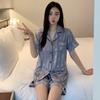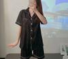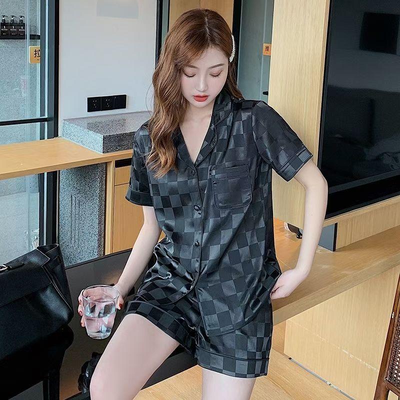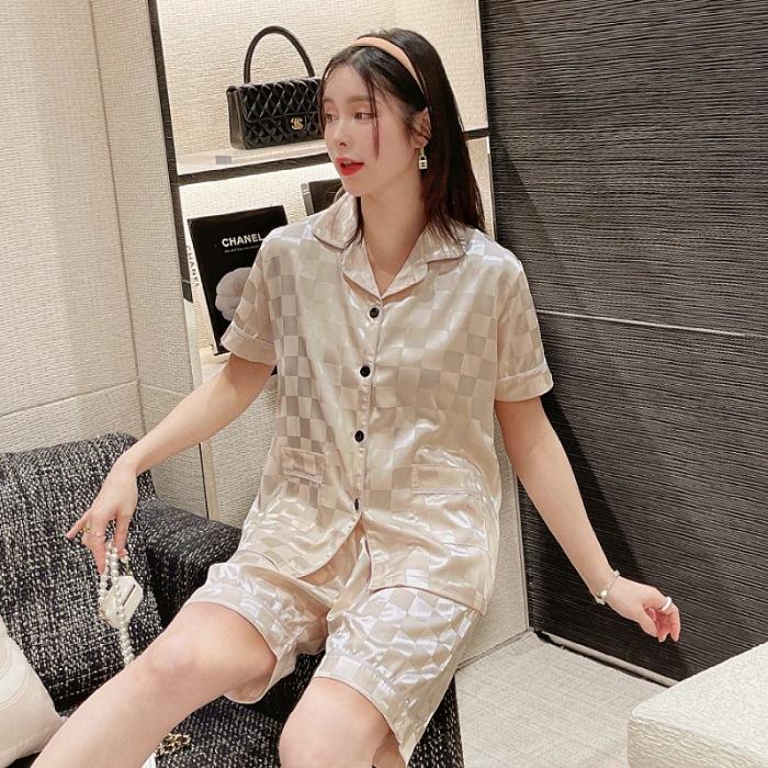 Pijama de Seda de Hielo para Mujer 2025 Nuevo Verano Delgado Manga Corta Verano Seda Simulada Estilo Ins Conjunto de Ropa para el Hogar