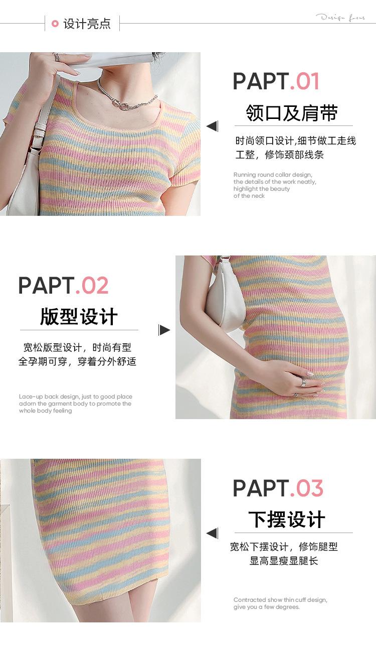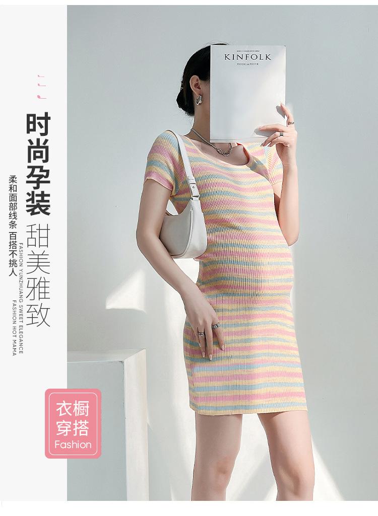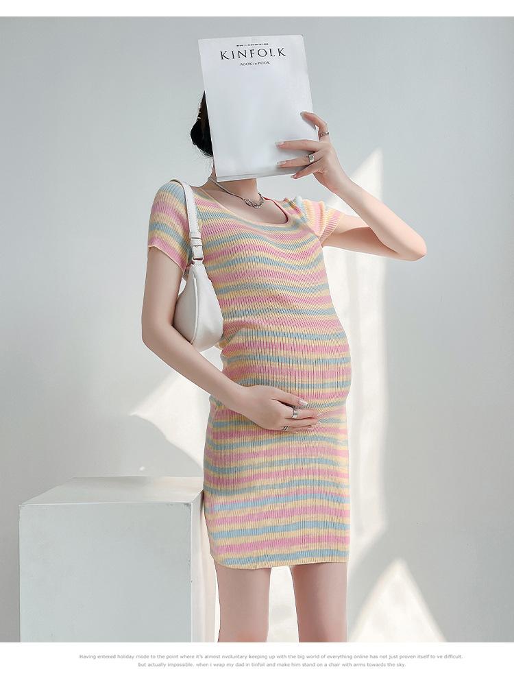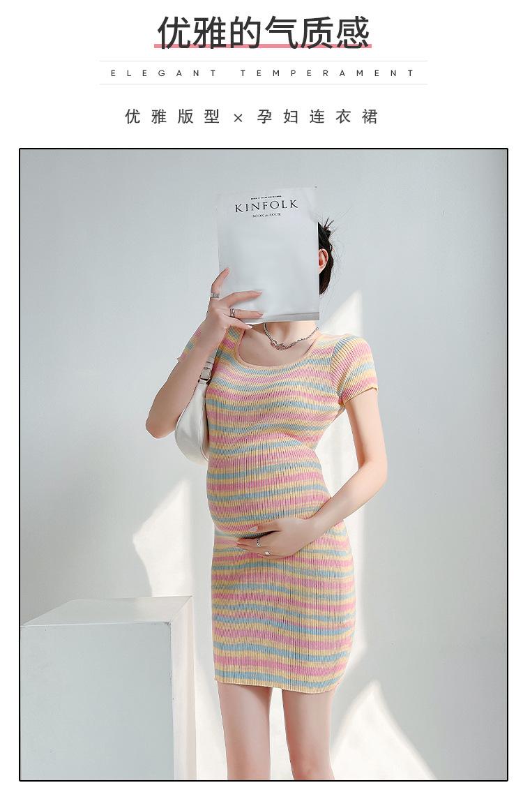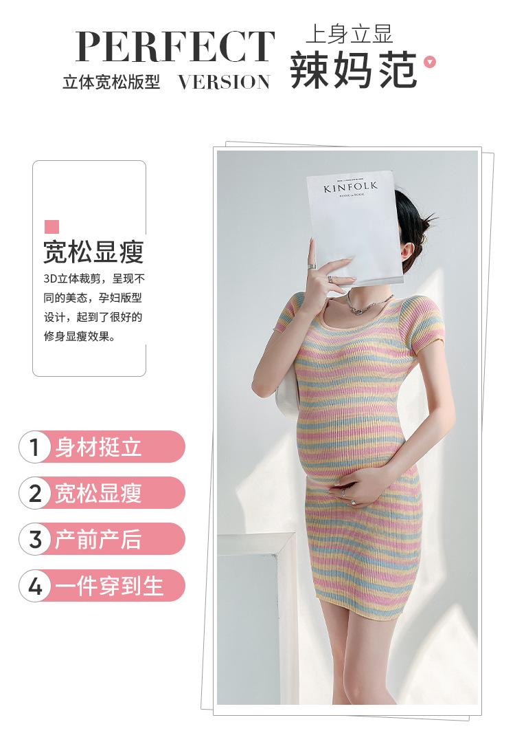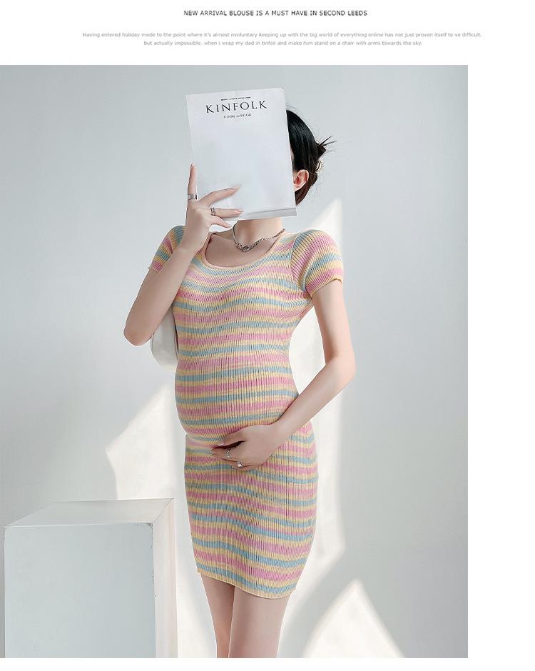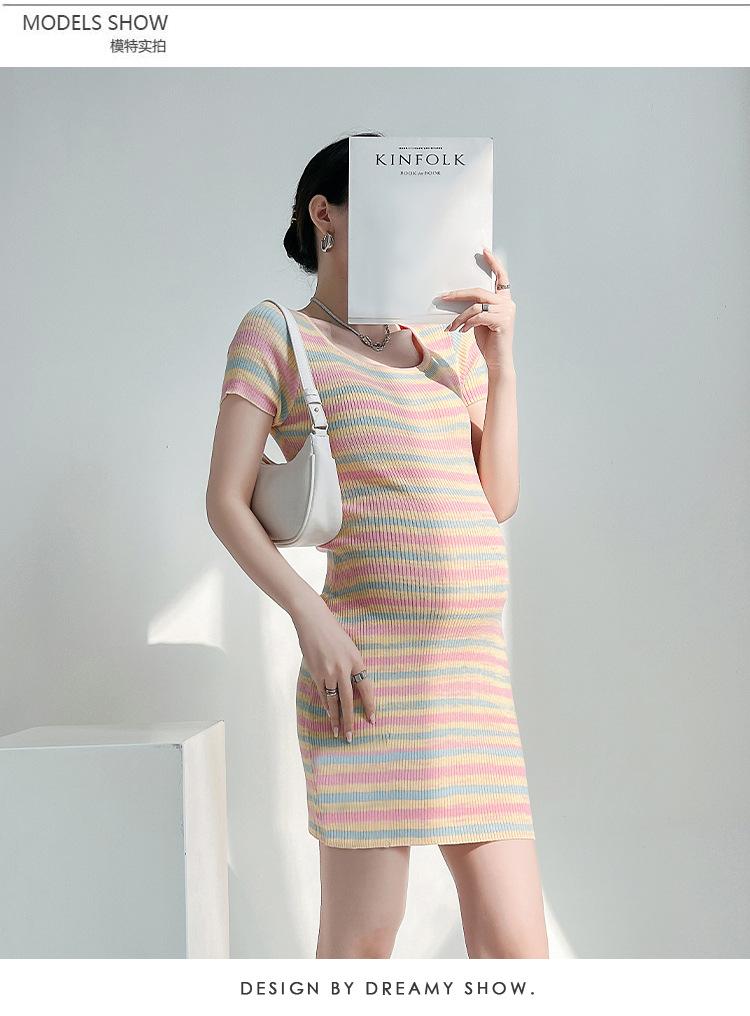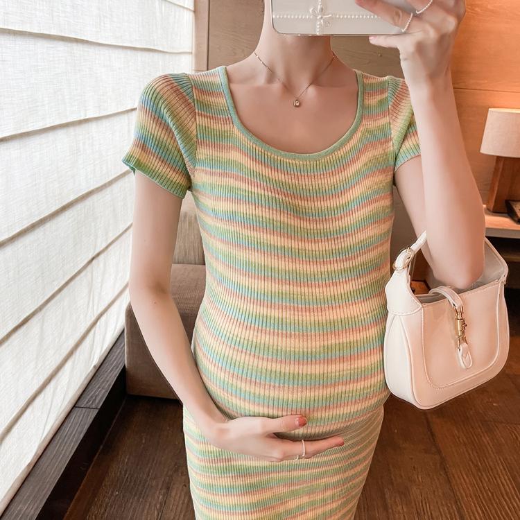 Maternidad 2024 Verano Nueva Moda Rayado Ajustado Adelgazante Tejido Suelto Talla Grande Vestido para Mujeres Embarazadas