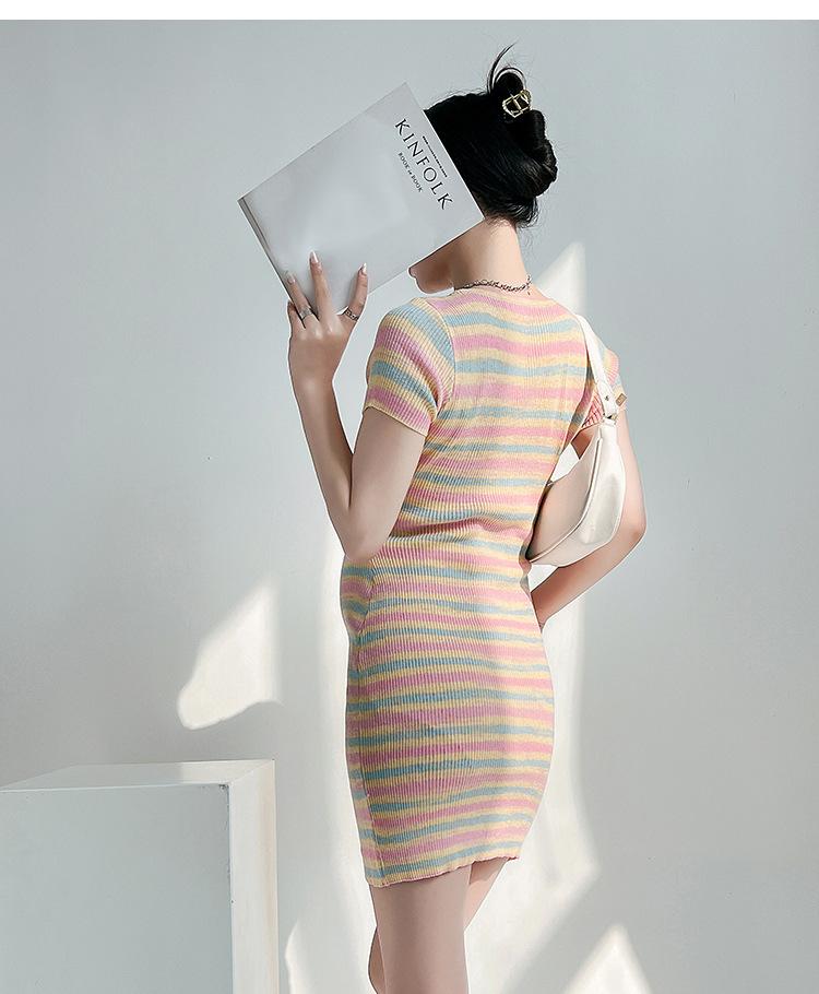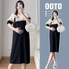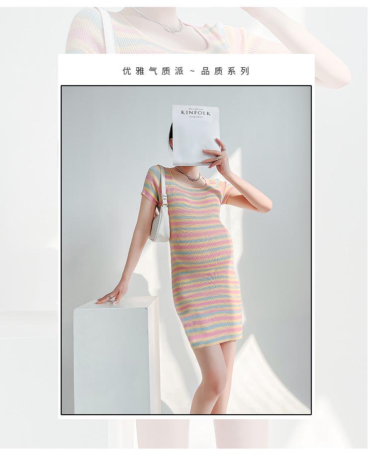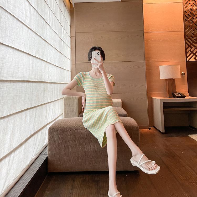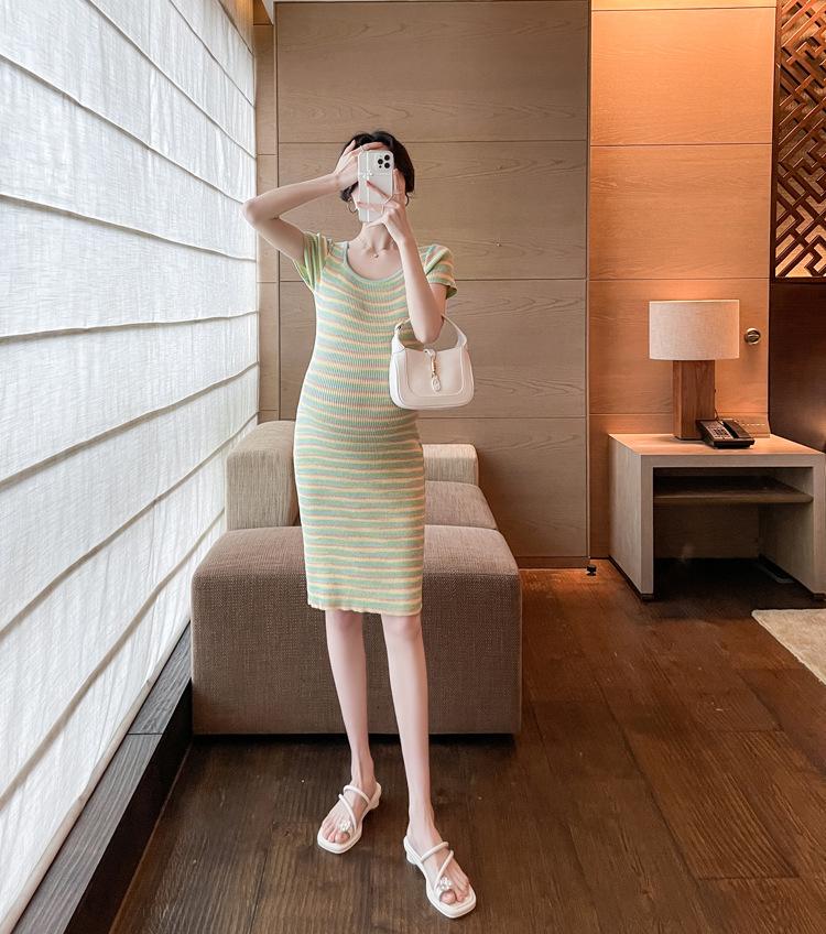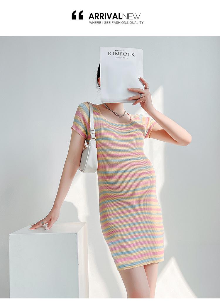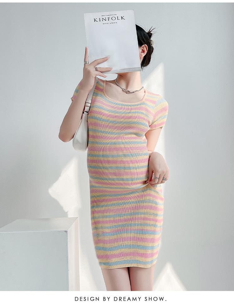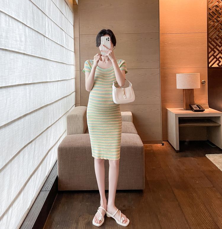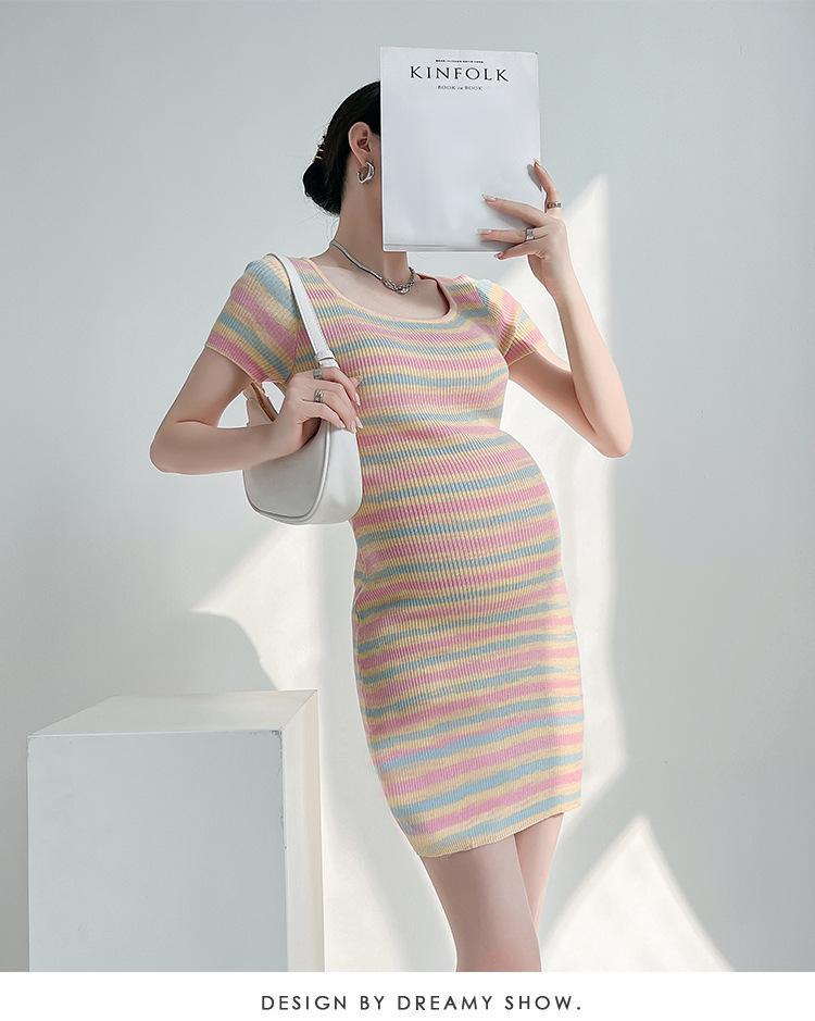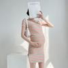 Maternidad 2024 Verano Nueva Moda Rayado Ajustado Adelgazante Tejido Suelto Talla Grande Vestido para Mujeres Embarazadas
