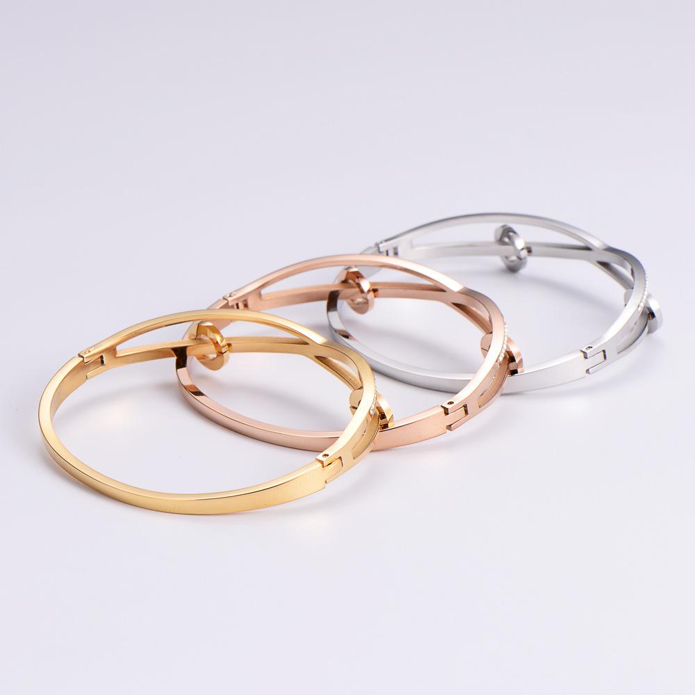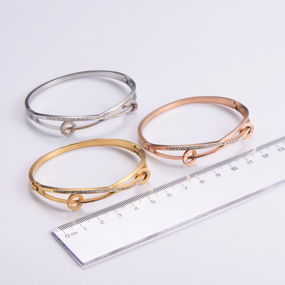 【[Nuestro Estilo Más Nuevo] [Venta Especial de Taobao] Brazalete de Metal de Acero de Titanio con Números Romanos Joyería al Detalle Chapado en Oro de 18k Accesorios Estilo Hong Kong