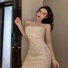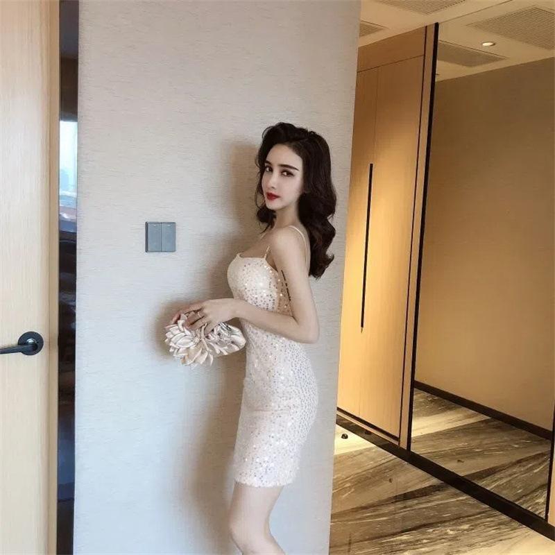 Vestido de lentejuelas brillantes de verano 2023 dulce falda de tirantes ajustado elegante sexy falda tubo para mujer