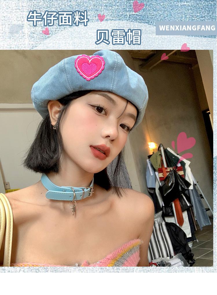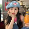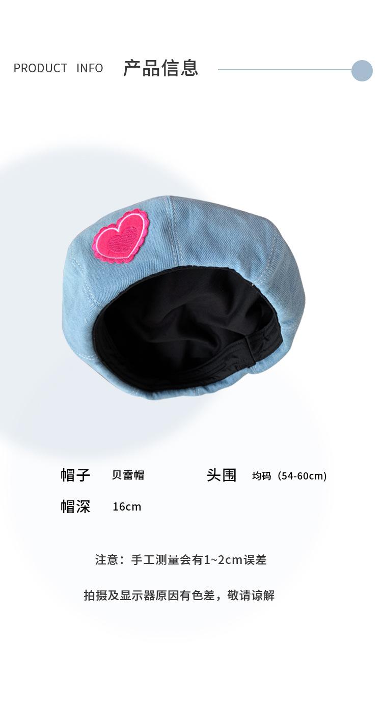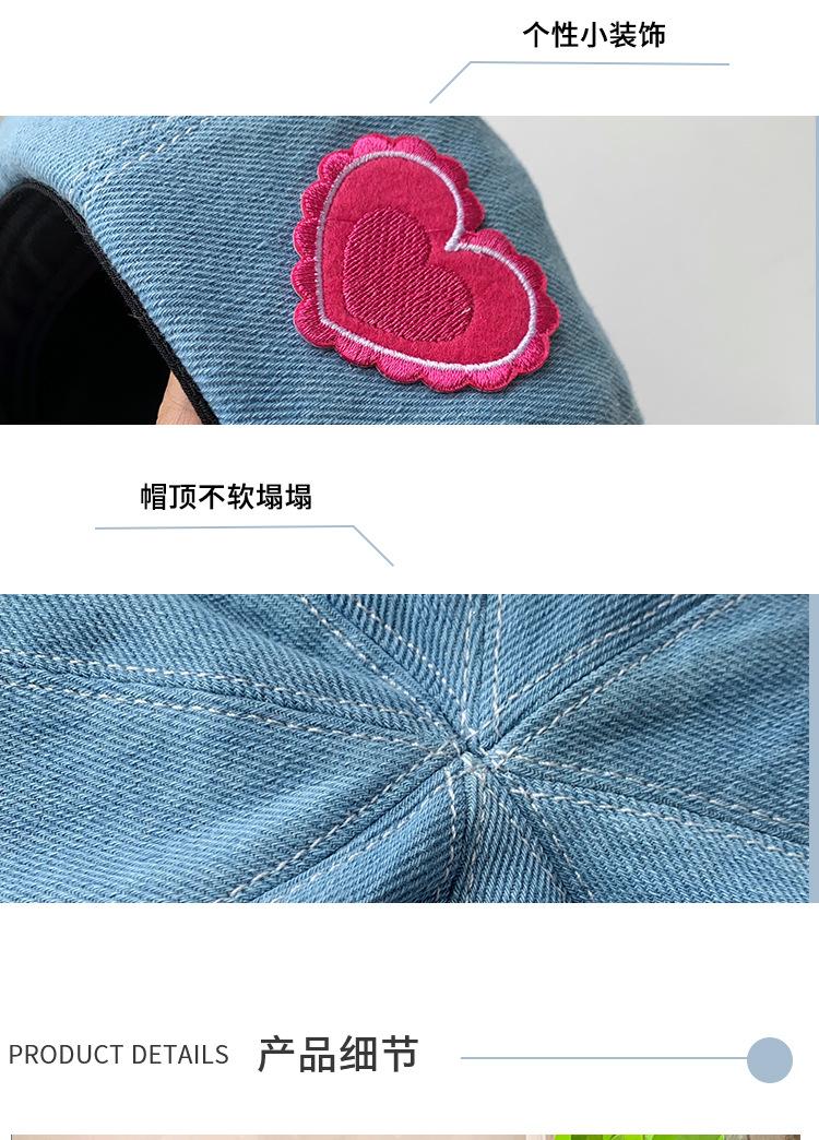 Boina vaquera Love para mujer, primavera y verano, estilo coreano, brillante, pequeña, combinable con todo, gorra de pintor Beilei, estilo japonés, sombrero de cabeza grande.
