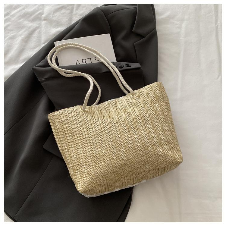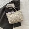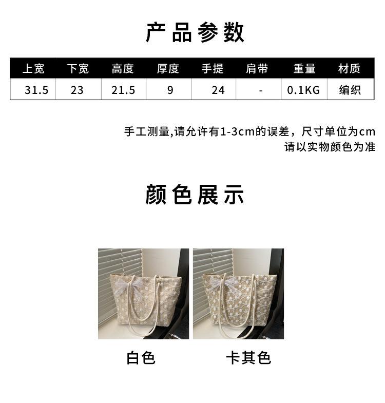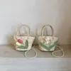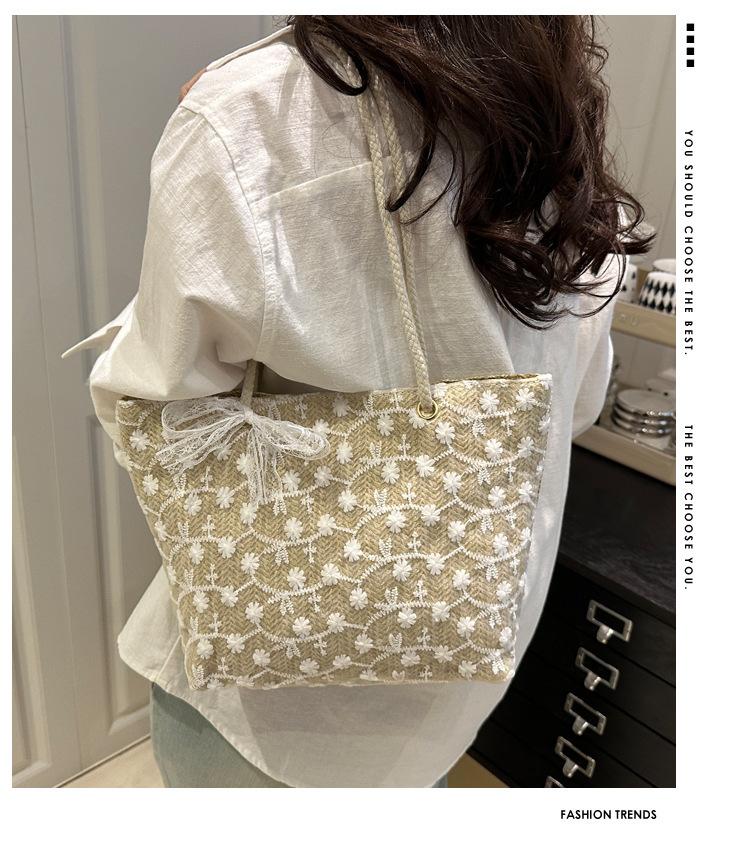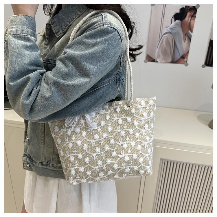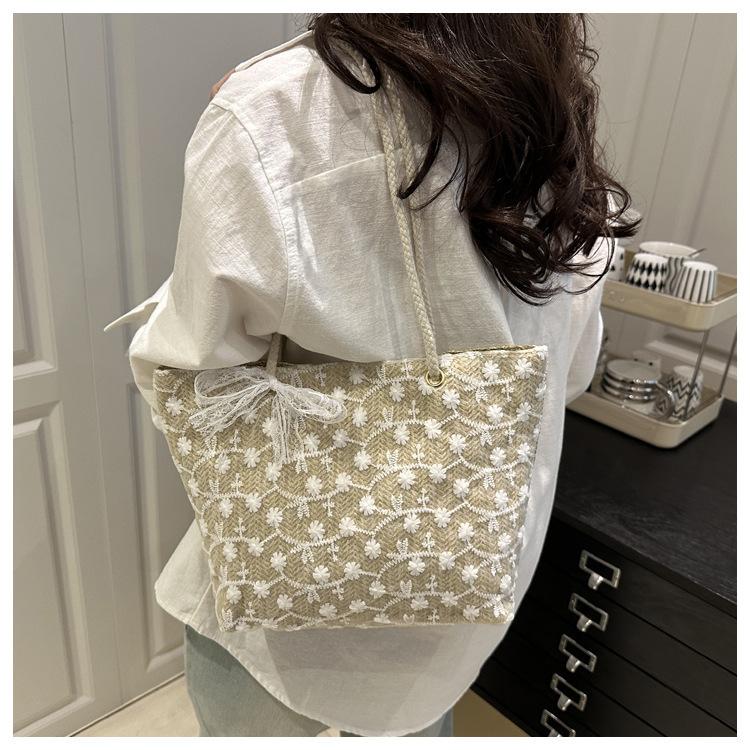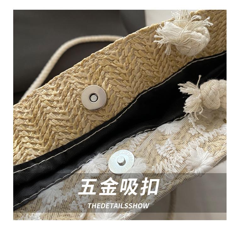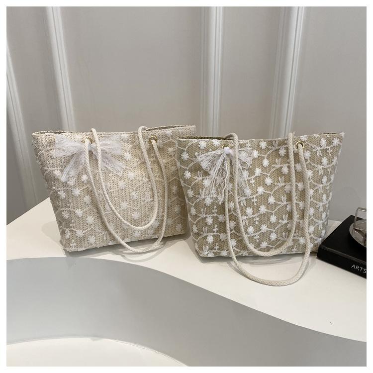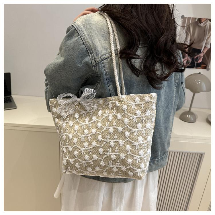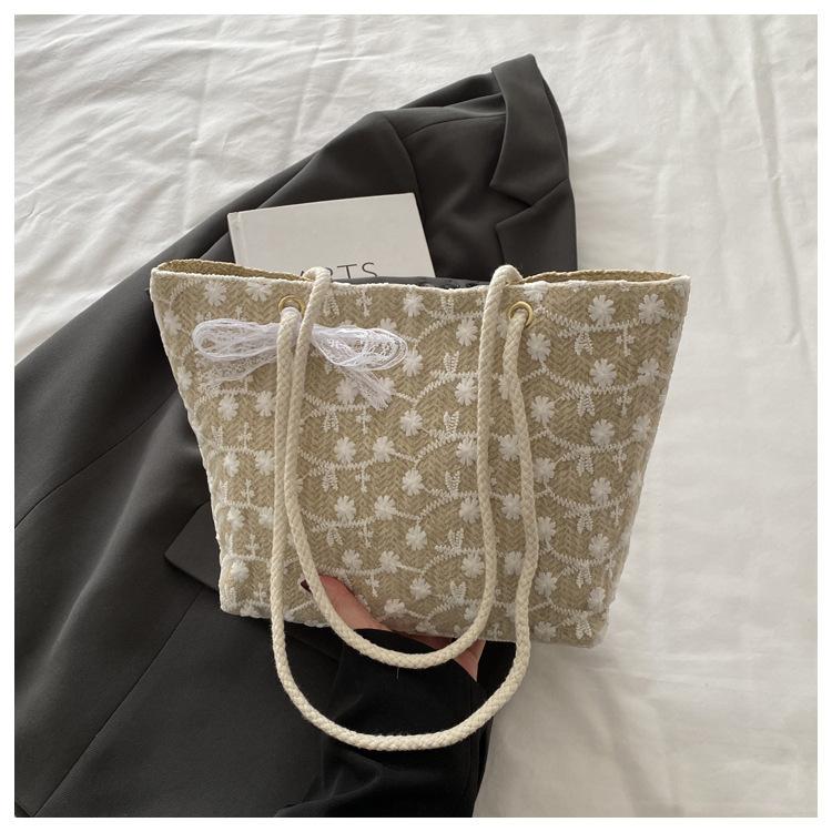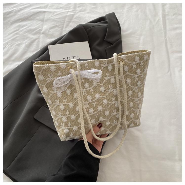Bolso de Paja con Encaje Moda Femenina Simple Casual Portátil Tejido Hombro Axila Bolso Pequeño Fresco para Chica
