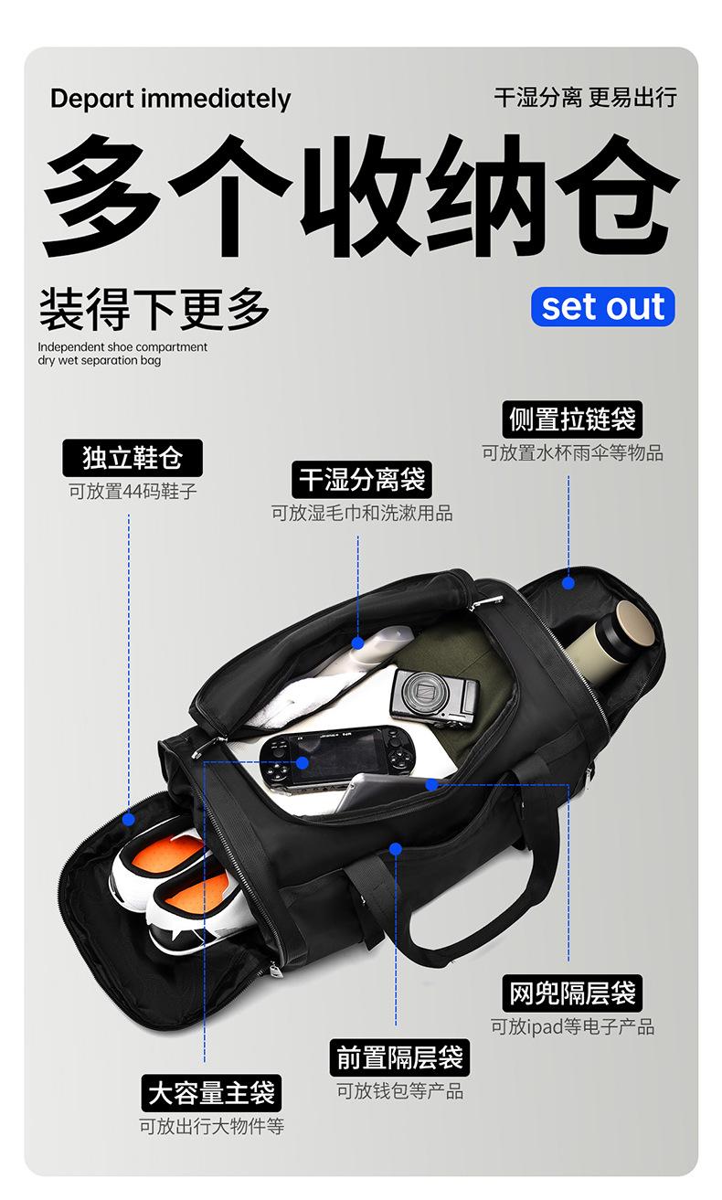 Bolsa de Viaje Portátil de Gran Capacidad Bolsa Deportiva Multifuncional para Viajes y Desplazamientos Bolsa de Almacenamiento de Equipaje
