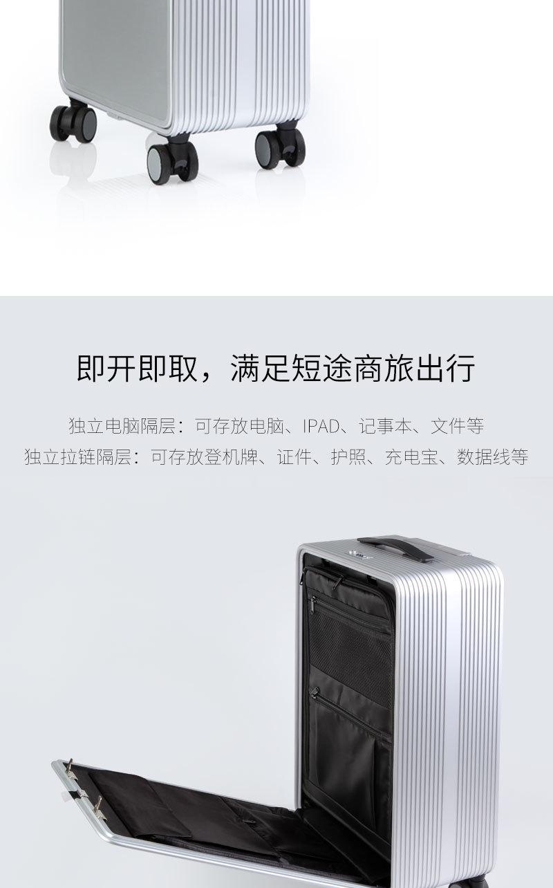 Activity Equipaje de 20 pulgadas de apertura frontal para mujer, Maleta trolley de mano, Aleación de aluminio y magnesio, Rueda universal, Maleta con contraseña