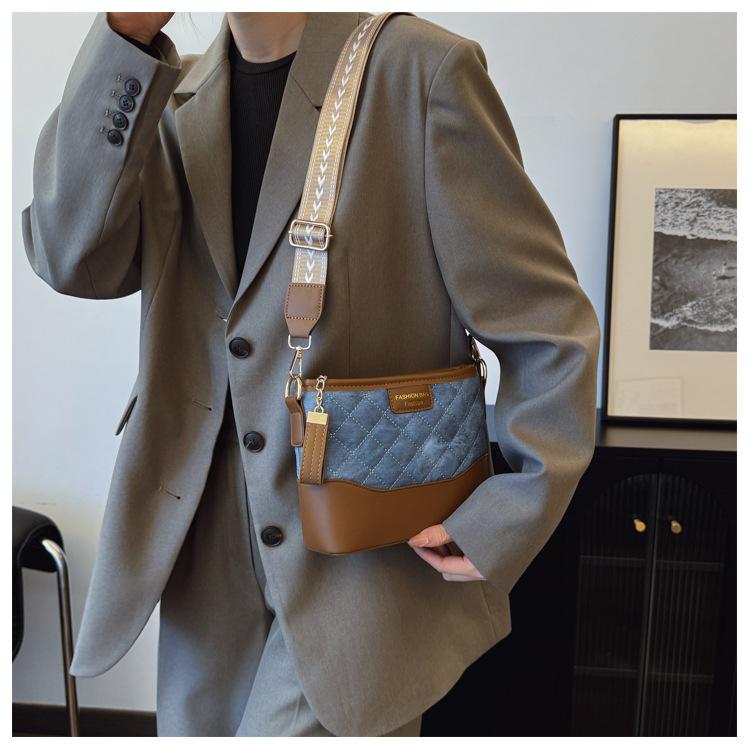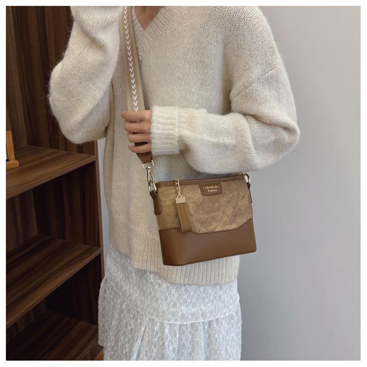 Bolsos de Moda para Mujer 2025 Nuevo Bolso de Hombro Acolchado Bordado Bolso de Cubo Cruzado Versátil de Moda