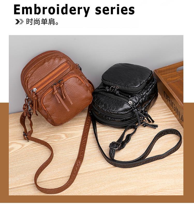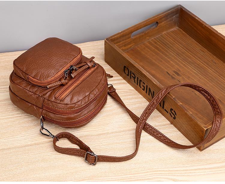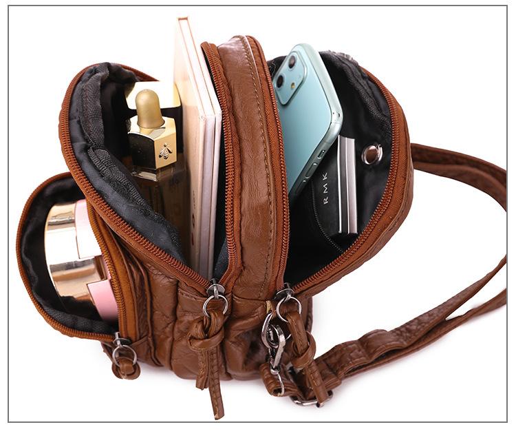 Bolso bandolera Bolso pequeño para mujer Nuevo transfronterizo Bolso de hombro de cuero suave Moda retro Multicapa Gran capacidad Bolso para teléfono móvil para mujer