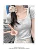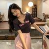 Camiseta corta de verano para mujer, diseño Sense, corte entallado, manga corta, hombros descubiertos, estilo Spice Girl, 202