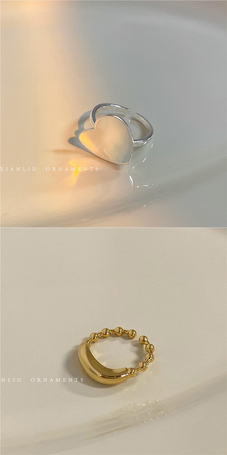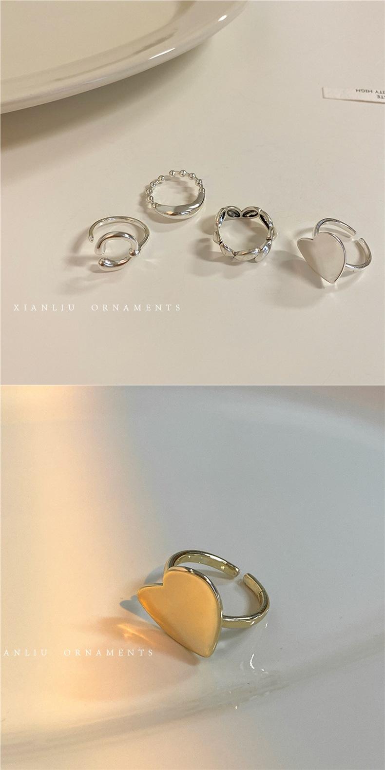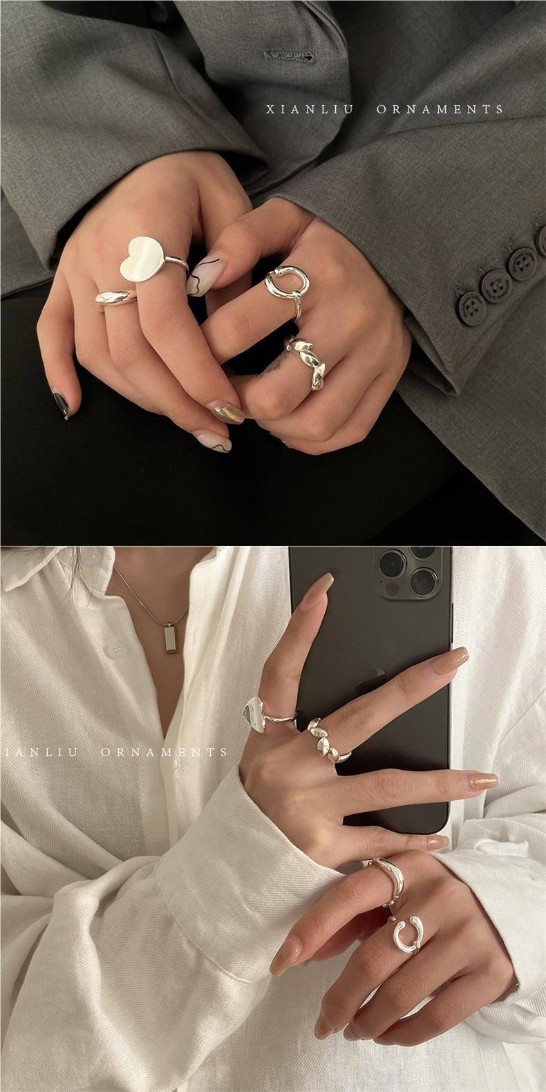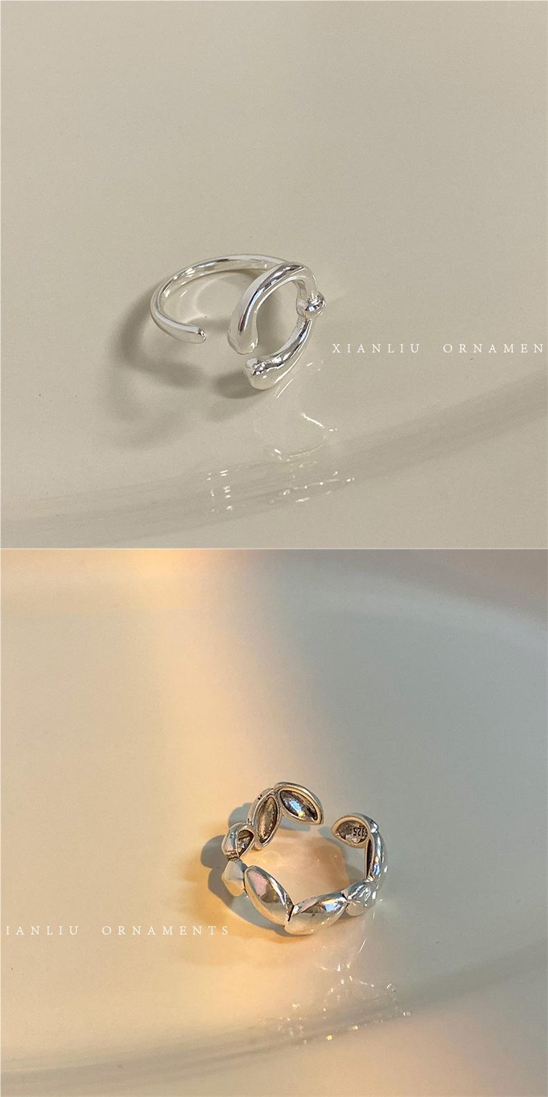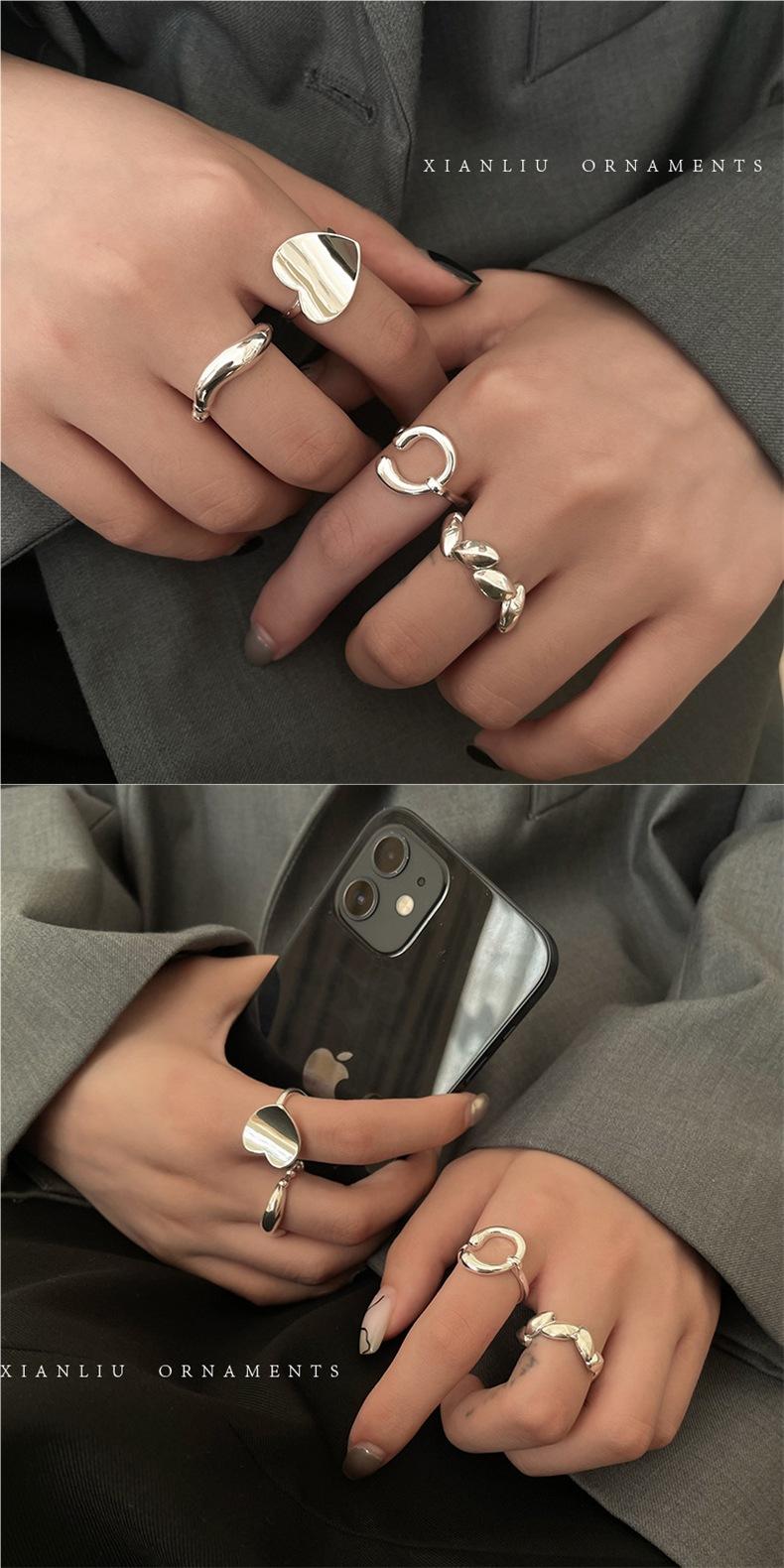 Anillo de Corazón Personalizado de Plata S925 Versión Coreana para Mujer, Anillo Abierto de Hoja Vintage de Moda Hip-Hop, Anillo de Dedo Índice Trendy