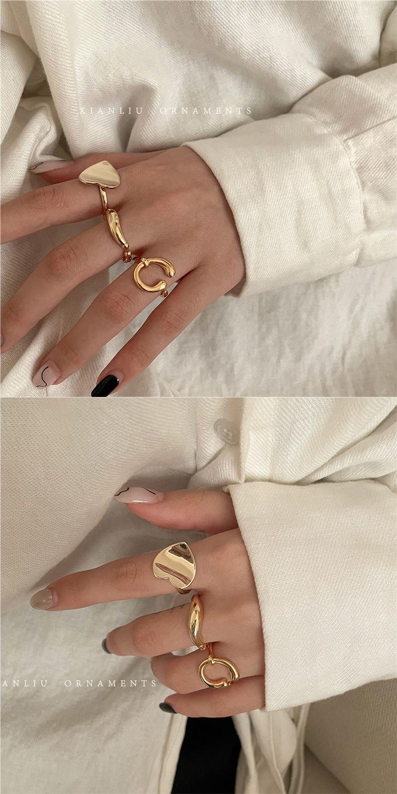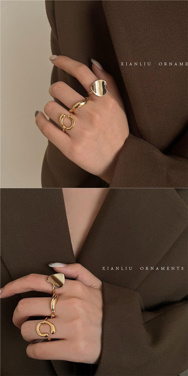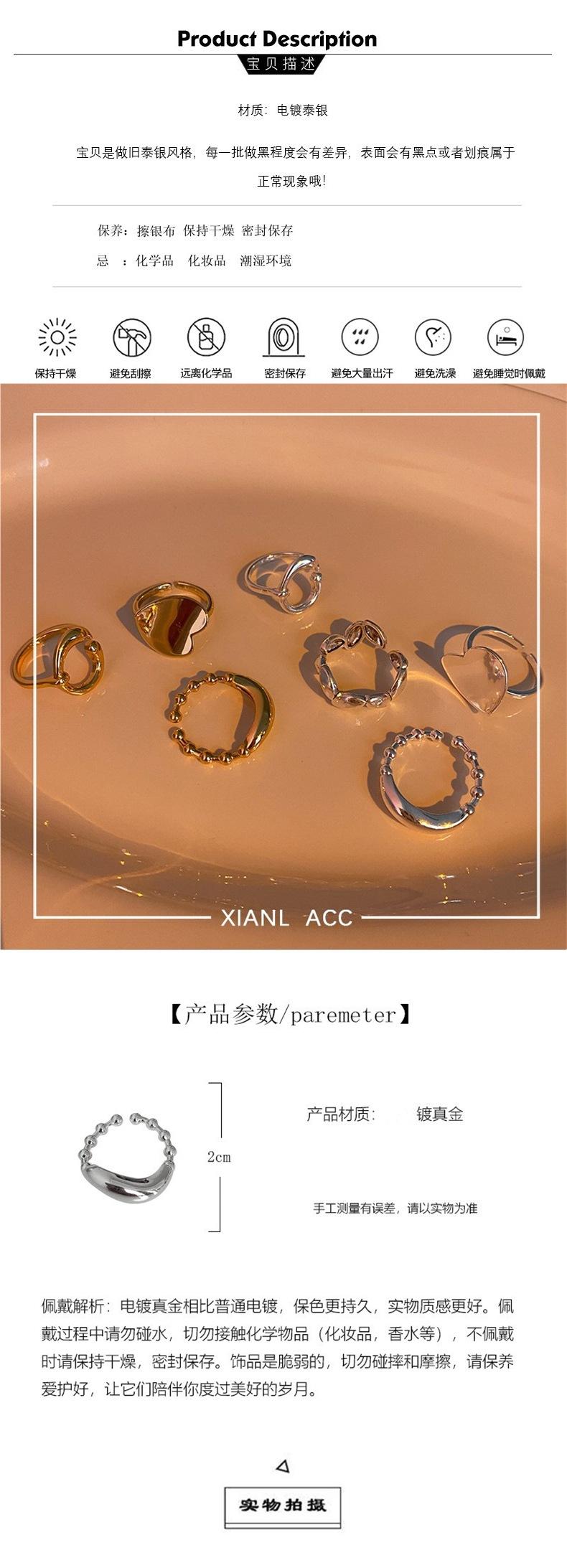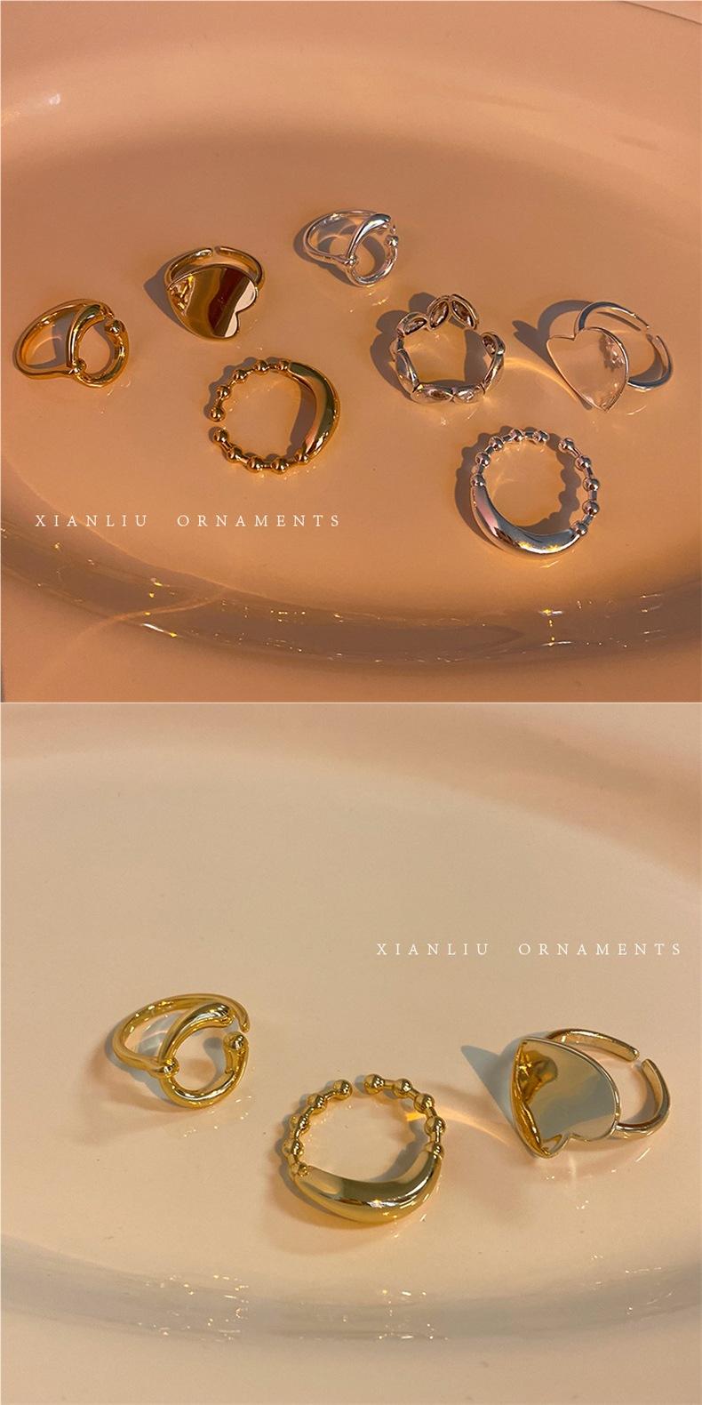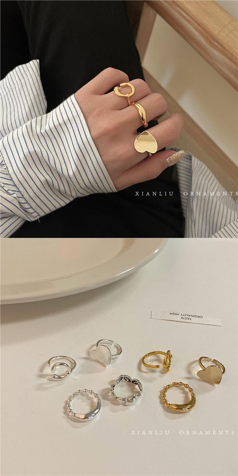 Anillo de Corazón Personalizado de Plata S925 Versión Coreana para Mujer, Anillo Abierto de Hoja Vintage de Moda Hip-Hop, Anillo de Dedo Índice Trendy