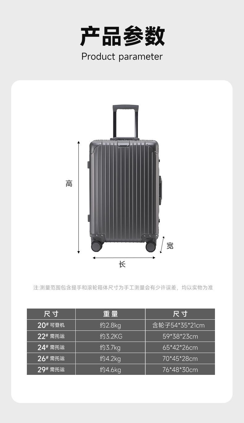 Logotipo Personalizado del Fabricante Maleta de Aleación de Aluminio y Magnesio 24 pulgadas Equipaje de Viaje Contraseña 20 pulgadas Maleta Trolley Estuche de Abordo