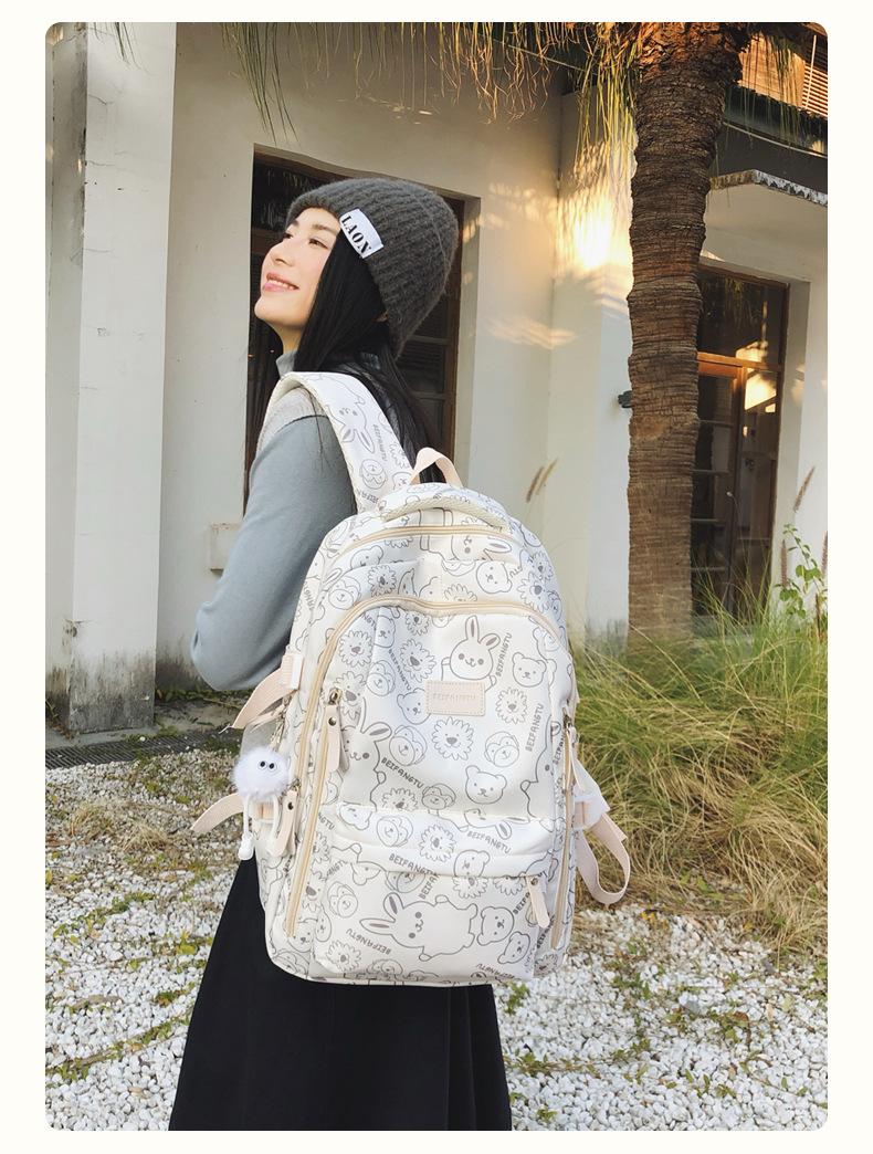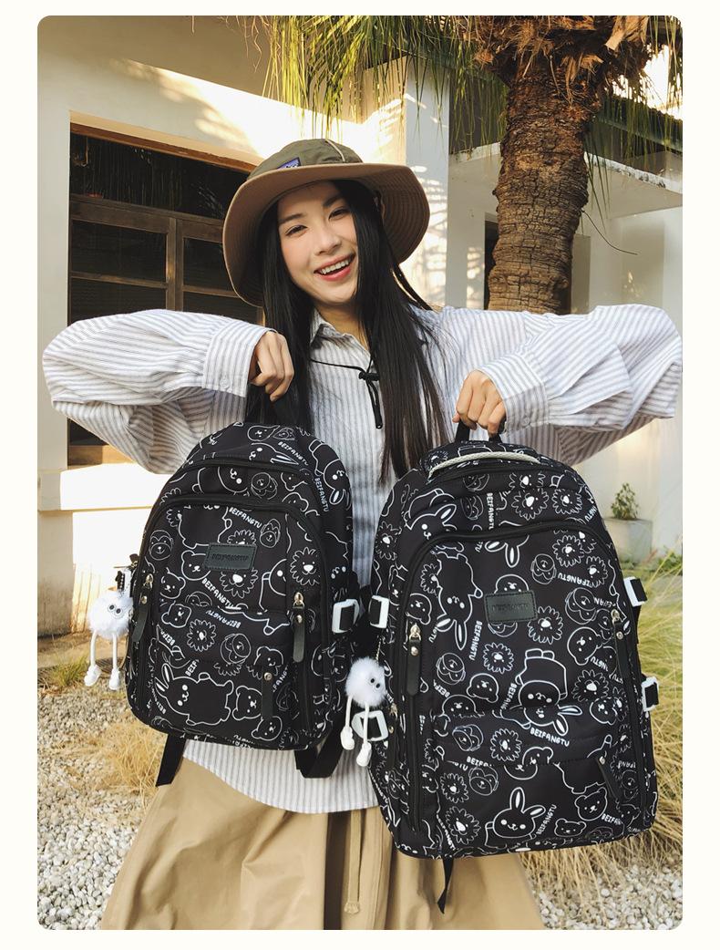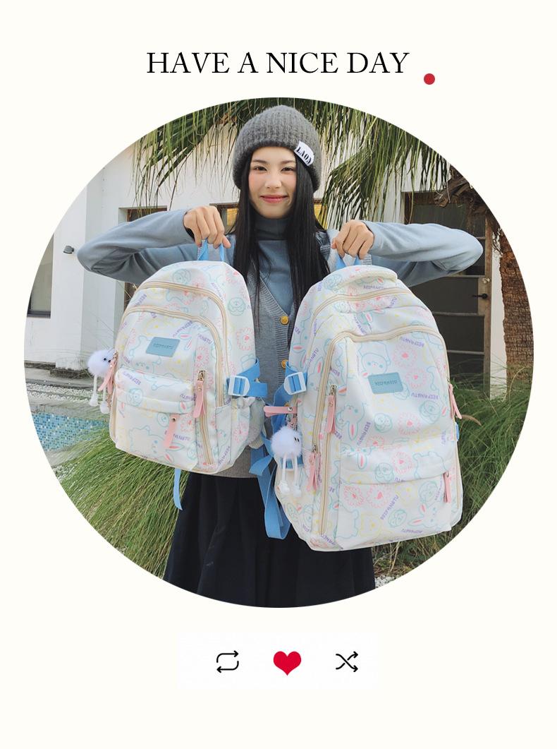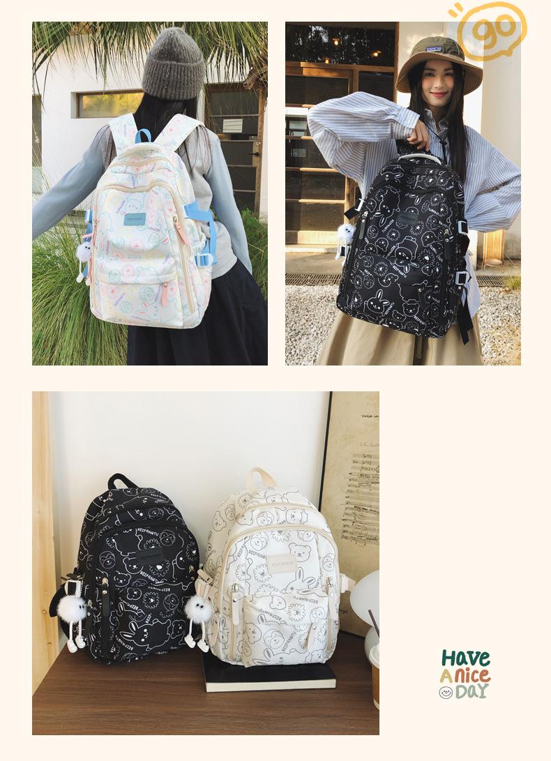 Mochila Escolar para Estudiante de Secundaria Campus Femenina Estampado de Dibujos Animados Lindo Mochila de Viaje Mochila Casual de Gran Capacidad para Estudiante de Secundaria