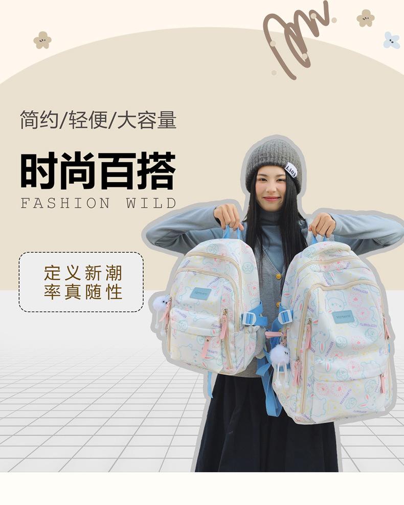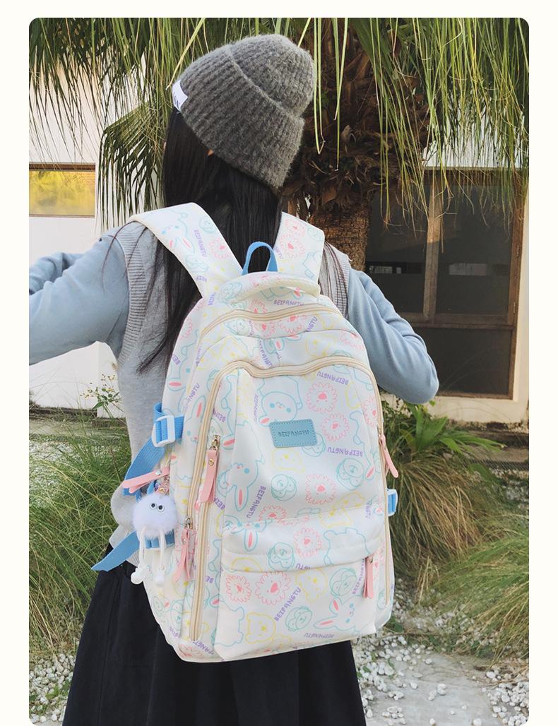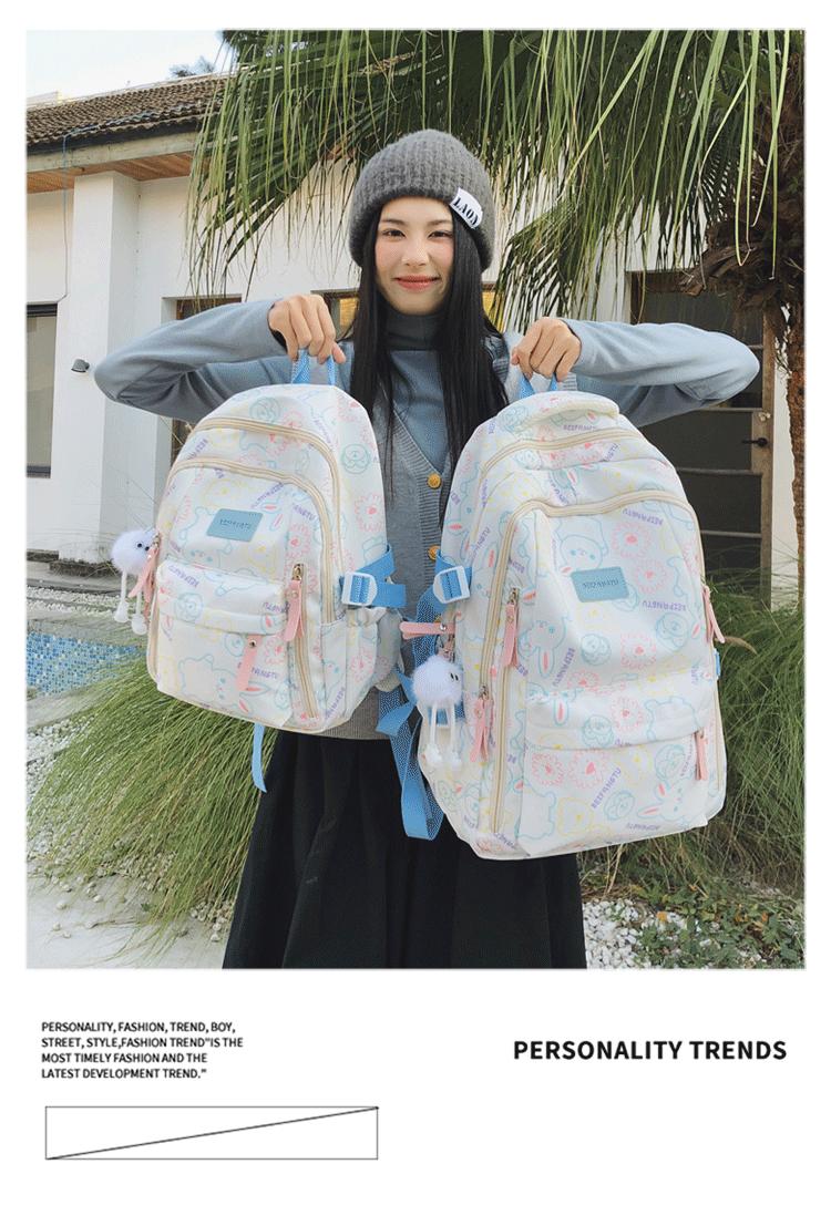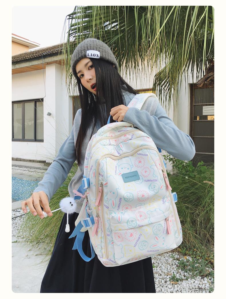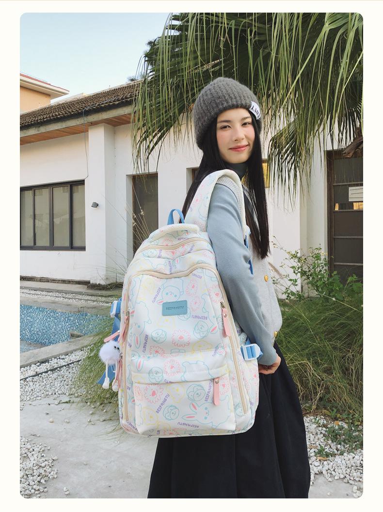 Mochila Escolar para Estudiante de Secundaria Campus Femenina Estampado de Dibujos Animados Lindo Mochila de Viaje Mochila Casual de Gran Capacidad para Estudiante de Secundaria