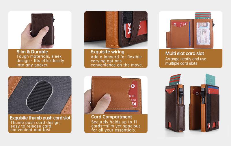 Transfronterizo 70% de descuento Billetera para identificación con múltiples ranuras para tarjetas Billetera plegable para hombre Estuche automático para tarjetas Tarjetero Ultrafino Cuero genuino Billetera para hombre