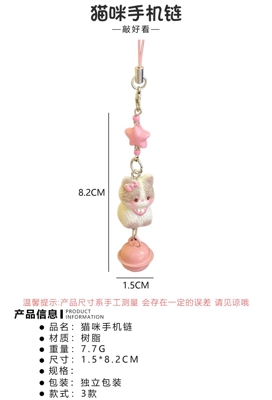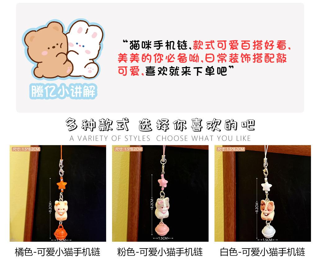 1#White-cute kitten mobile phone chain, 2#Pink-cute kitten mobile phone chain, 3#Orange-cute kitten mobile pho...
