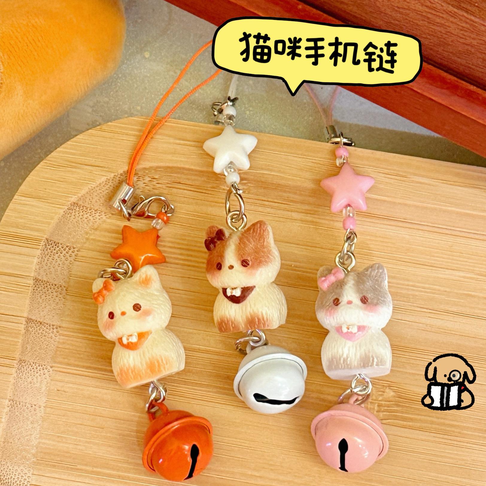 Lindo gatito colgante para cadena de teléfono móvil colgante campana estrella colgante caricatura gato tridimensional llavero colgante para bolso
