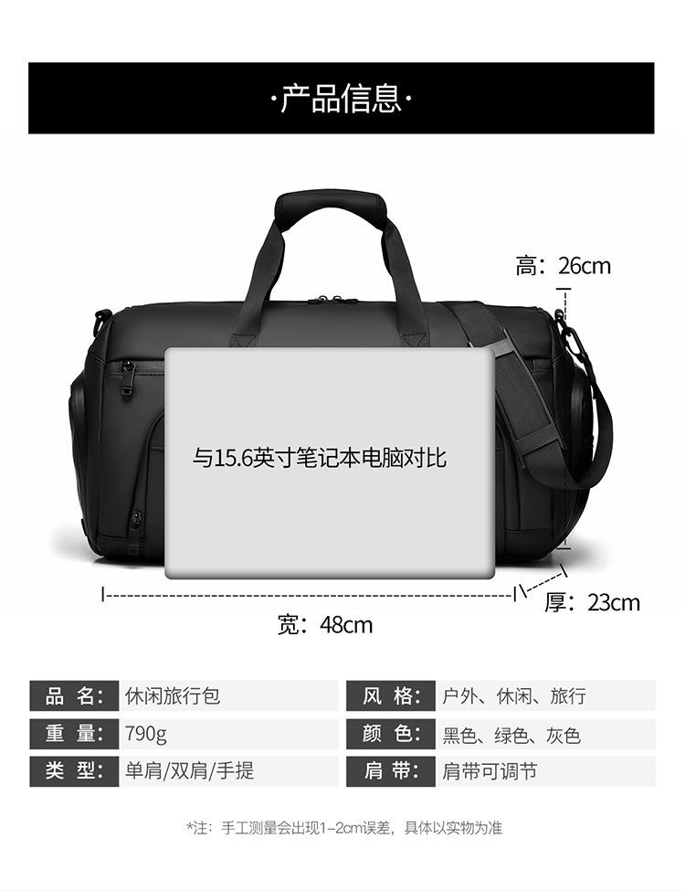 Bolsa de Viaje para Negocios para Hombre Repelente al Agua Salida Ligera Bolso de Mano Separación Seco y Húmedo Deportes Viaje Viajero Bolsa de Fitness