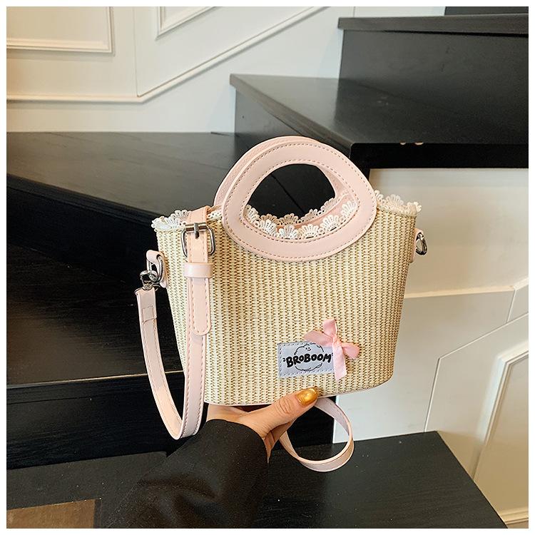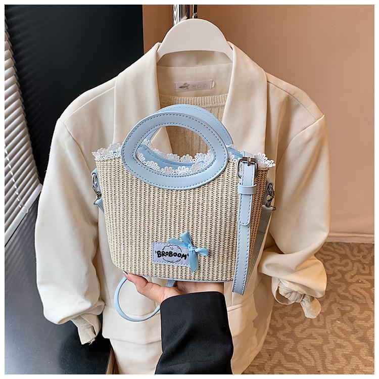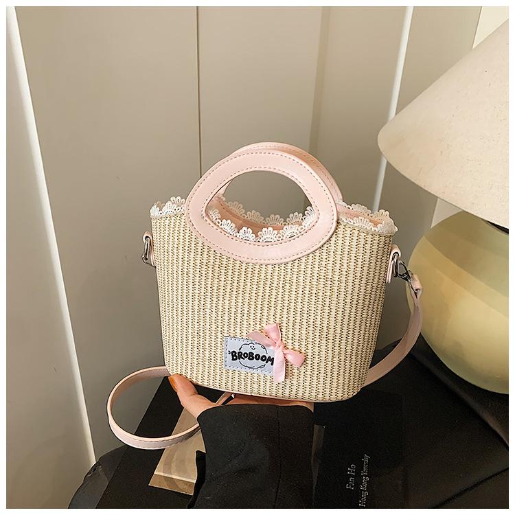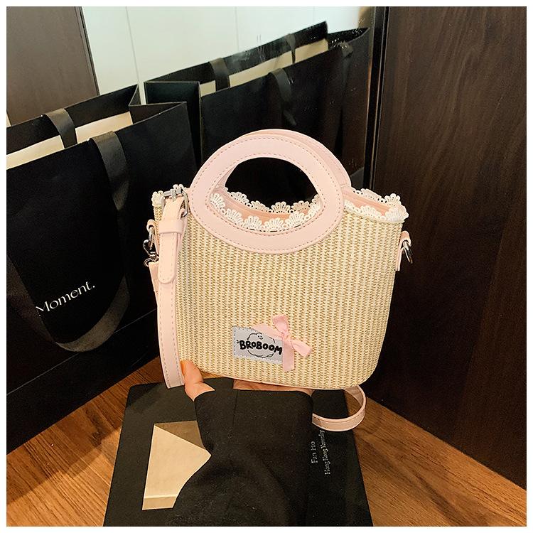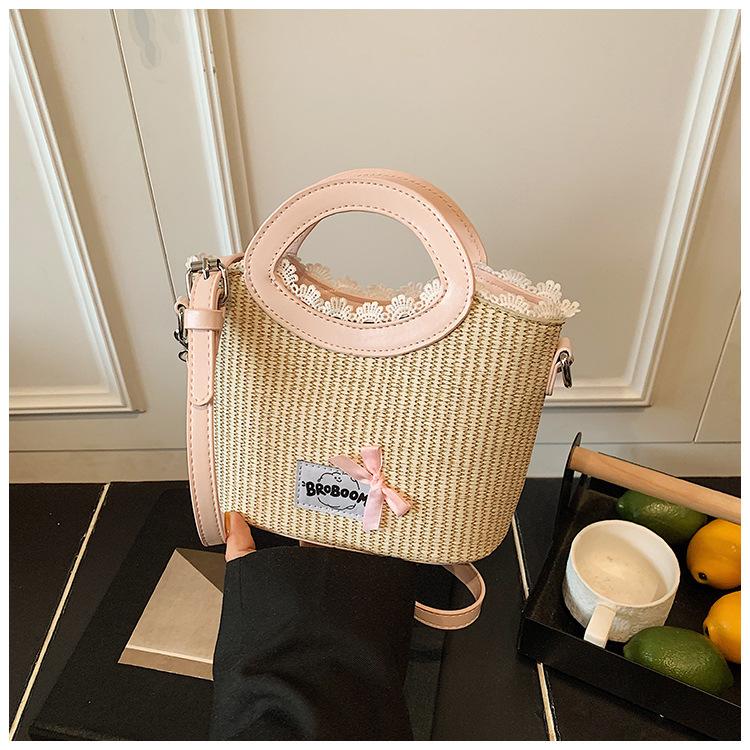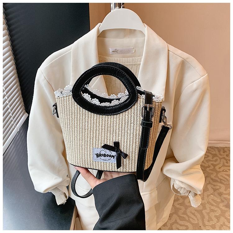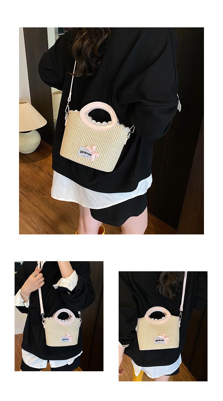 Weave, Straw, Letter, Bow, Contrast color, Splicing