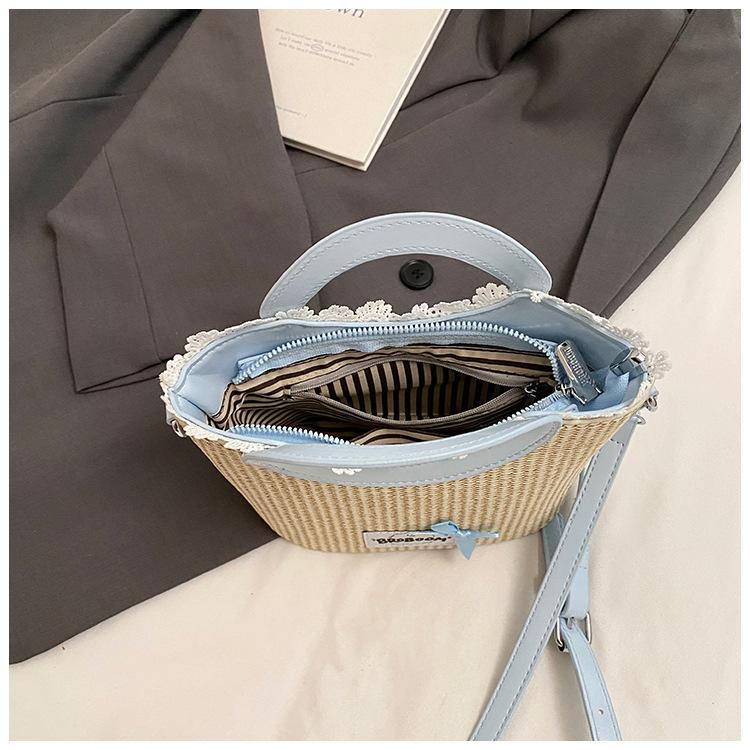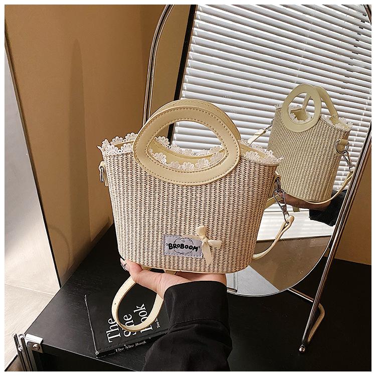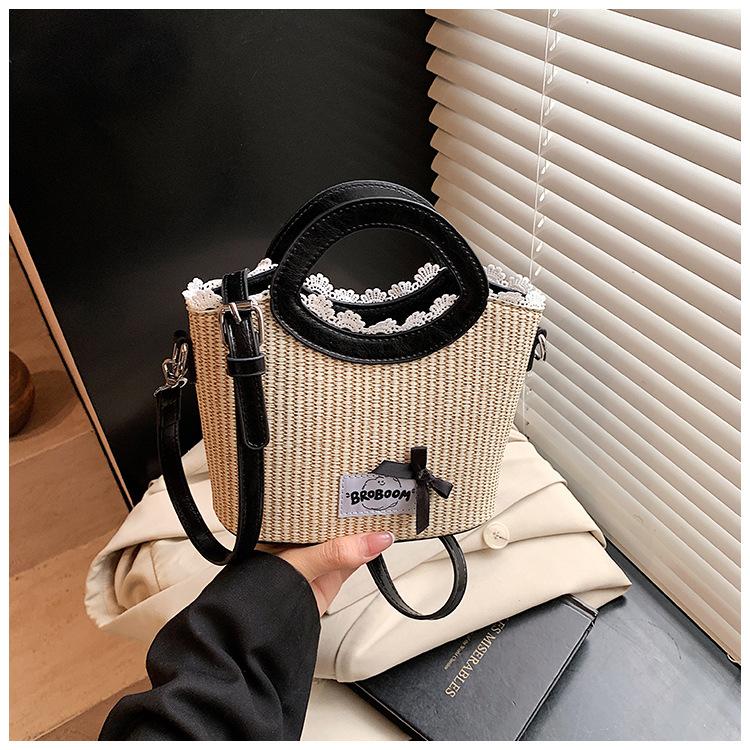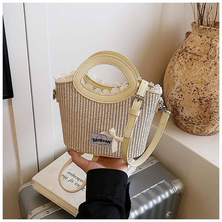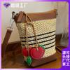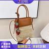 Bolso Tejido de Paja de Gran Capacidad para Mujer Verano 2025 Nuevo Casual Nicho Bandolera Popular Portátil Tejido Bolso Cubo