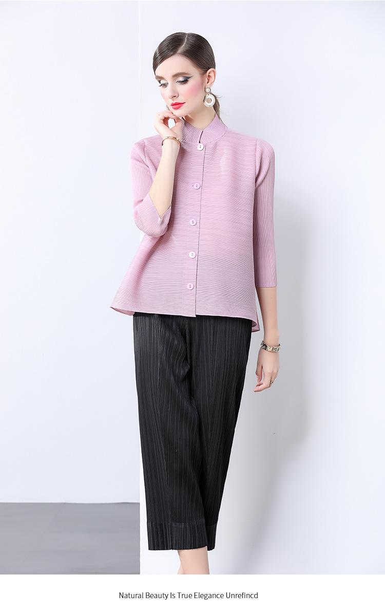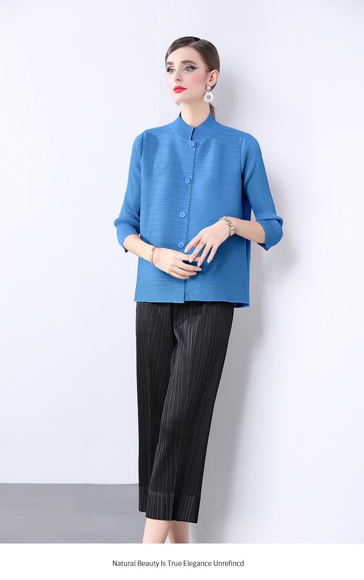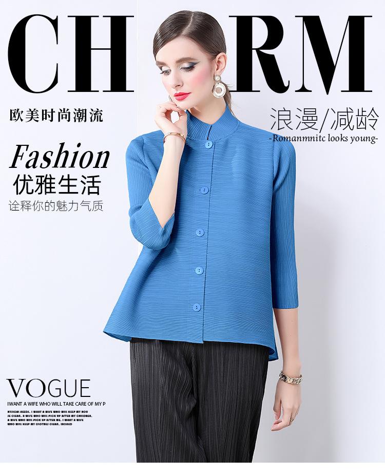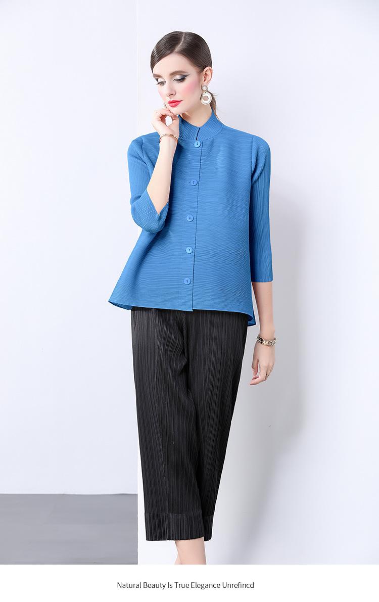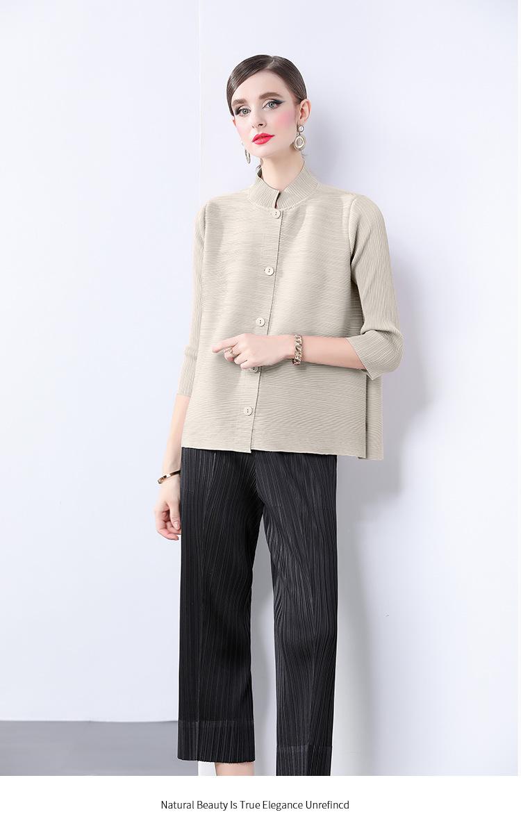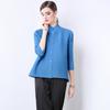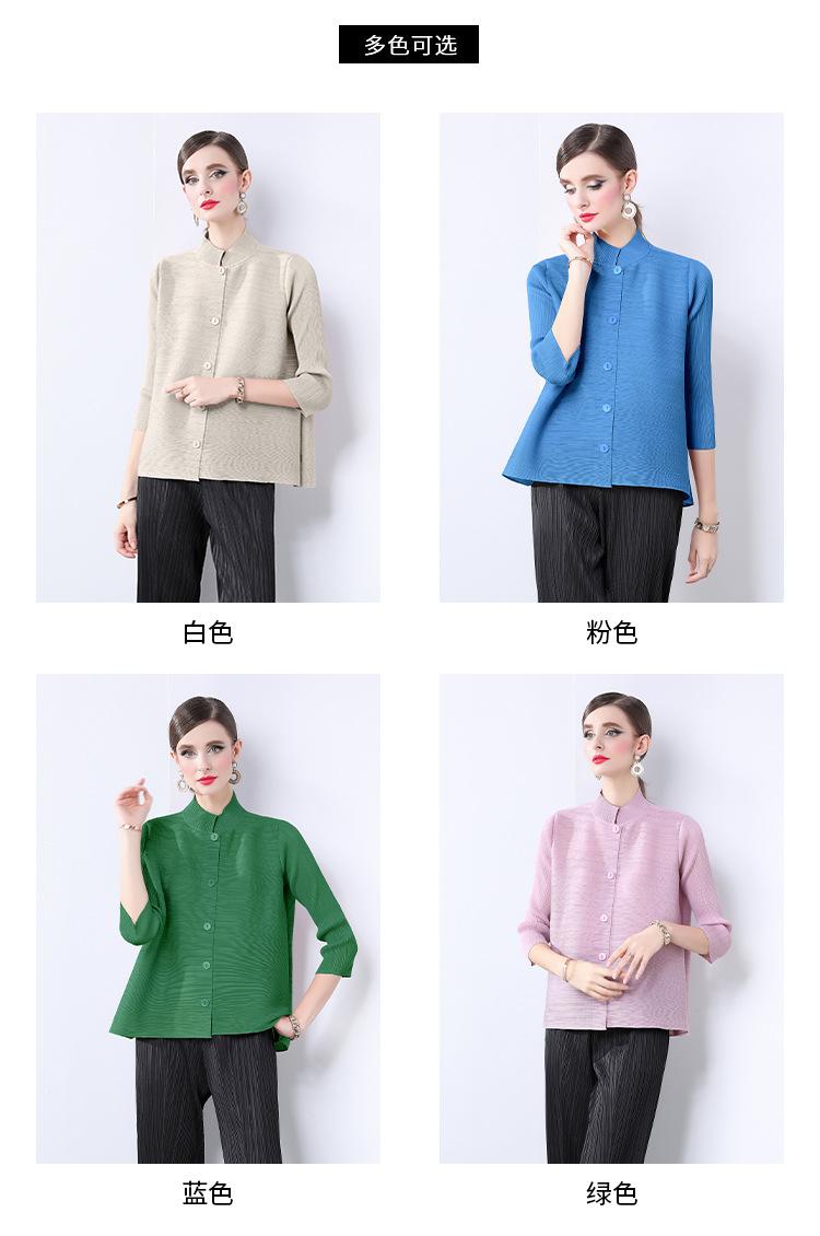 Estilo Europeo y Americano Versátil Top Holgado Plisado mm Ropa de Trabajo Mangas Tres Cuartos Cuello Mao Camisa Slim Chaqueta Sencilla